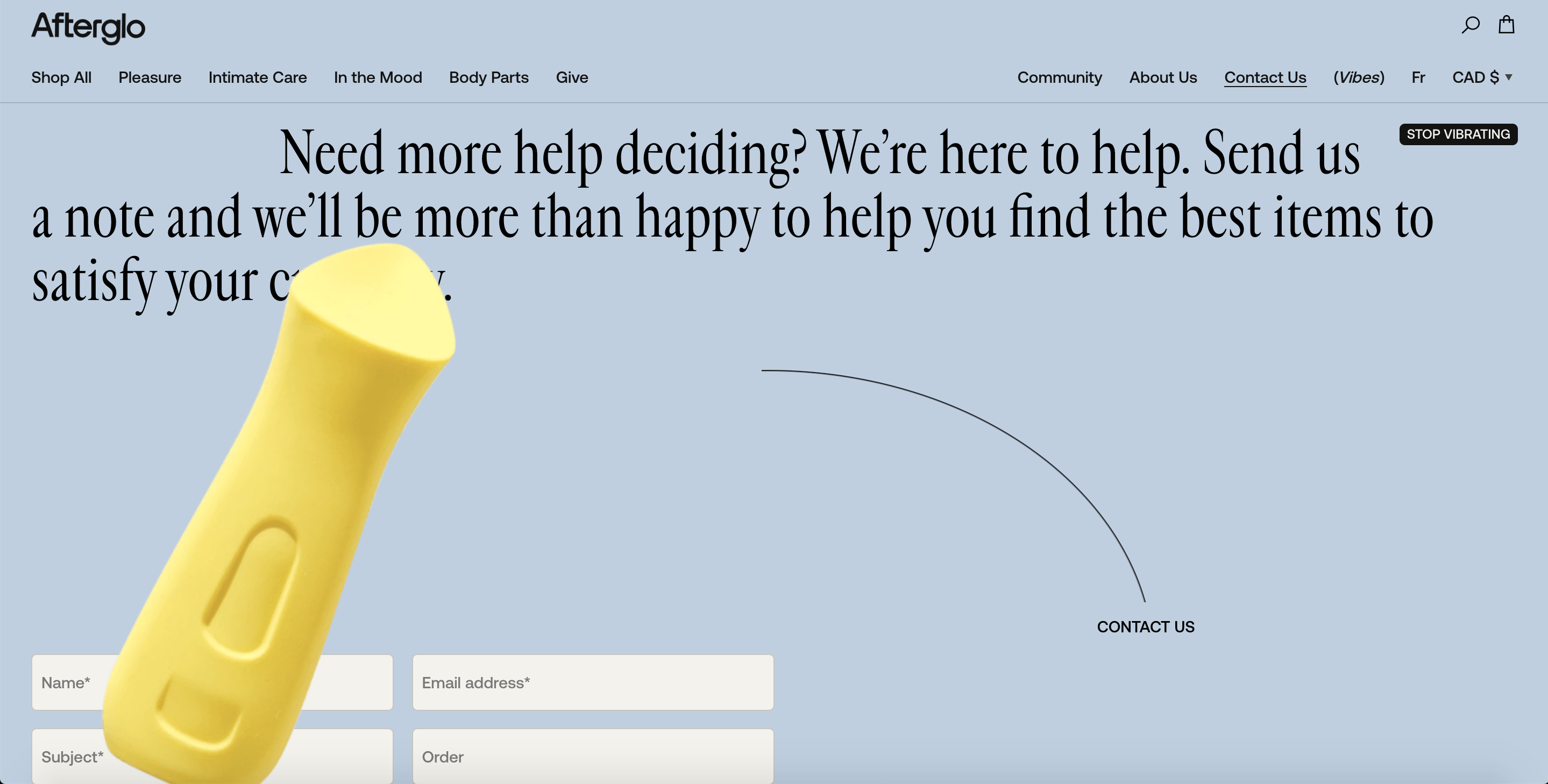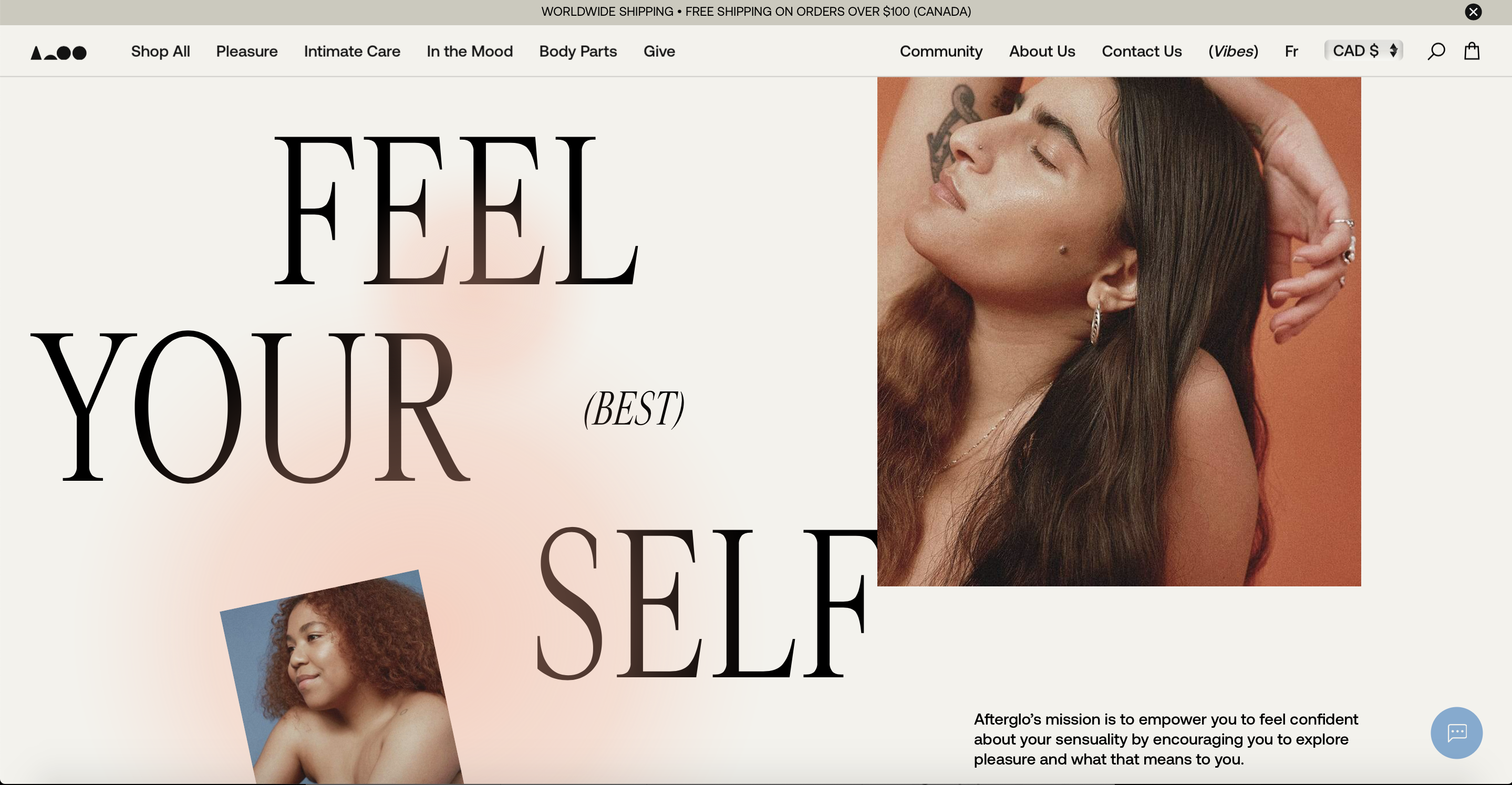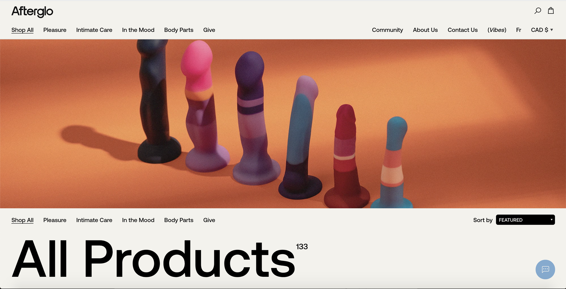 Afterglo is a new online shop focused on sex wellness. It offers a wide range of products related to sexuality, like sex toys, intimate care, etc. Their motto is to help people explore their sensuality and offer them anything they need to be at ease with their body and desires. The online shop has different categories that help browsing their products, with labels wide enough to give ideas and broaden one’s experience, like “In the Mood” and “Body Parts”, for example. Furthermore, the website aims at creating a community of customers, in order to show either sex-related art or sexual advice.