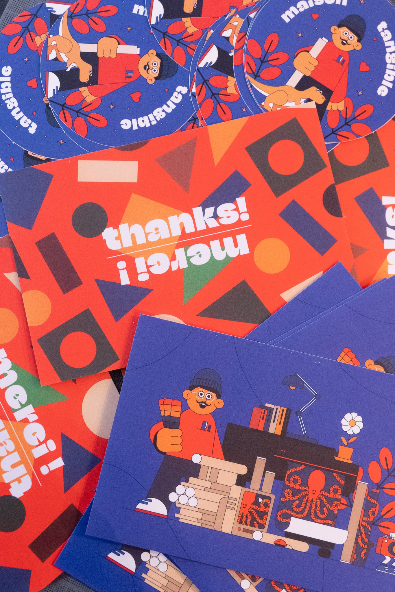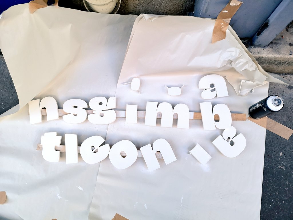 The couple can be seen accompanying his joyful illustrations on the front sign of his gallery, his website(s), social media, stickers, goodies… The boldness of NaN Jaune Maxi Black reinforces the playfulness and generosity of his illustrative style, the letters being used as proper illustrative, almost haptic elements while TT Norms comes as a friendly geometric counterpart remembering Jeanney’s obsession with geometric figures.