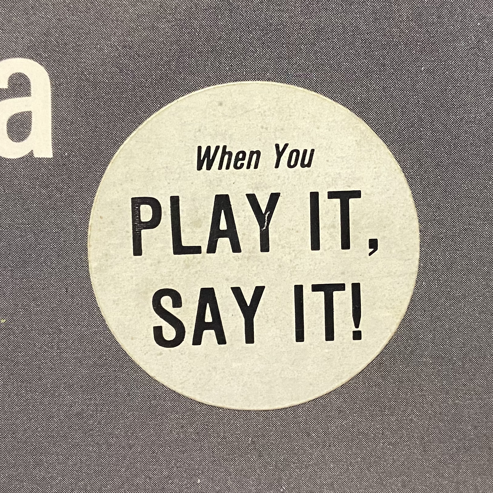 So, this is the classic sticker that you will sometimes see on promotional copies of old records. It was a not so subtle hint to try to get radio DJs to announce the name of the song when they played it on their station.