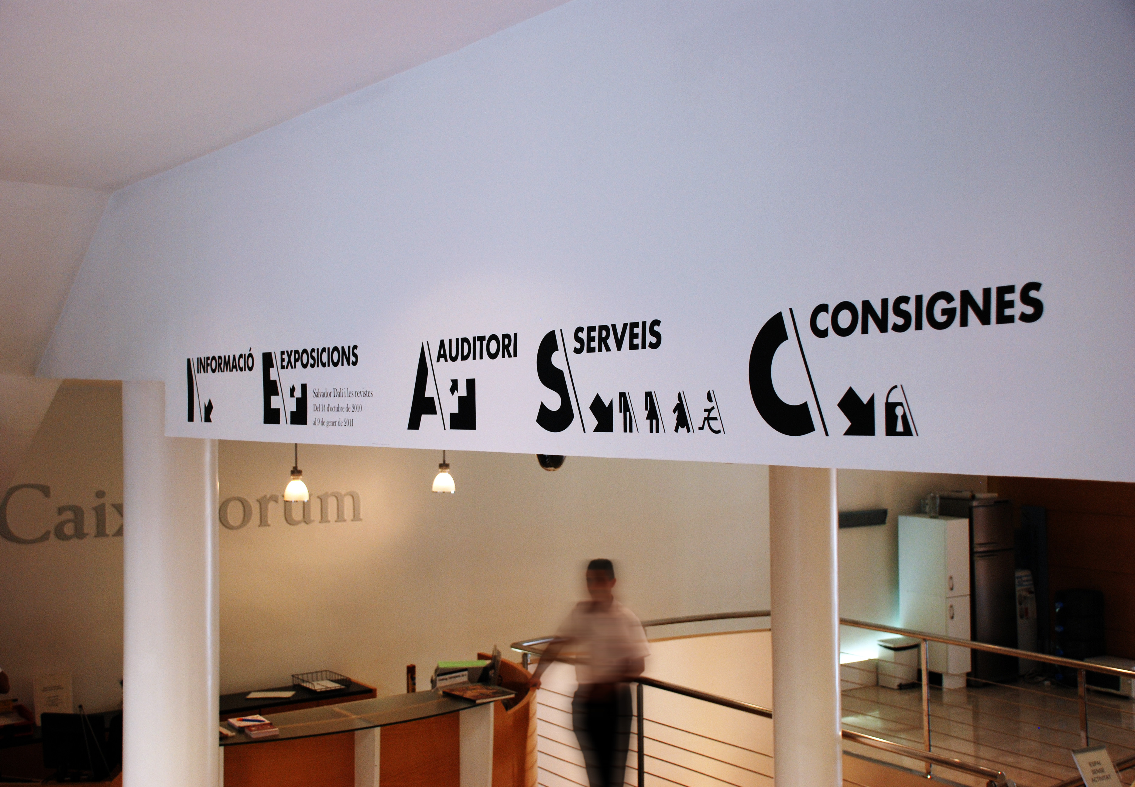 CaixaForum signs Contributed by Virbia on Jun 30th, 2013. Artwork published in 2012. Source: virbia.com @Virbia. License: All Rights Reserved. Design for CaixaForum foundation exhibition room. Virbia Source: virbia.com @Virbia. License: All Rights Reserved. Source: virbia.com @Virbia. License: All Rights Reserved. Source: virbia.com @Virbia. License: All Rights Reserved. Source: virbia.com @Virbia. License: All Rights Reserved. Source: virbia.com @Virbia. License: All Rights Reserved. Source: virbia.com @Virbia. License: All Rights Reserved. Source: virbia.com @Virbia. License: All Rights Reserved. Typefaces More about FuturaGet FuturaMore about Baskerville Old FaceGet Baskerville Old Face Formats Signs (2111) Topics Institutional (1372) Art (4565) Designers/Agencies Virbia (1) Tagged withmuseums (195)CaixaForum (1)wayfinding (375)all caps Futura Bold (23)pictograms (193)sliced type (112) Artwork location Spain (1032) In Setsserif+sans (Juntao Pan) (4) Post a comment Name Email – will not be published Website Your response Submit Comment More Futura in use Urban Zotel – “It’s a Fuzz” single cover2019Urban ZotelContributed by Urban Zotel The Living Idol by Robert Switzer (Signet)1956Robert MaguirePhoto(s) by Steve on Flickr. Quo Vadis by Henryk Sienkiewicz, Neuer Kaiser Verlag1978Volkmar ReiterPhoto(s) by Michael Studt on Flickr. Sponsor More in Art The Never Taken Images by F&D Cartierc. 2022Balmer HählenContributed by newglyph Staff Pick Honky Tonk: Portraits of Country Music, 1972–19812003Brent MacFaddenContributed by Font Bureau I Do Not Know What It Is I Am Like: The Art of Bill Violac. 2019Olivia S VerdugoPauline NyrenContributed by olivia verdugo Téléprésences2016Goiffon & BeautéContributed by Production Type Staff Pick More in Signs Gelateria, DorgaliPhoto(s) by Stephen Coles on Flickr. Le Hein – Flanders Food Space2021Nash and YoungContributed by Production Type Staff Pick Marché-gare2019Bureau 205Contributed by 205TF Festival POSTc. 2021Julien LelièvreContributed by Production Type More Fonts In Use Ruy Castro: Letra e Música2013Tereza BettinardiElaine RamosContributed by Tereza Bettinardi Staff Pick okay hold steady now2012Scott MasseyContributed by Stephen Coles Staff Pick Oben Restaurant identity2015The Kitchen SthlmContributed by Letters from Sweden Staff Pick Anywhere Book Club2025PolytechnicContributed by Polytechnic Staff Pick