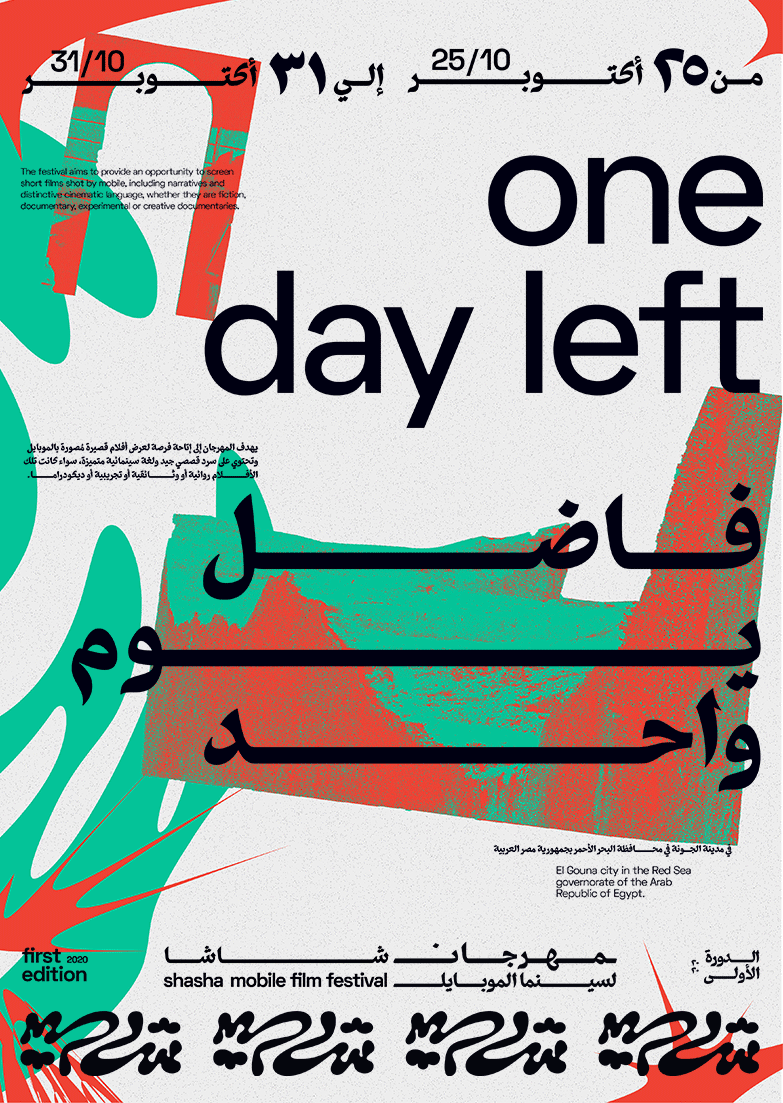 Nardine Shenouda and her team at Ntsal Cairo developed the design direction for the Shasha Mobile Film Festival, a festival in Cairo, Egypt that was launched to celebrate the short films shot only using mobile phones. It created a space for young talents to compete, promote, expose, and challenge themselves amongst other filmmakers and storytellers.