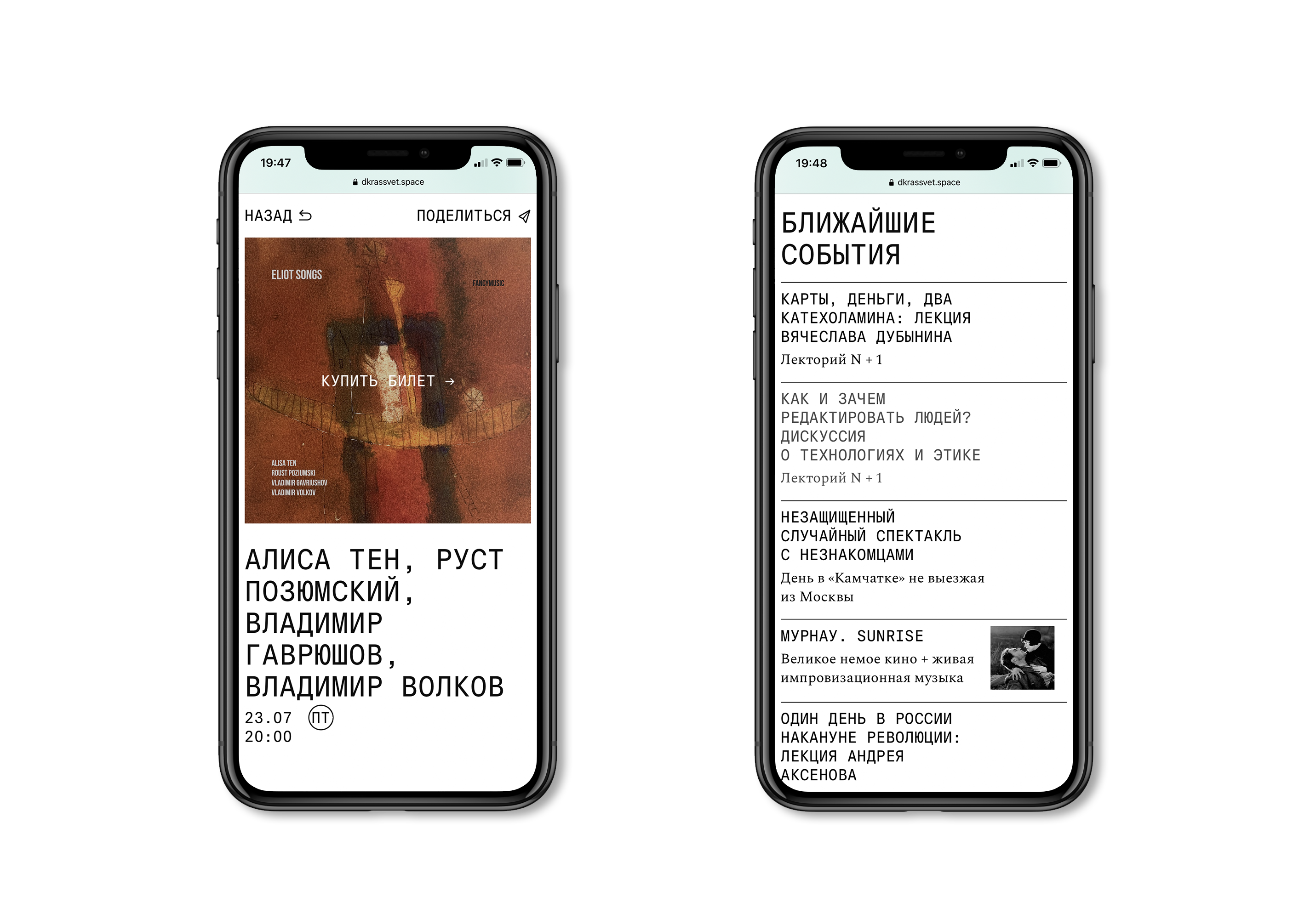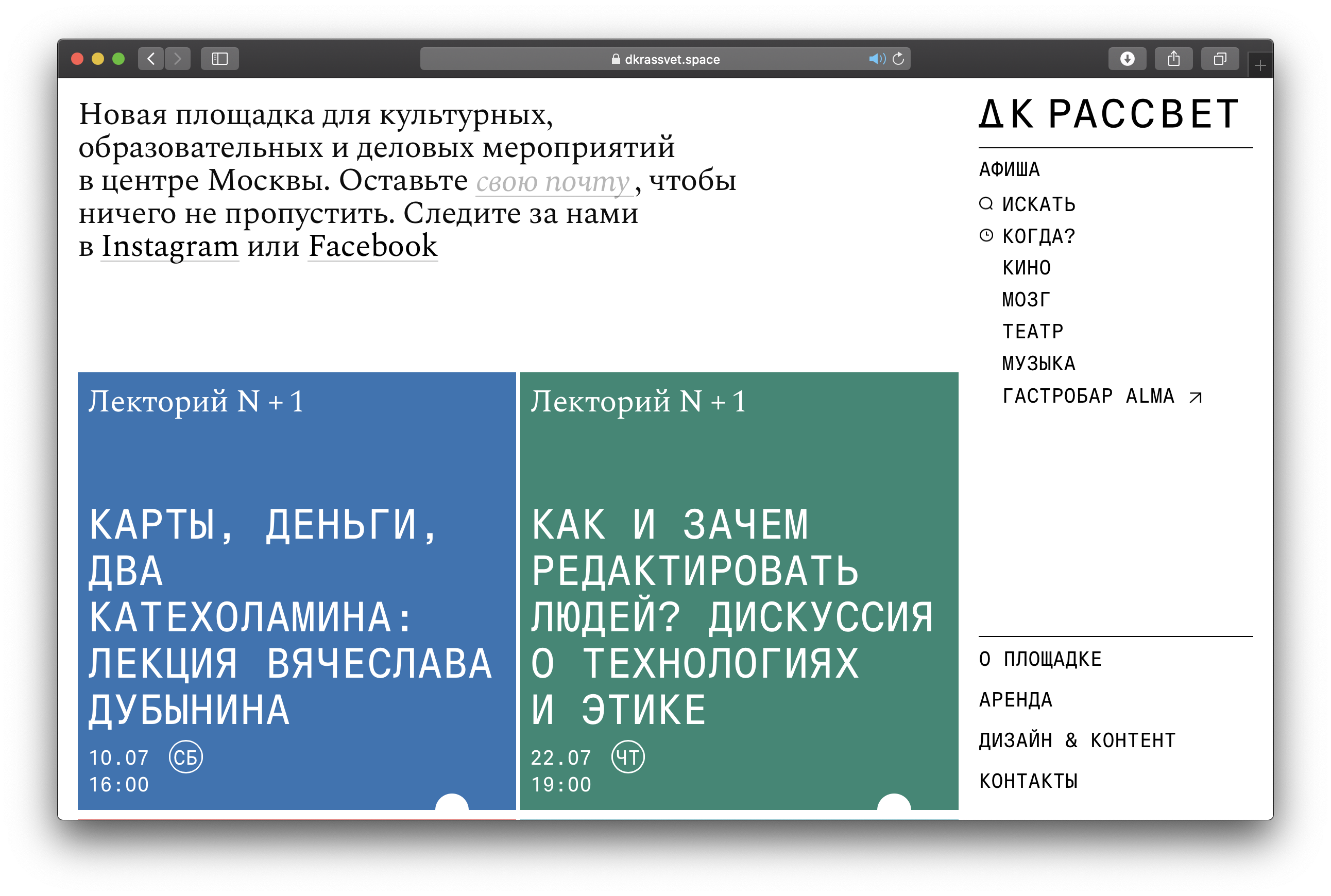 DK Rassvet website Contributed by Adelina Shaydullina on Aug 13th, 2021. Artwork published in 2021. DK Rassvet. License: All Rights Reserved. ДК Рассвет (DK Rassvet) is a new space for cultural, educational and business events in Moscow. You can watch a movie or a play, listen to poetry or a lecture, or organize something yourself. The website design combines two typefaces by Production Type, Signal Mono and Spectral. DK Rassvet. License: All Rights Reserved. DK Rassvet. License: All Rights Reserved. DK Rassvet. License: All Rights Reserved. DK Rassvet. License: All Rights Reserved. DK Rassvet. License: All Rights Reserved. Typefaces More about Signal MonoGet Signal MonoMore about SpectralGet Spectral Formats Web (5633) Mobile/Tablet (1025) Topics Event (3223) Education/Academia (2185) Art (4702) Performing Arts (997) Designers/Agencies Daria Yarzhambek (9) Alexander Moskovsky (3) Tagged withcultural spaces (75)events (191)websites (3576)Moscow (16)typeface combinations (3957)monospaced (1247)menus (UI) (566)all caps (7624)borders and rules (1127)Cyrillic (script) (478)Russian (language) (282)reversed type (3386) Artwork location Russia (299) Moscow (196) In SetsDesigns by Women (Fonts In Use Staff) (3590)Production Type (Production Type) (492)webon (Leonardo de la Fuente) (10) Post a comment Name Email – will not be published Website Your response Submit Comment More Spectral in use Girl Outdoor logo and website2018Other OfficeSimon SweeneyShauna BuckleyContributed by Matthijs Sluiter Staff Pick Champagne M. Marcoult2022vrai studioCamille GabarraContributed by Production Type White Fungus, issue 17c. 2023Johnny HuMark HansonContributed by Johnny Hu Sponsor More in Art Norma Jeane: Body Proxy2004Contributed by Stephen Coles Staff Pick Situation 1 und andere, Kunsthalle Basel2020Yves GraberContributed by Nouvelle Noire Greta Knutson-Tzara2019Malmsten HellbergContributed by Stefania Malmsten Staff Pick Hattie Newman website2016PolytechnicContributed by Polytechnic Staff Pick More in Web CDI Ingenieurec. 2016Bureau VersalAnn Katrin SiedenburgContributed by Ann Katrin Siedenburg “Machines for Life” Pitchfork cover story2013Contributed by Florian Hardwig Balyandrasi landing pageunknownContributed by Svitlana Tolmach (Rentafont) Cravar2014Yoki P. BaskaraVega VashtiaryContributed by Florian Hardwig More Fonts In Use Royal Society of Literature2009HyperkitContributed by Indra Kupferschmid Staff Pick Michael McManus Architectsc. 2020GrafikContributed by Nick de Jardine Staff Pick Die Rote Fahne, #1 (9 Nov 1918) and #16 (16 Jan 1919)1918Contributed by Florian Hardwig Blog PRIMO!c. 2024Paweł MildnerContributed by Threedotstype Staff Pick
