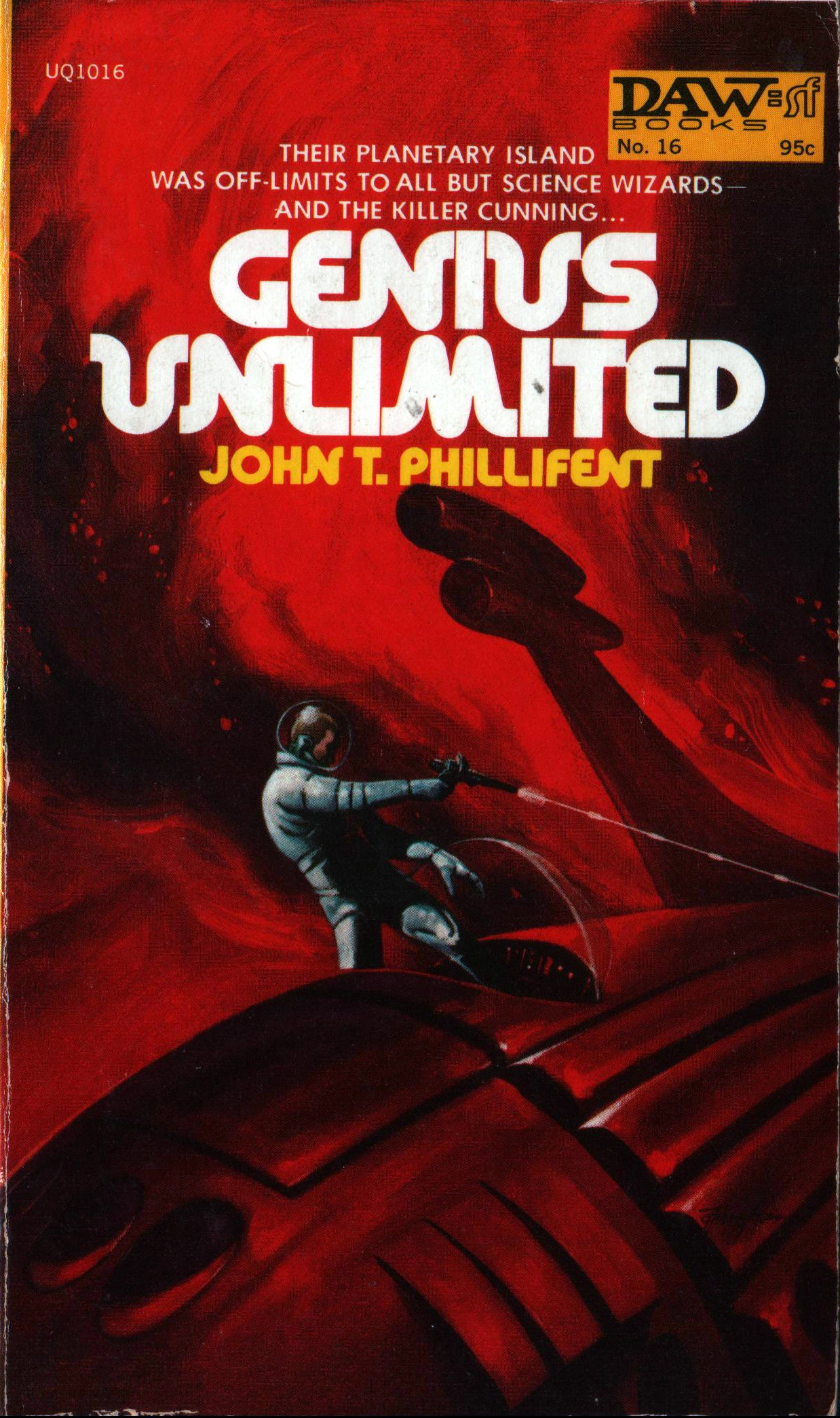 Genius Unlimited is the first novel in the Interstellar Security series by John T. Phillifent (1916–1976). It was published as DAW Book #16 in 1972, with cover art by Jack Gaughan.