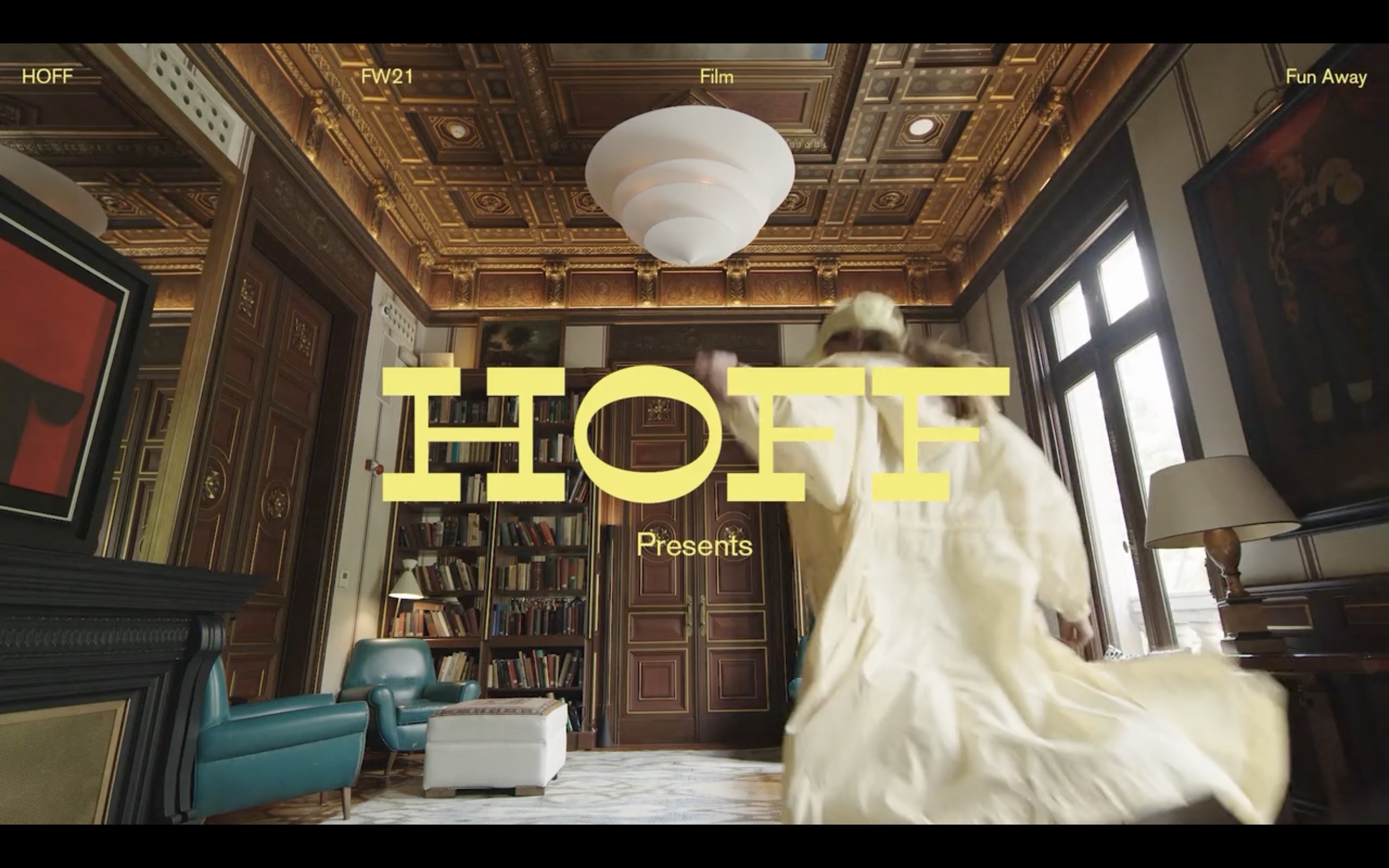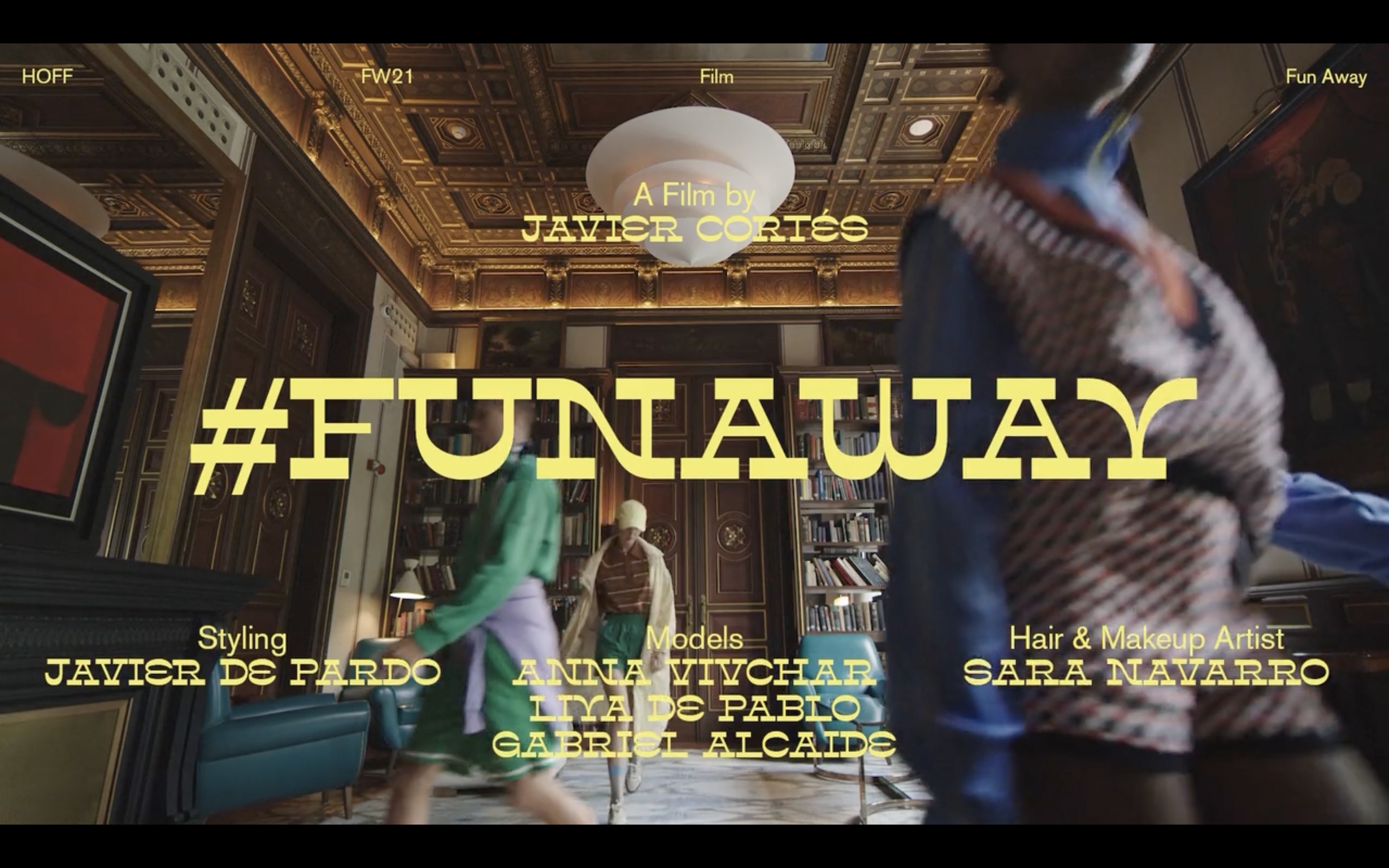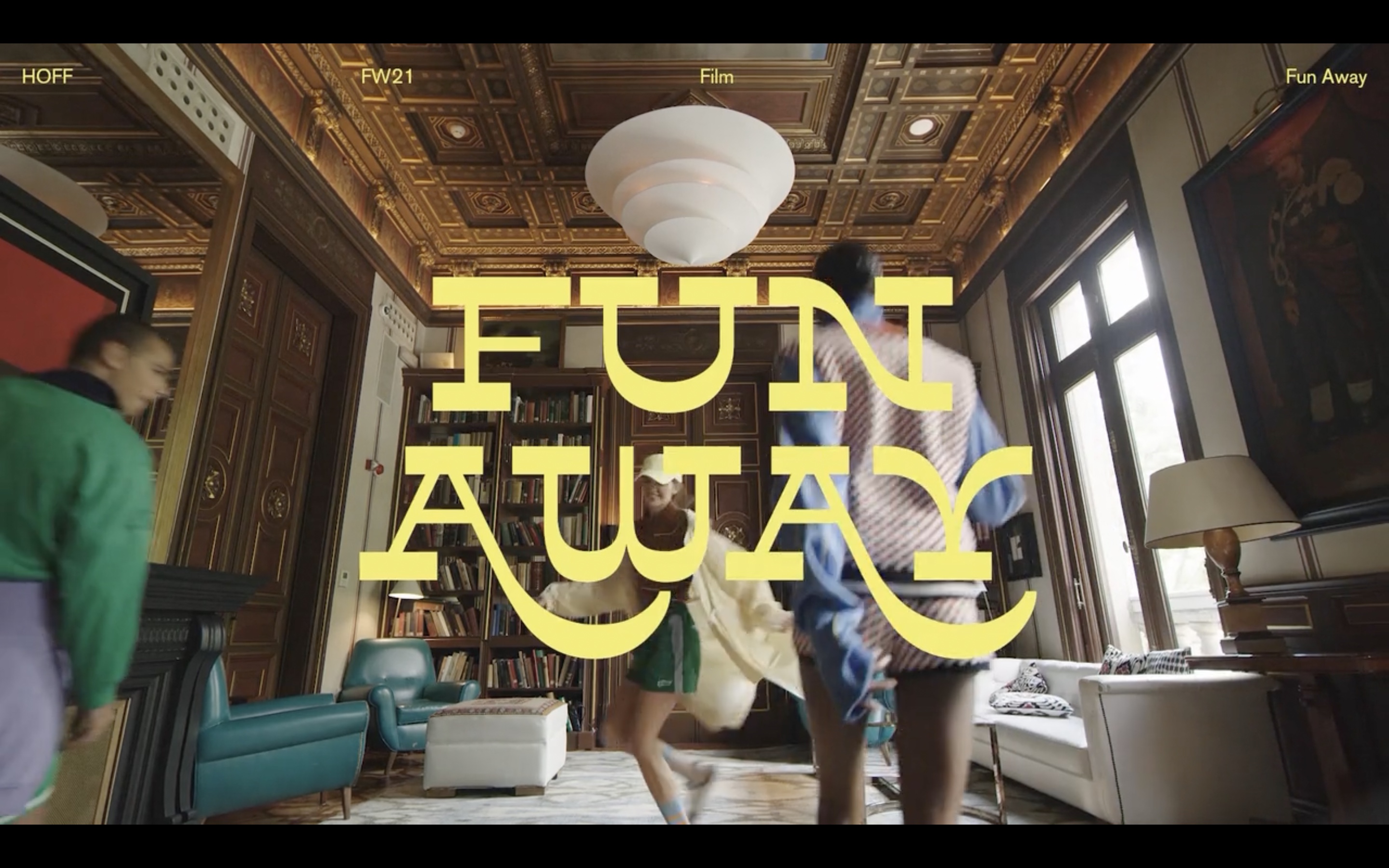 Fun away is the title of Hoff’s collection for fall/winter 2021. Javier Cortés made a film that introduces the fashion items, Naranjo-Etxeberria provided the graphic design. The titles are shown in caps from Amy Hood’s Lone Pine (Hoodzpah, 2020), a wide slab with horizontal contrast and some sweeping swash alternates. The hairlines were beefed up to prevent them from breaking away. Lone Pine is paired with Hoff’s standard Akzidenz-Grotesk.