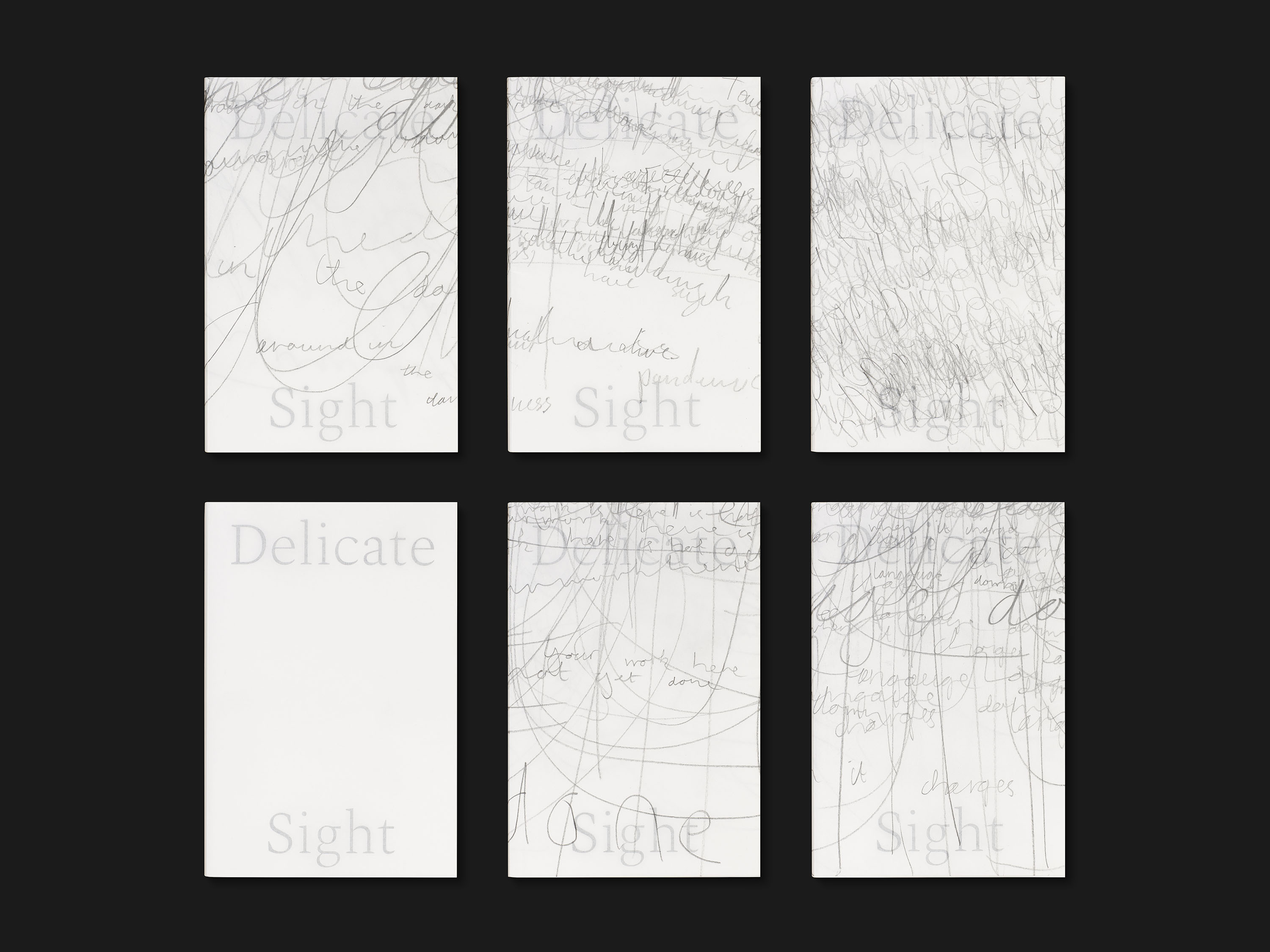 A Delicate Sight is a project initiated by the visual artist Sam Winston, known for his work of exploring language through writing and his acquaintances to drawing. In 2015, Sam Winston put himself through a month-long “darkness residency”, in order to question the effect of darkness and sensory reduction on his creative process. At the end of the residency, the artist sealed the works he had done in the dark, and subsequently tried to re-create with the help of sight what he thought he did during this period. After this experience and over the course of five years, Sam Winston invited other creatives to perform a darkness residency which could last from a few hours to one night.