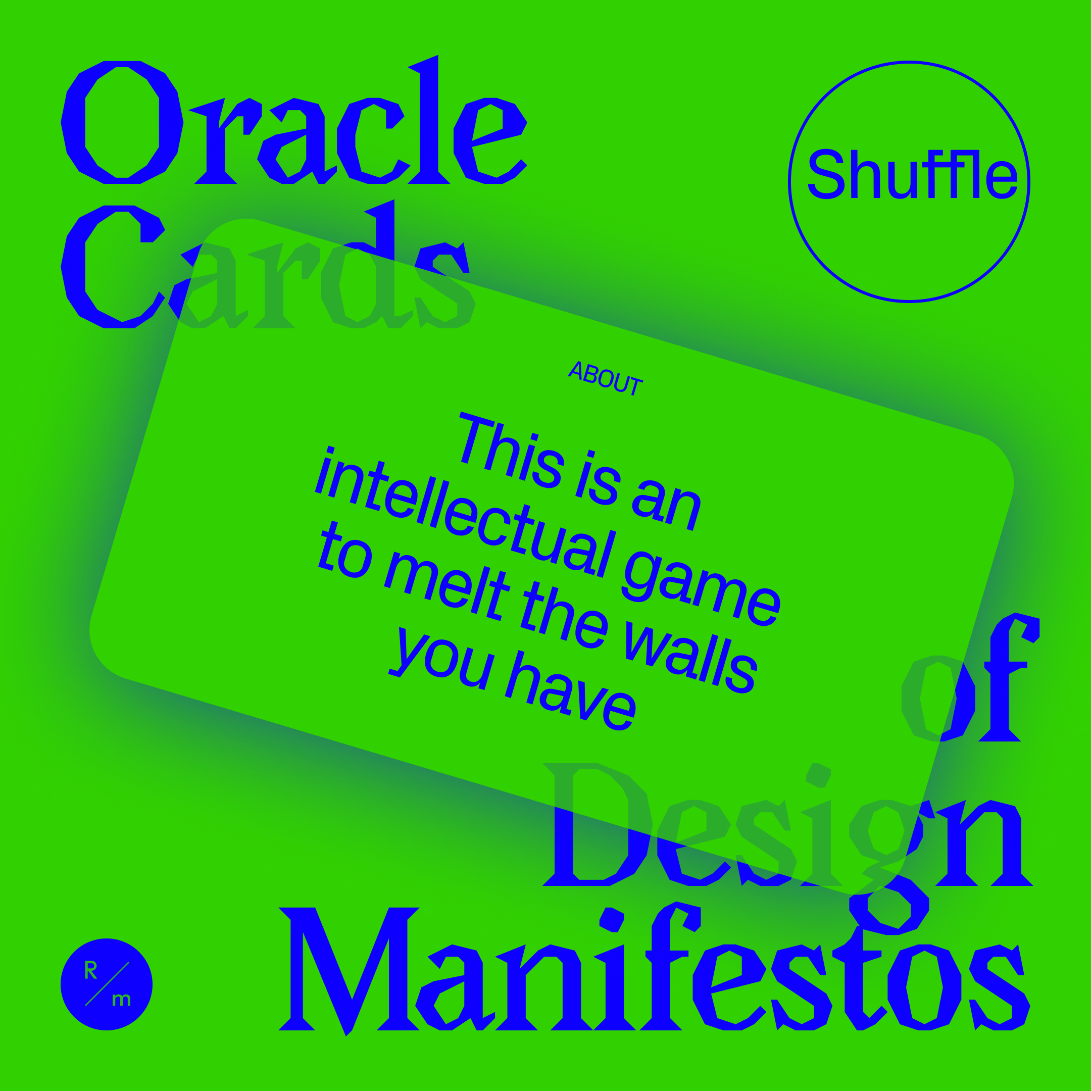 The Oracle Cards of Design Manifestos is a project that aims to open up your imagination and help you through some of the most frequently experienced forms of creative block.