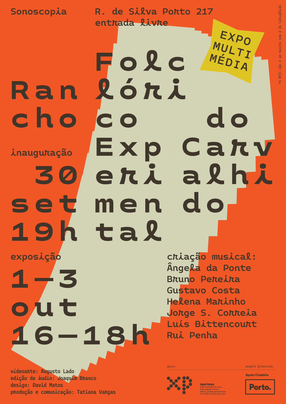 Rancho Folclórico Experimental do Carvalhido Contributed by David Matos on Oct 16th, 2021. Artwork published in October 2021. Photo: David Matos. License: All Rights Reserved. Posters for Rancho Folclórico Experimental do Carvalhido, a project of artistic creation and research in the fields of experimental music, improvisation and visual arts. Photo: David Matos. License: All Rights Reserved. Photo: David Matos. License: All Rights Reserved. Photo: David Matos. License: All Rights Reserved. Photo: David Matos. License: All Rights Reserved. Typefaces More about MonotalicGet Monotalic Formats Posters/Flyers (5875) Topics Event (3291) Art (4784) Local (1628) Designers/Agencies Shutupandance (24) David Matos (24) Tagged withmusic festivals (346)mid-word linebreaks (775)monospaced (1274)Portuguese (language) (553)only type (1297)poster series (879)one typeface family (1709)lineups (301)type on an angle (1363) Artwork location Portugal (302) Porto (112) In Setstype proj 4 (Mikaela Ortiz) (20) Post a comment Name Email – will not be published Website Your response Submit Comment More in Art Minyoung Park, Lachenmann Art2016Studio SoContributed by Studio So KOLLEKTSIA! Art contemporain en URSS et en Russie2017MichelinesContributed by Typotheque Staff Pick Athens State Orchestra Campaign 2019–20202019G Design StudioContributed by George Triantafyllakos Sponsor More in Posters/Flyers Montana Sacra German movie posters and lobby cards1974Peter SickertDieter NossContributed by Florian Hardwig Wire Poster Project2013Oliver MundayContributed by Florian Hardwig Architectural Planner – Varna, October 20182018Stalker StudioContributed by Vassil Kateliev CDD – Construction Center Denmarkc. 2023Hasse BetakContributed by TypeType More Fonts In Use Mad Max movie posters1979Bill GarlandTom BeauvaisunknownContributed by Patrick Concannon Staff Pick The Bling Ring teaser trailer2013Peter Miles StudioContributed by Stephen Coles Staff Pick Jardin Privé, Jardin Rêvé2019unknownContributed by Production Type Staff Pick Lizzie Skurnick Books2013The Hot BrainContributed by Indra Kupferschmid Staff Pick Mac OS Scrapbook app1991Susan KareAppleContributed by Emma Steinhobel Staff Pick Hieronymus Bosch by Larry Silver, Abbeville Press Edition2006Misha BeletskyAngela TaorminaContributed by Stephen Coles Staff Pick The Ultimate Dream Mix at Loods62025Jacob OlvikContributed by Jacob Olvik Staff Pick Typographische Mitteilungen, vol. 17, No. 7, July 19201920unknownContributed by Kirsten Solveig Schneider Staff Pick