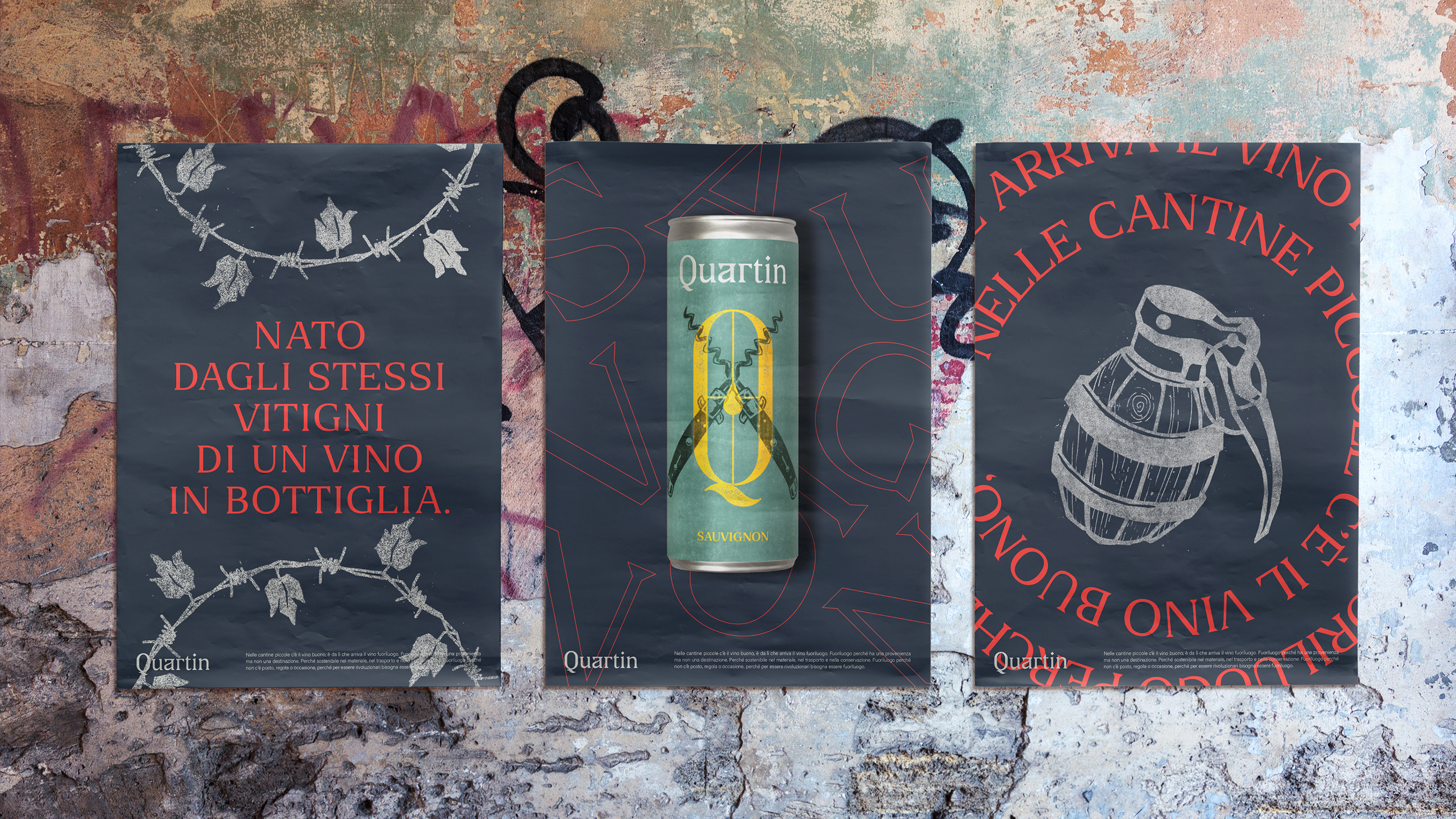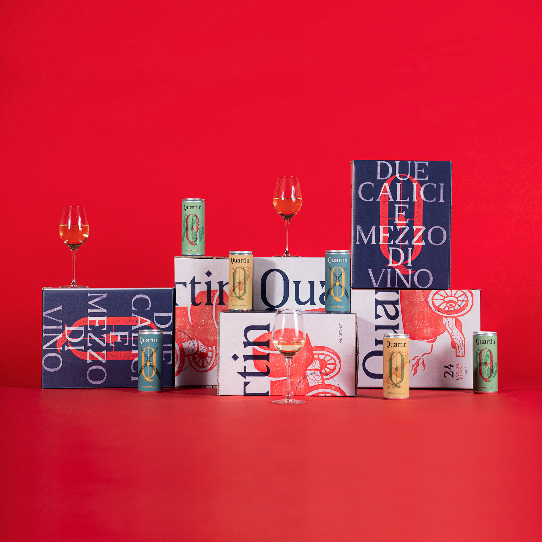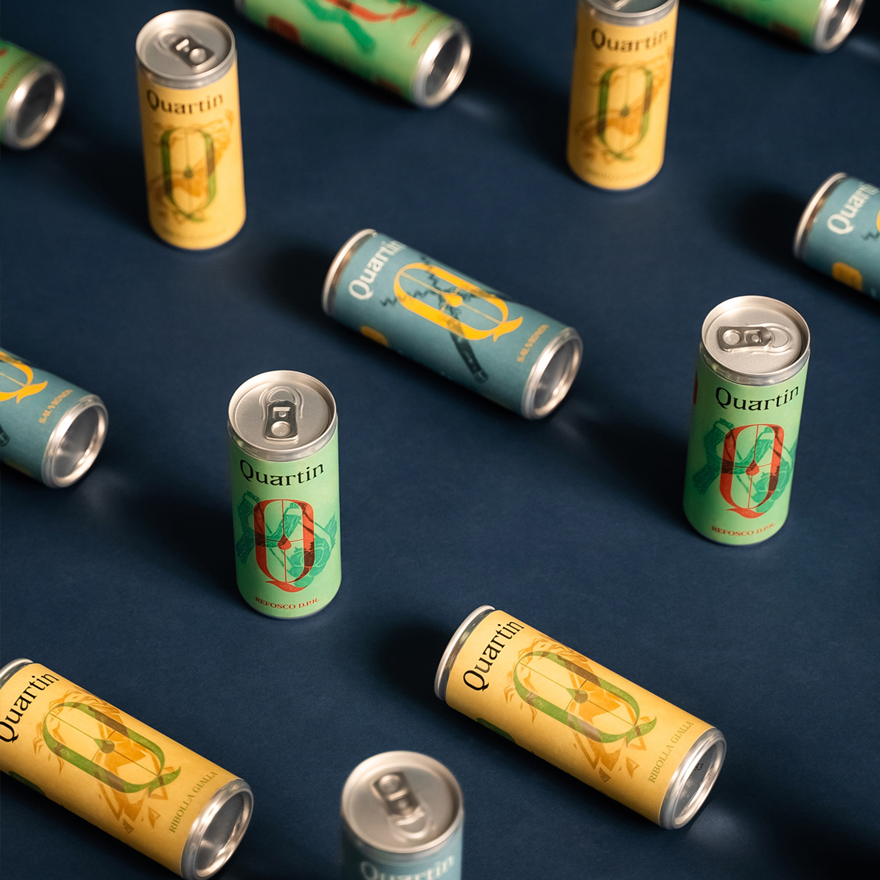 In a world of rules, obligations and prejudices, Quartin was born, the out-of-pocket wine. Quartin is the first Italian wine that comes in a tin can. In 250 ml (two and a half glasses), it combines the quality of Italian wine and the convenience of a can that’s easy to carry and enjoy, far from any formality and without any pretension. Its visual identity tells us about a wine which is not afraid to be daring, rejecting the classic stereotypes of glass and cork to start a real revolution.