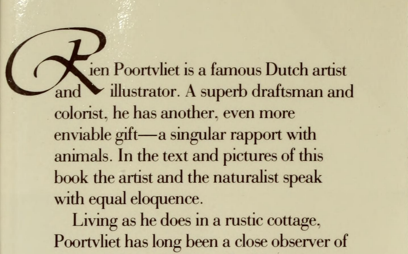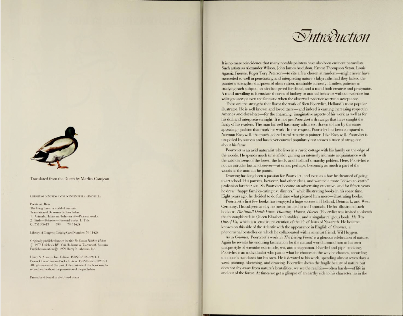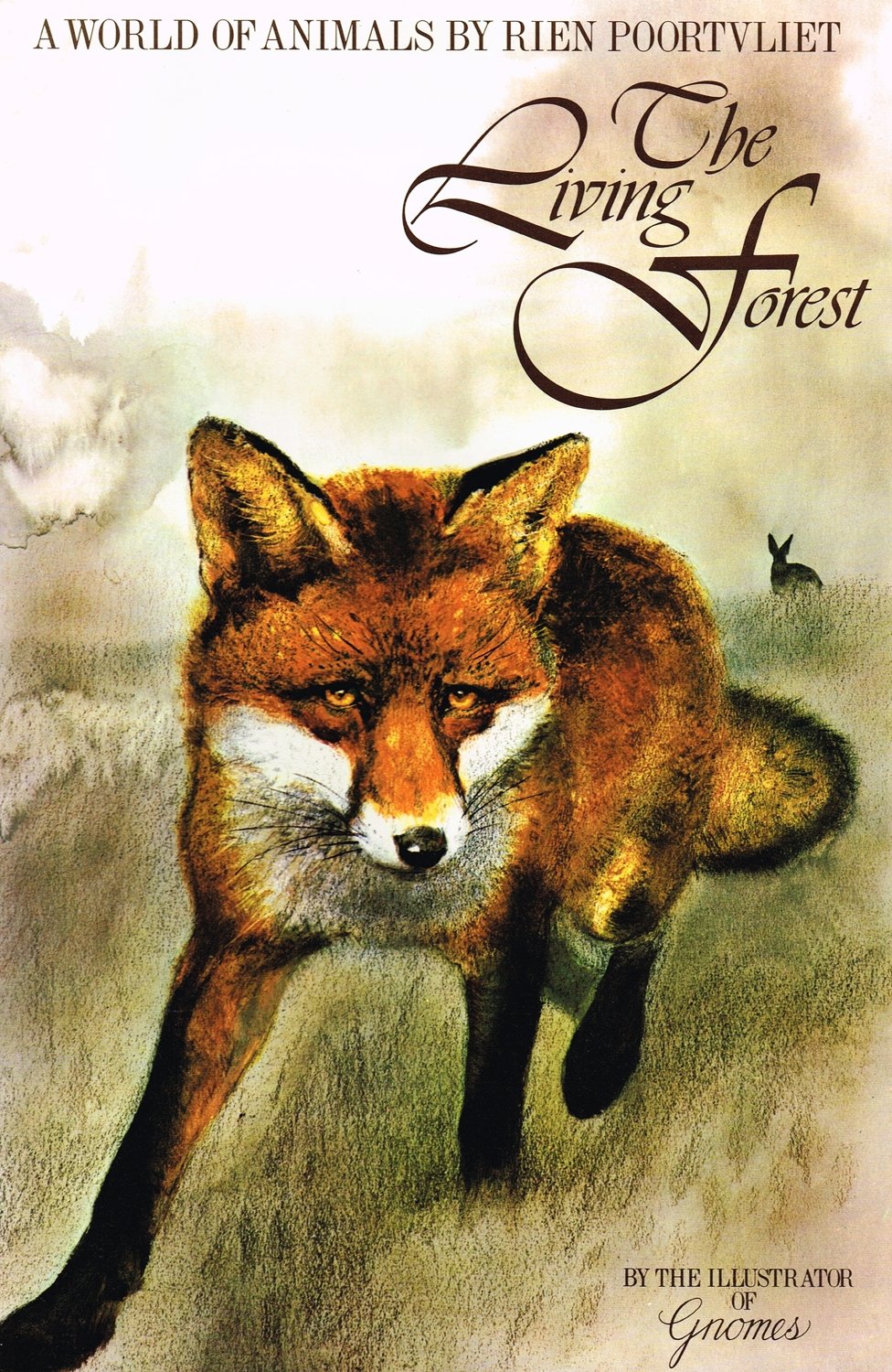 This book jacket for The Living Forest features a script that pairs beautifully with the soft and yet also precise water colors of Rien Poortvliet that tell the story of the animals of a forest somewhere in the Netherlands. It probably betrays the fact that it was created in the late 1970s, or perhaps it is just thin enough not to pin it down.