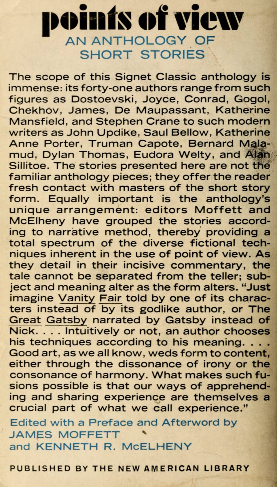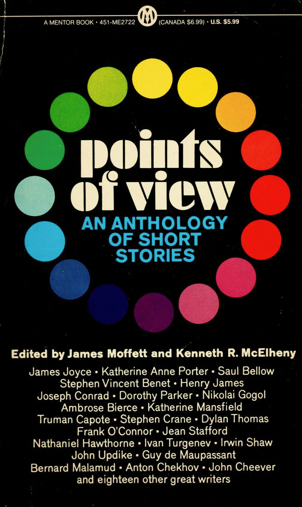 Futura Black in a circle of colorful dots, for the cheerful mid-century modern cover of Points of View: An Anthology of Short Stories. While the Mentor Books edition shown above features 16 dots in rainbow colors and Akzidenz-Grotesk on black, the first printing published as Signet Classic in June 1966 has 20 dots of smaller size, in a color scheme that rather resembles disco lights, against a pomp and power background. The secondary type here is in Trade Gothic Extended, the wide style of Jackson Burke’s workhorse gothic, added to the family in 1959. Both Signet Classics and Mentor Books are imprints of New American Library.