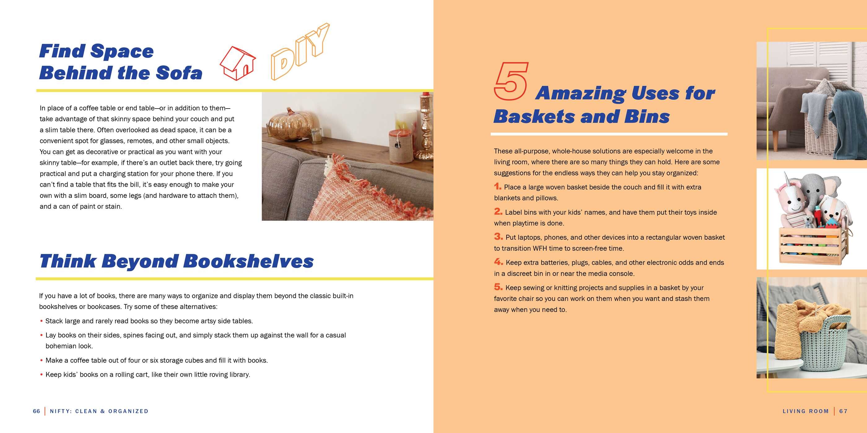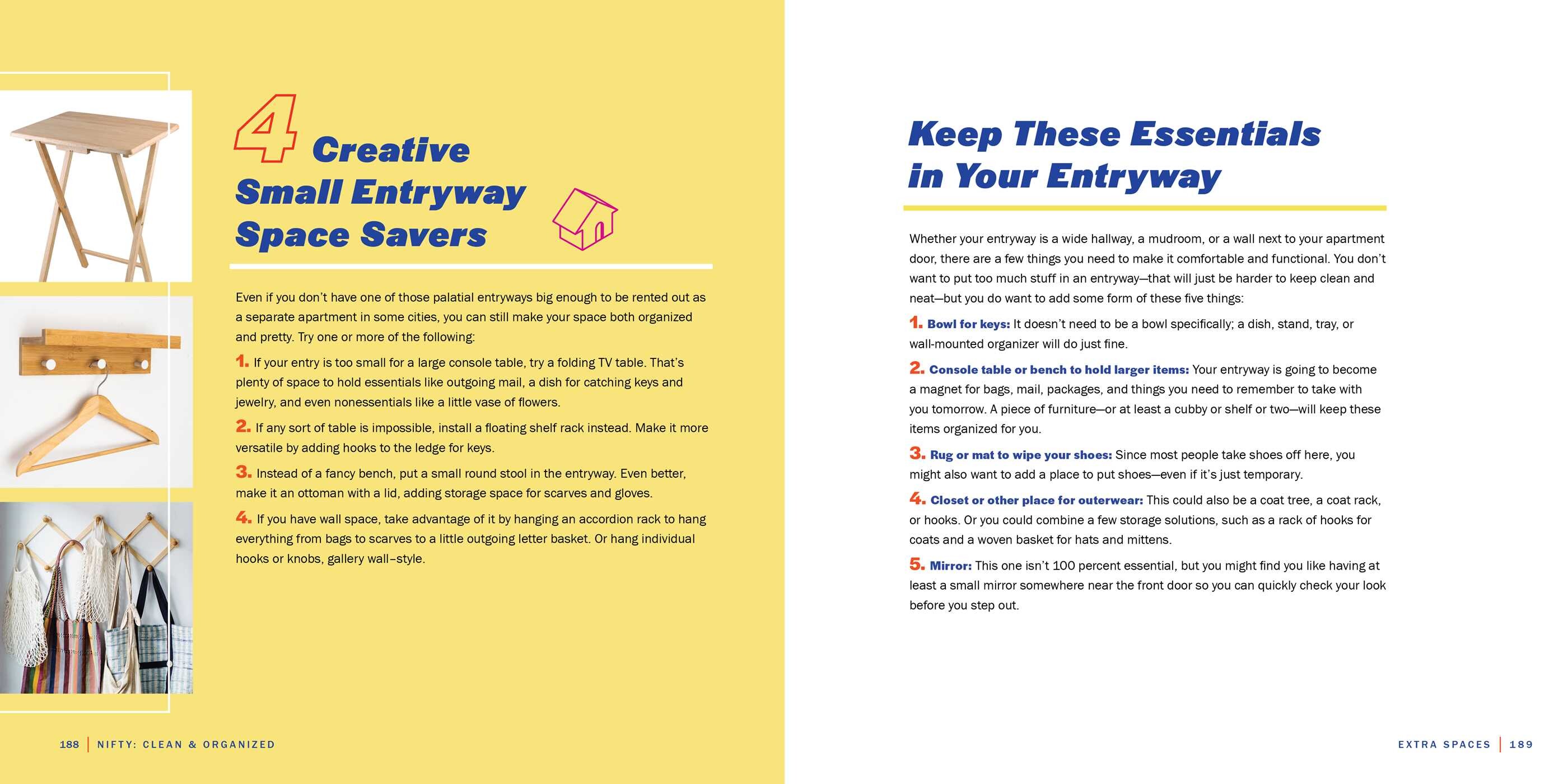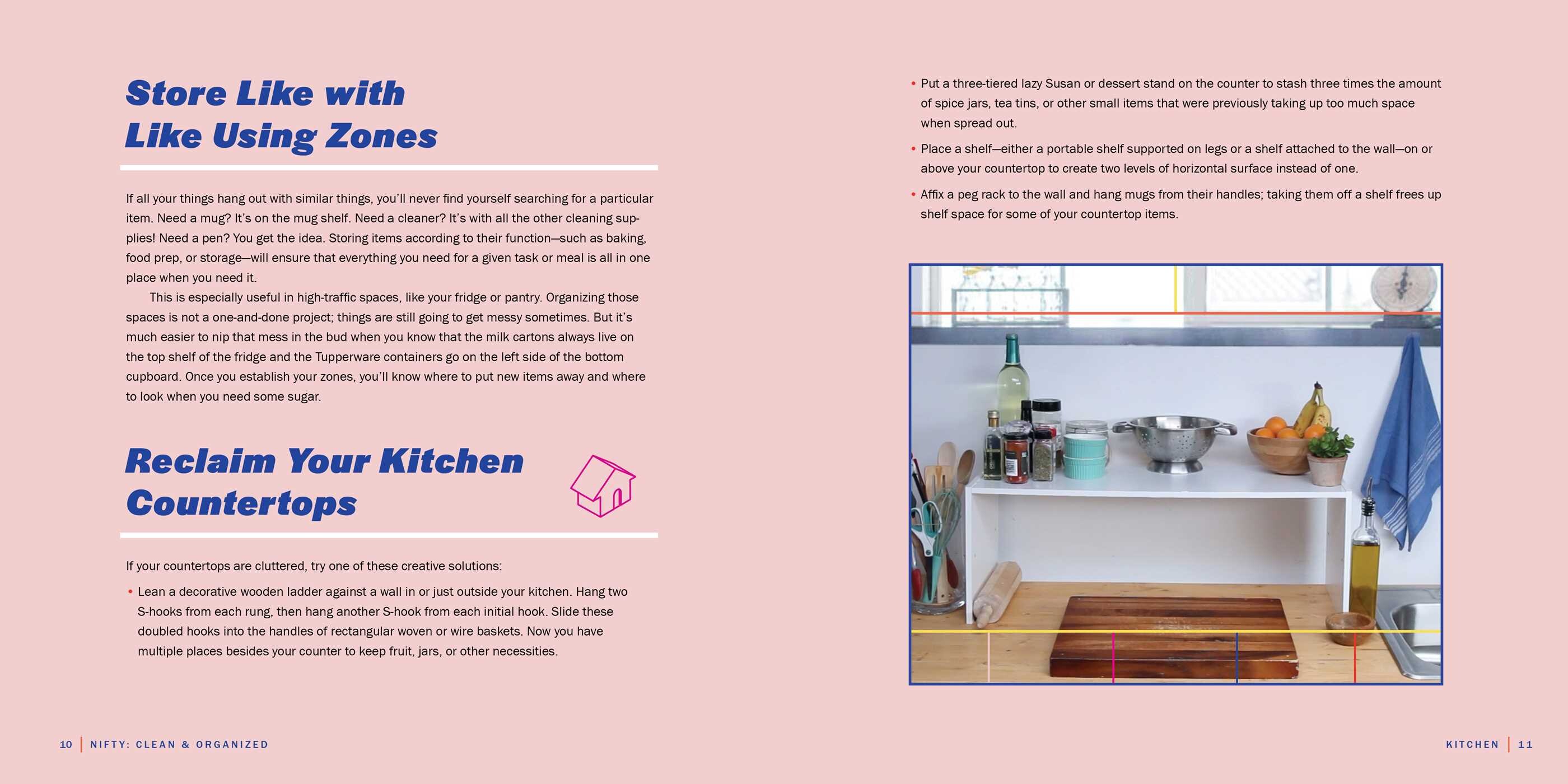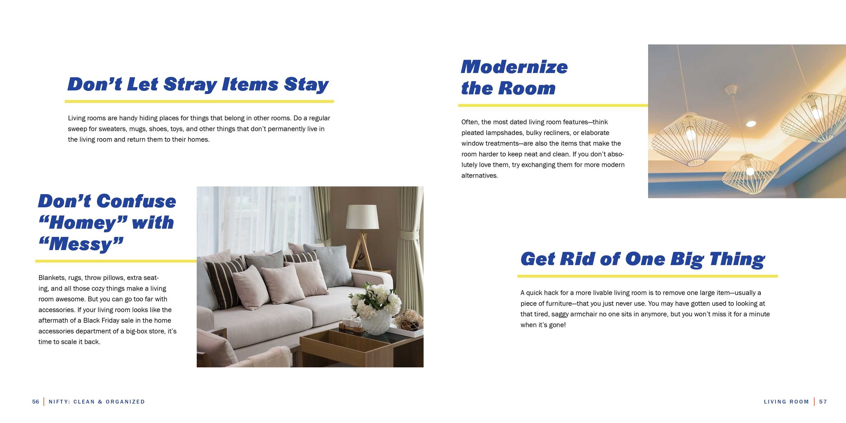Halyard Display is the typeface chosen for Nifty: Clean & Organized. Authored by the team of Nifty, a long-running column on Buzzfeed, the book offers a compilation of “money-saving hacks and easy DIYs for a clean and clutter-free home” in printed form.