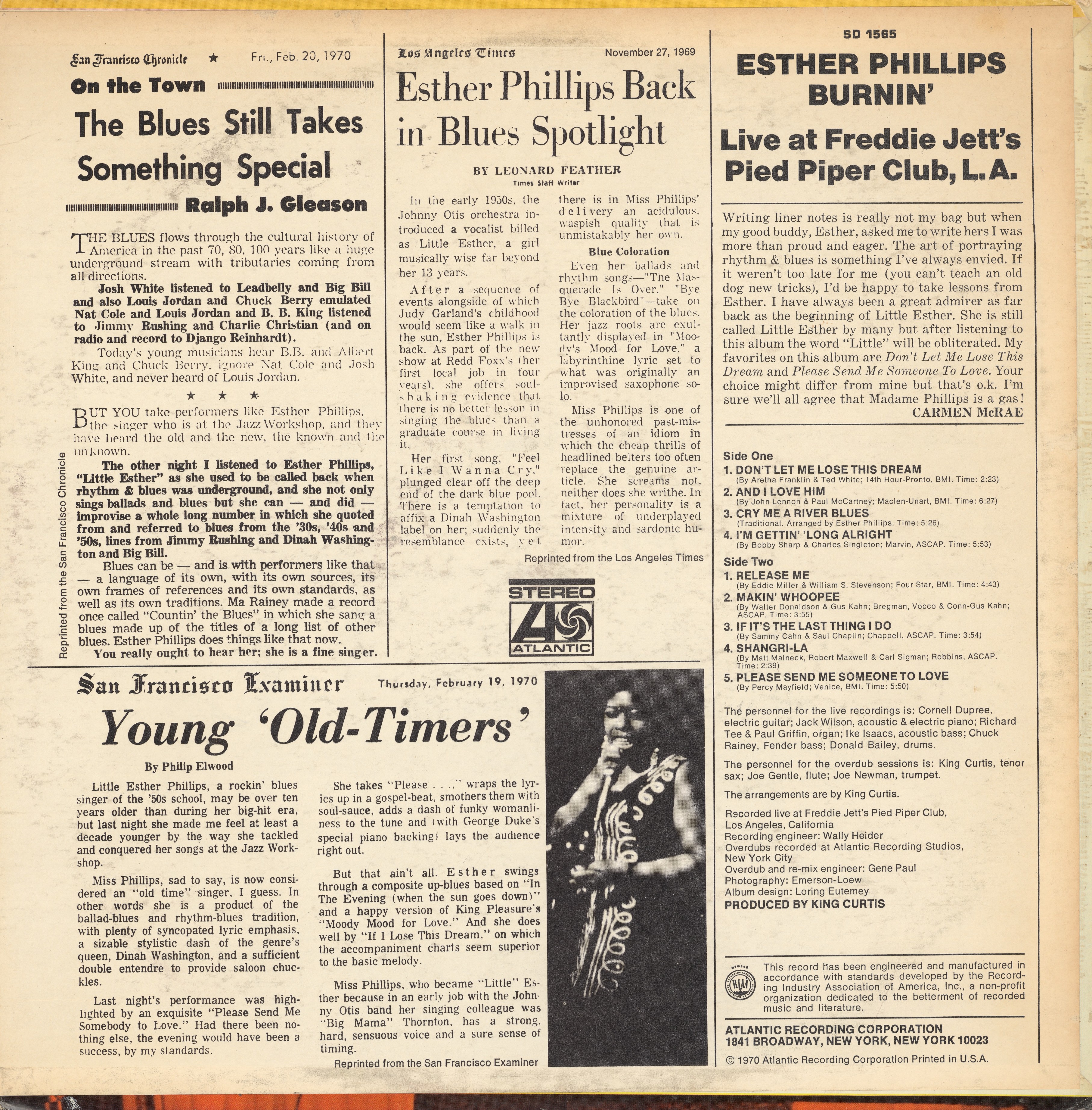 Esther Phillips – Burnin’ (Live at Freddie Jett’s Pied Piper, L.A.) album art