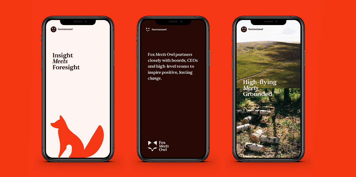 Our solution was a name and identity that bucks against the usual business coaching clichés. The name Fox meets Owl was devised to reflect the attributes of a great leader – the tenacity and emotional intelligence of the fox paired with the strategic and analytical intelligence of the owl. With the name agreed we created a memorable logo that combines both the fox and owl in a deft sleight of hand.