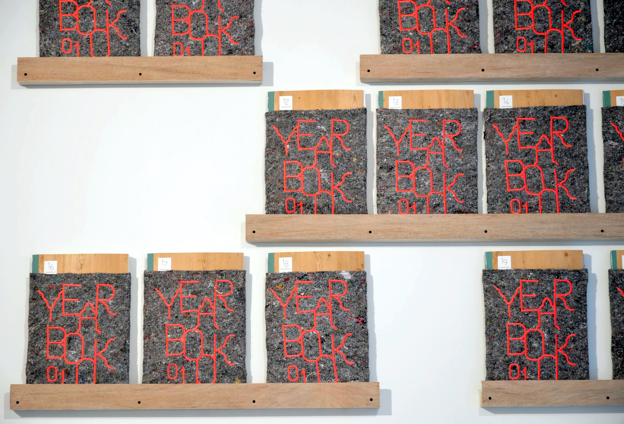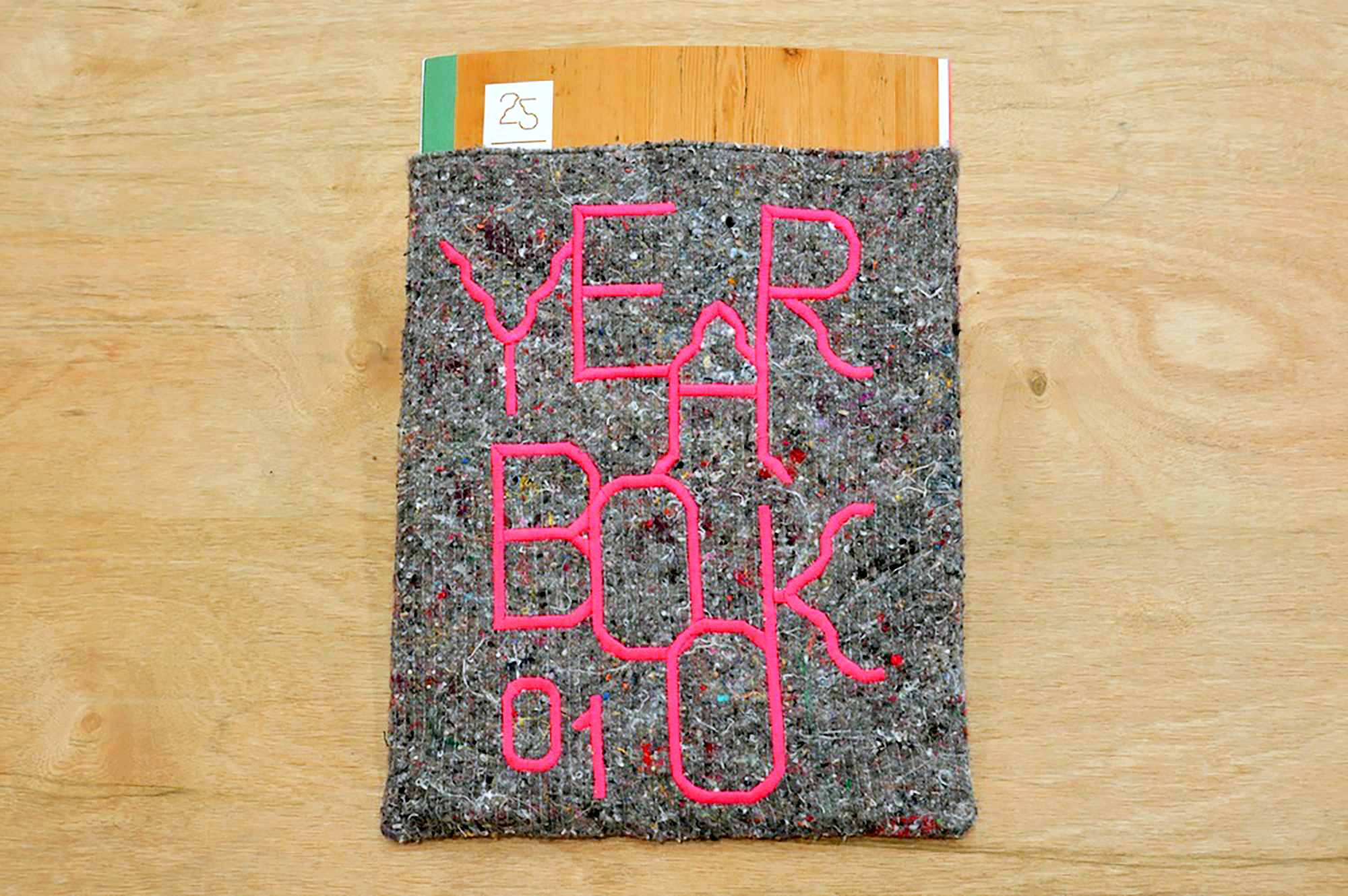 YEARBOOK 01 is an edition of 25 hand-bound portfolios compiled of original artworks by ten artists: Rhona Byrne, Rachael Champion, Joey Holder, Toby Huddlestone, Kristin Luke, Luke McCreadie, Rachel Pimm, Barry Sykes, Francis Thorburn, Martin Westwood. The book is hand-stitched with woodside card stock, book cloth and archival paper. Sleeve and cover designed by Ditto Press. YEARBOOK 01 was curated by Lucy A. Sames.