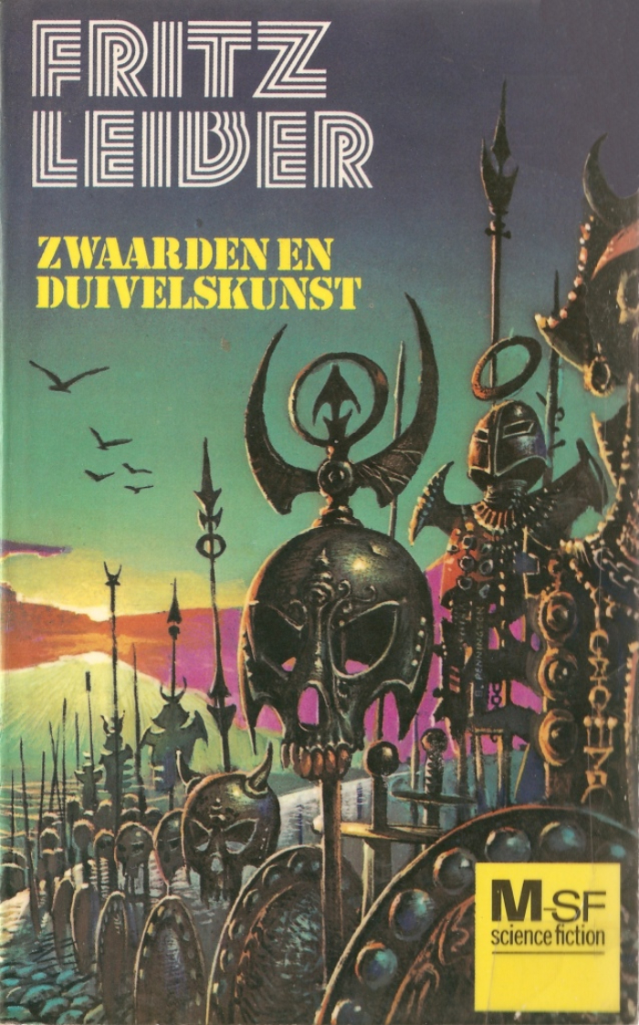Dutch edition of Swords and Deviltry, a collection of fantasy short stories by Fritz Leiber, first published in 1970. The book was translated by Pon Ruiter. This paperback edition by Meulenhoff was issued in 1975 as #97 of their M=SF series, with cover art by Bruce Pennington. No typographer is credited.
