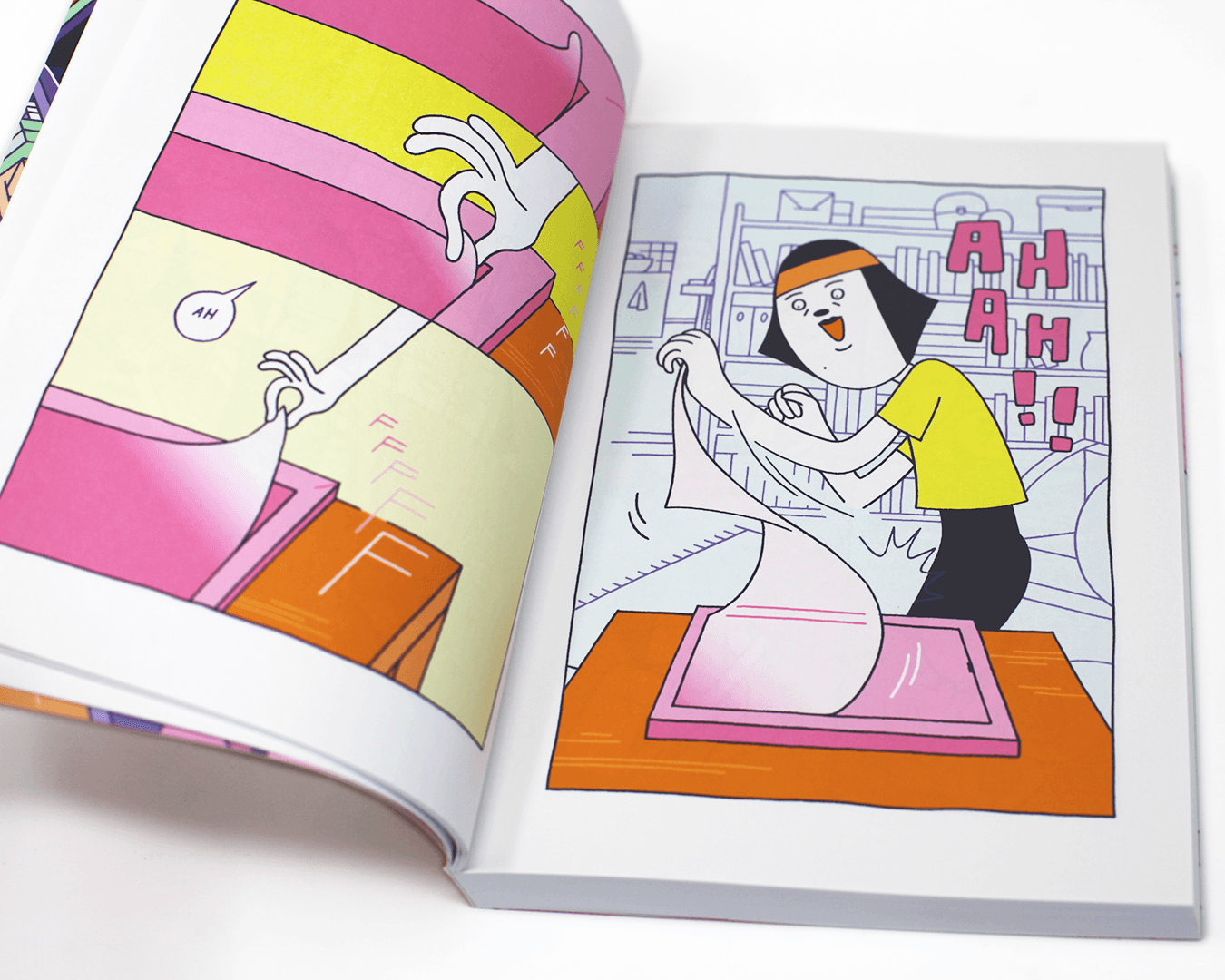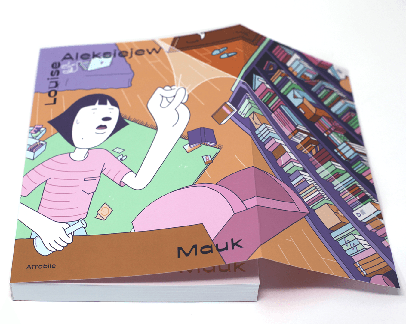 With Mauk, Éditions Atrabile has published her first long comic book. Rita, a young and passionate architect, is in trouble: there is someone in her apartment. The signs are there, the presence of the “thing” is undeniable, soon she has to accept the existence of the strangest of roommates: Mauk! Yet Mauk is not easy to find, his uncertain form, his ability to hide, his silence make him a rather discreet creature. Then Mauk starts talking, and even discussing. Between the recalcitrant parasite and the young architect, the relationship will evolve slowly but steady, from stormy to more complicit. They find out what unites them instead of holding on to what divides them.