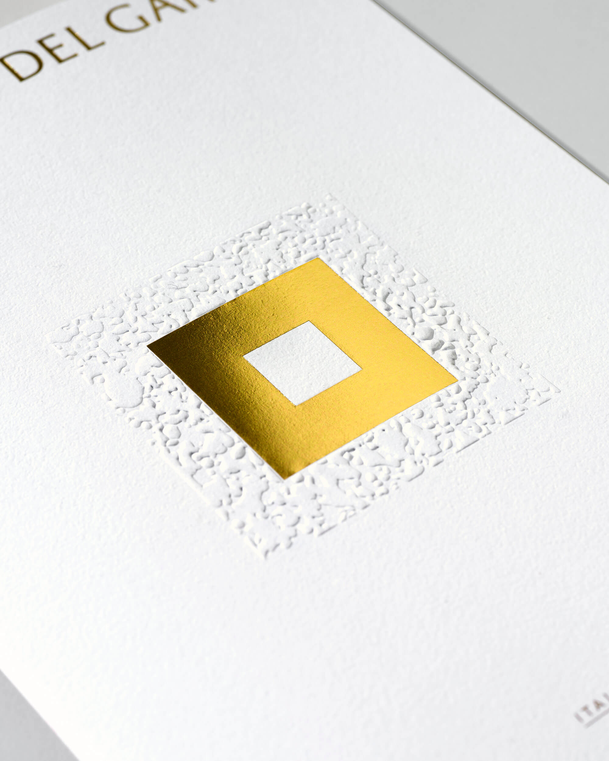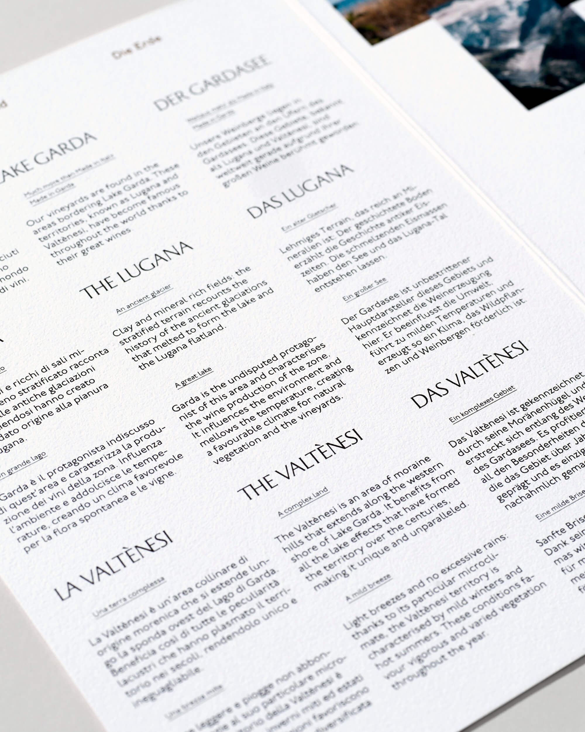 Carosello Lab worked with him to create a distinctive brand identity and packaging design/ The design is based on the concept “The Earth, the Man, the Wine” and represented by three concentric squares. A slightly modified version of Garda Nova No. 2 was used for the logotype that uses Garda Nova’s alternate R with a straight angle leg. while all the texts were set in ITC Johnston Medium, conveying the feeling of a timeless, elegant brand.