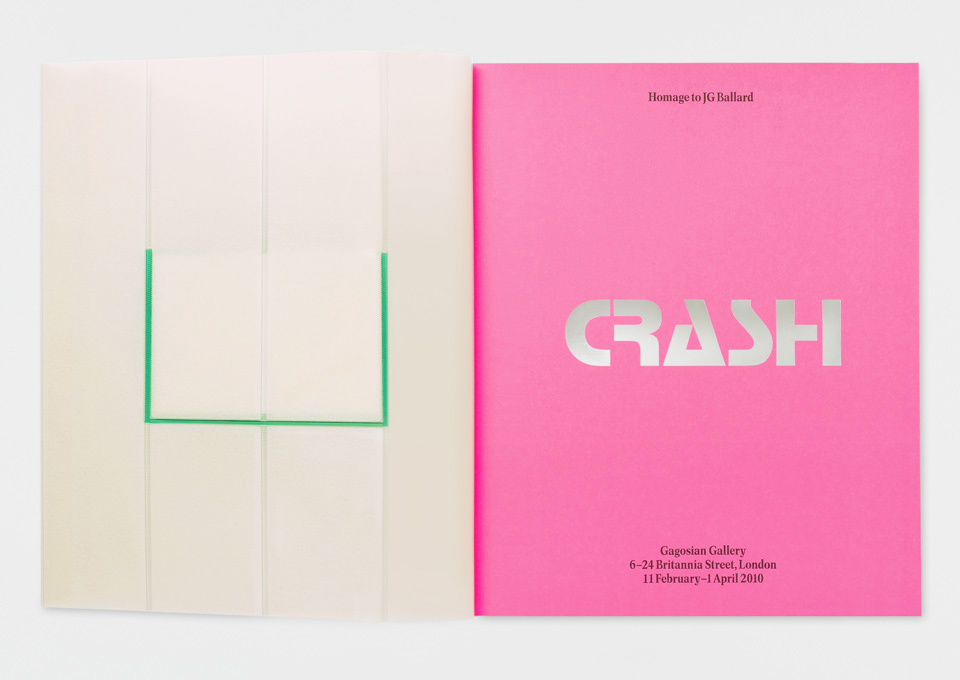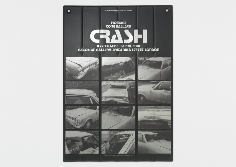 In 2010, the Gagosian Gallery London presented Crash, “a major group exhibition … which takes its title from the famous novel by JG Ballard”. The accompanying catalog and poster as well as the venue were designed by Graphic Thought Facility, using Aldo Novarese’s iconic Stop as the main typeface.