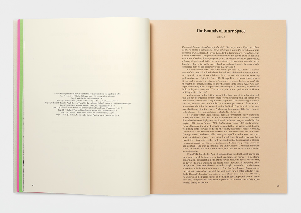 Pockets on the foam-padded plastic cover showed photographs Ballard took of his Ford Zephyr following a car accident in 1973.
