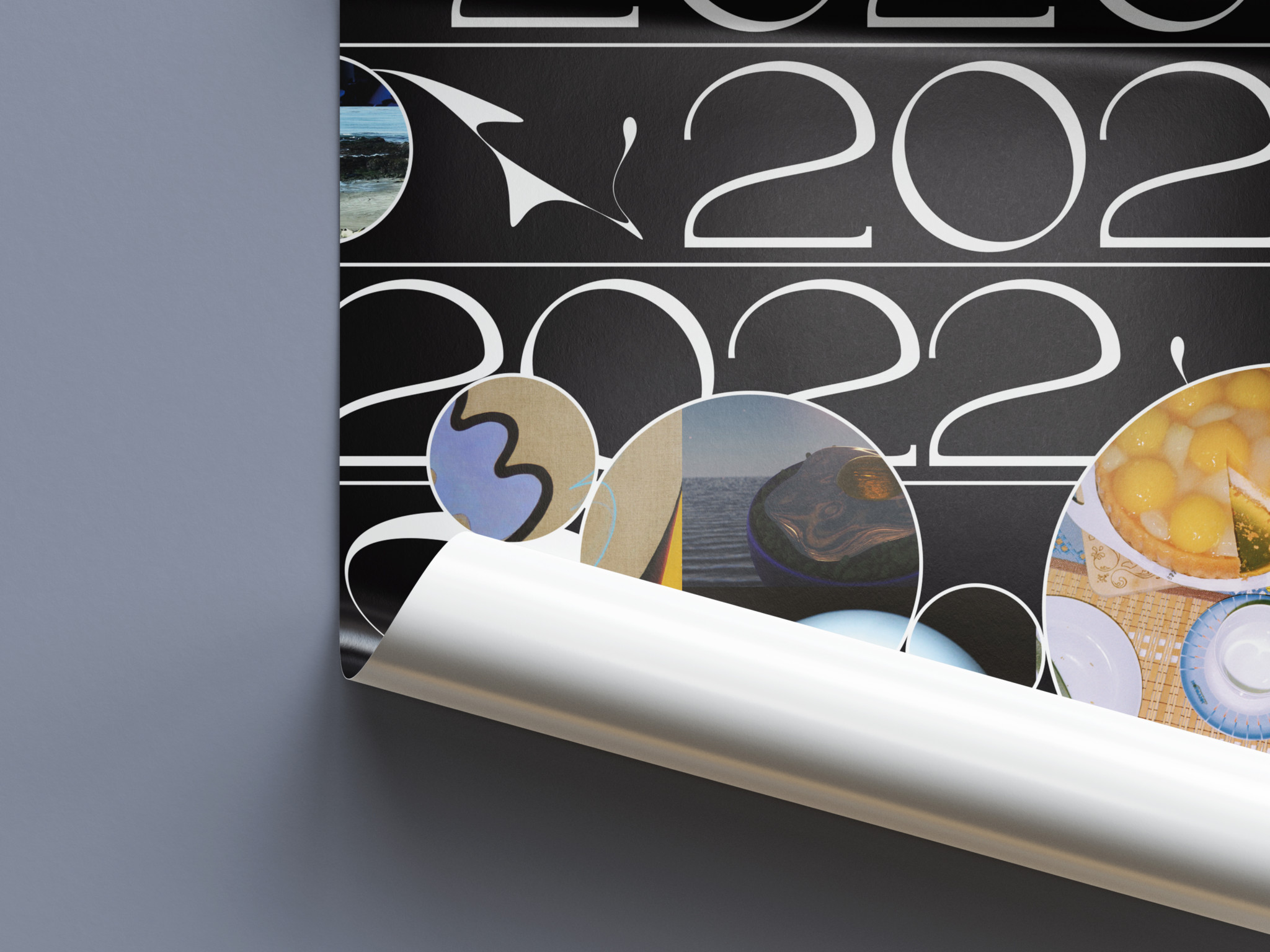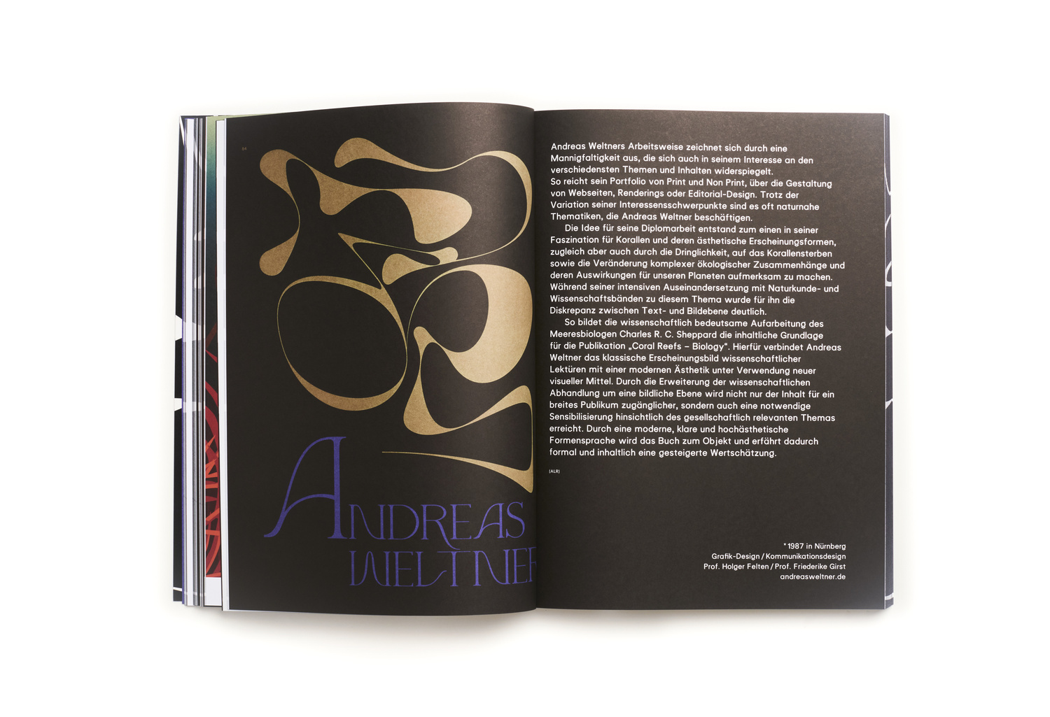 Andreas Weltner and Tobi Frank designed the invitations, posters, the website and the catalog. They used BM Ikon for the titles and Biliktu Grotesk Screen (superseded by Biliktu Grafik) for paragraph text. The website header additionally uses Sequel 100 Black.