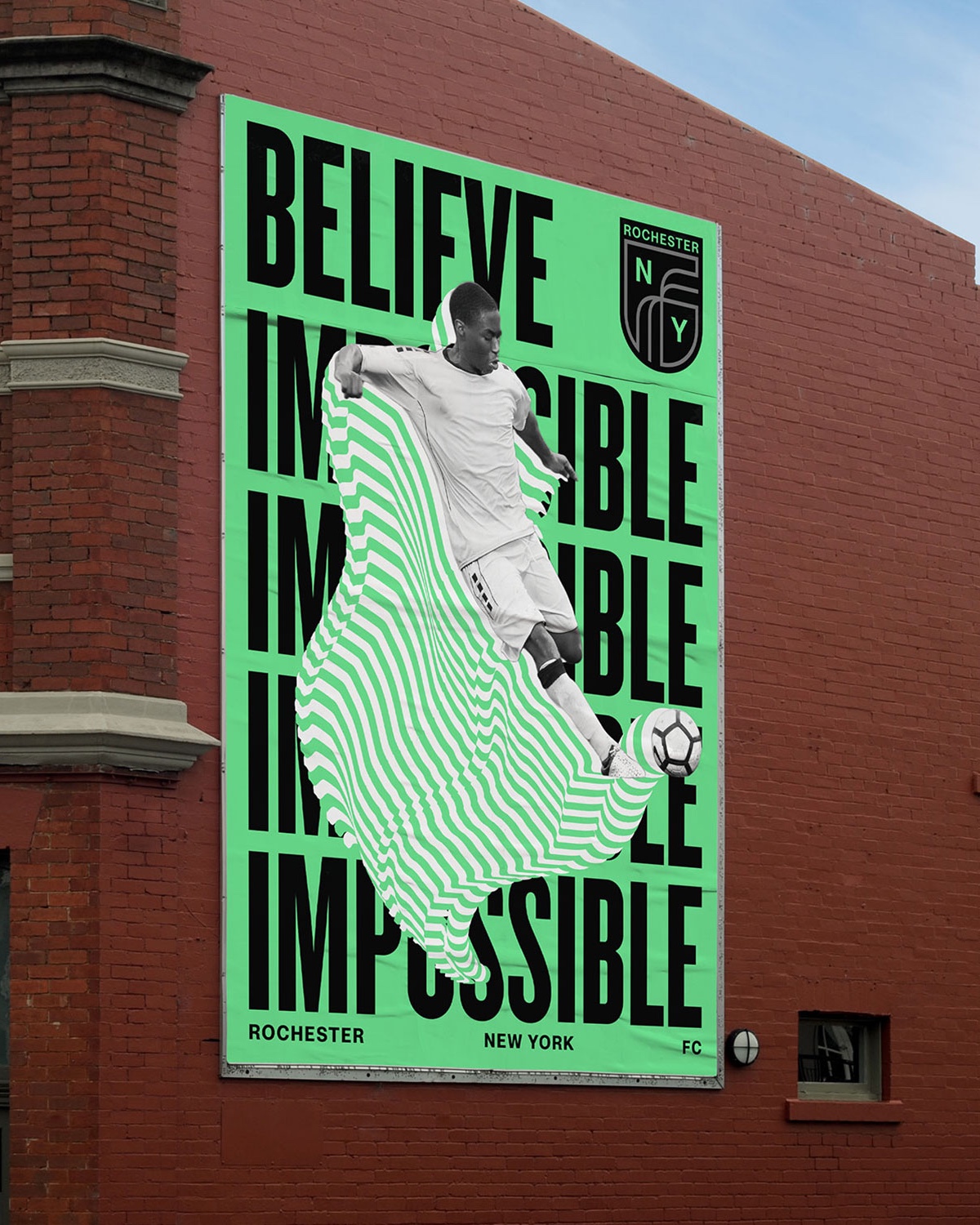 At the heart of Rochester lies the High Falls waterfall, where the city was built around. This was where we drew our inspiration from for the crest. From here, the power and energy of this iconic landmark flows through everything. Behind the brand lies the stories of perseverance, determination and the true grit that the city, team and owners are all made of, recognised in the club philosophy of ‘Believe Impossible’.