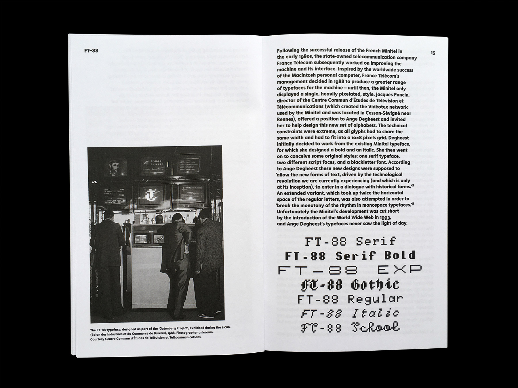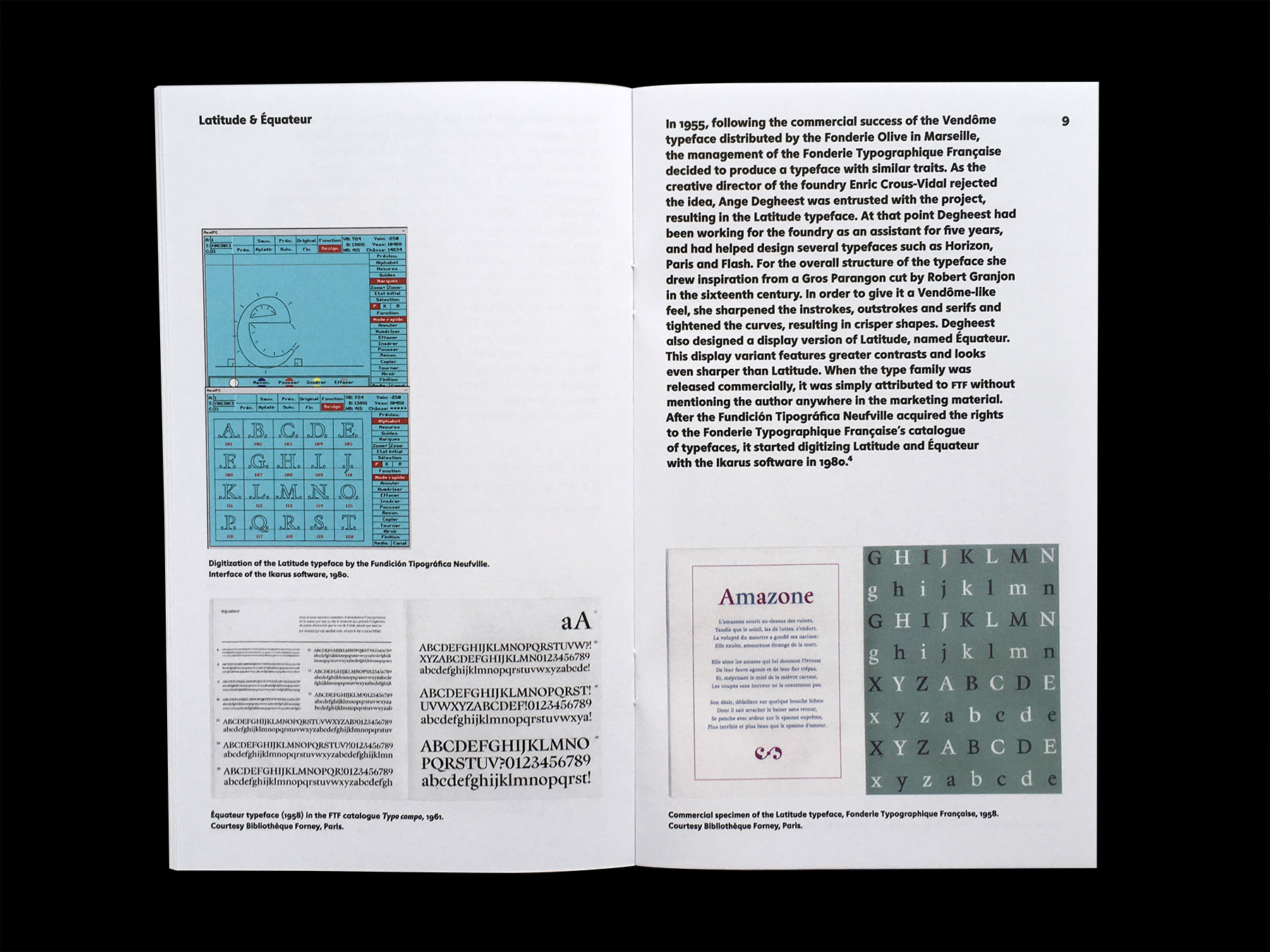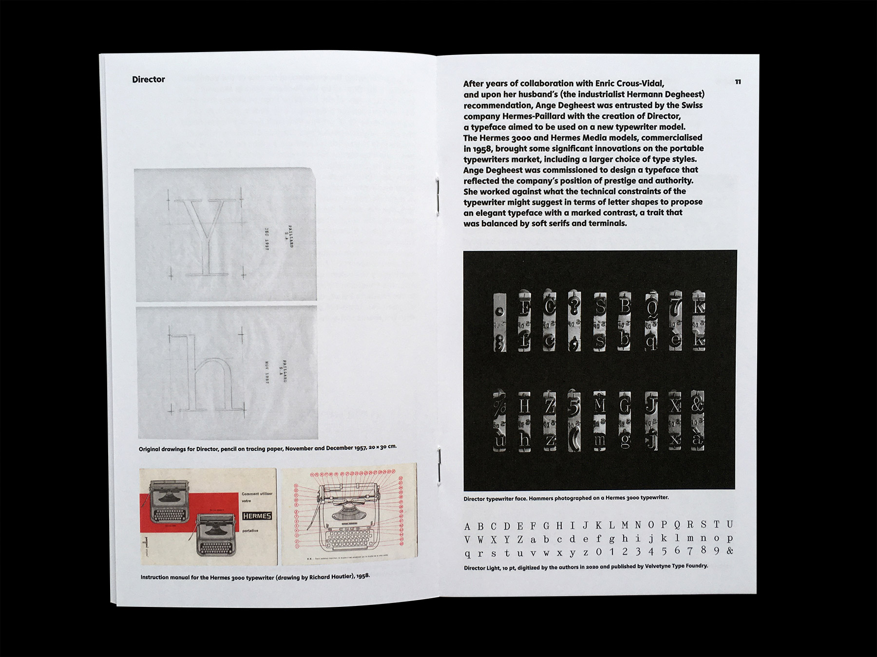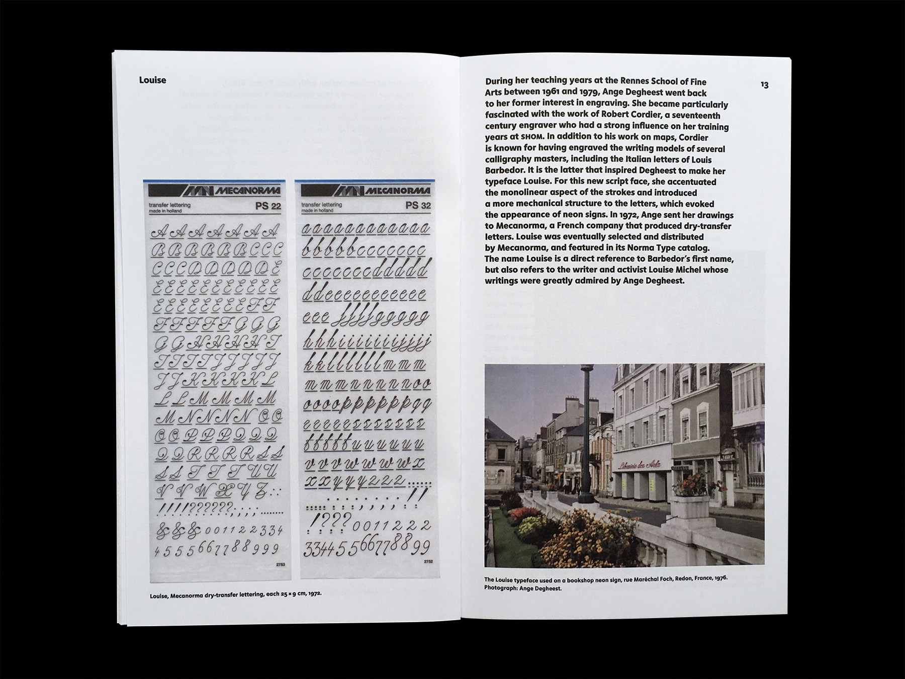 From metal type to phototypesetting, from the typewriter to the Minitel, and from engraving to dry-transfer lettering, the typographical work of Ange Degheest (1928–2009) testifies of the numerous technical changes the printing and telecommunication sectors went through during the second half of the twentieth century. Ange Degheest’s story is remarkable and a perfect illustration of the technical odyssey that took place throughout the twentieth century. Yet it is astonishing and disturbing to realise that, in spite of the quality and diversity of her lettering and type design work, her name has been forgotten amongst the list of those who have shaped the history of typography to this day.