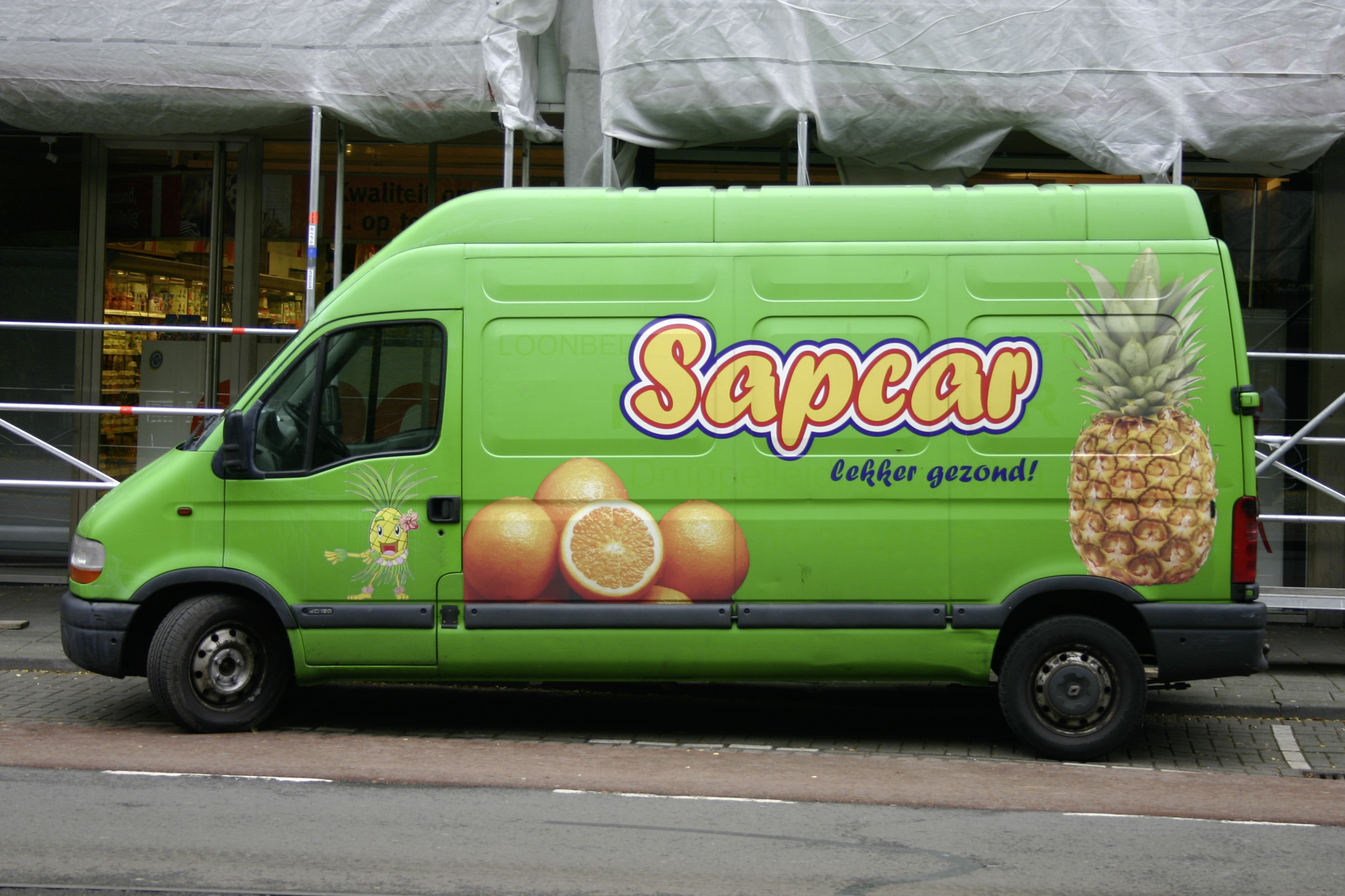 The Dutch mobile juice service Sapcar (“Juice Car”) uses Forte – with a triple outline in the national colors.