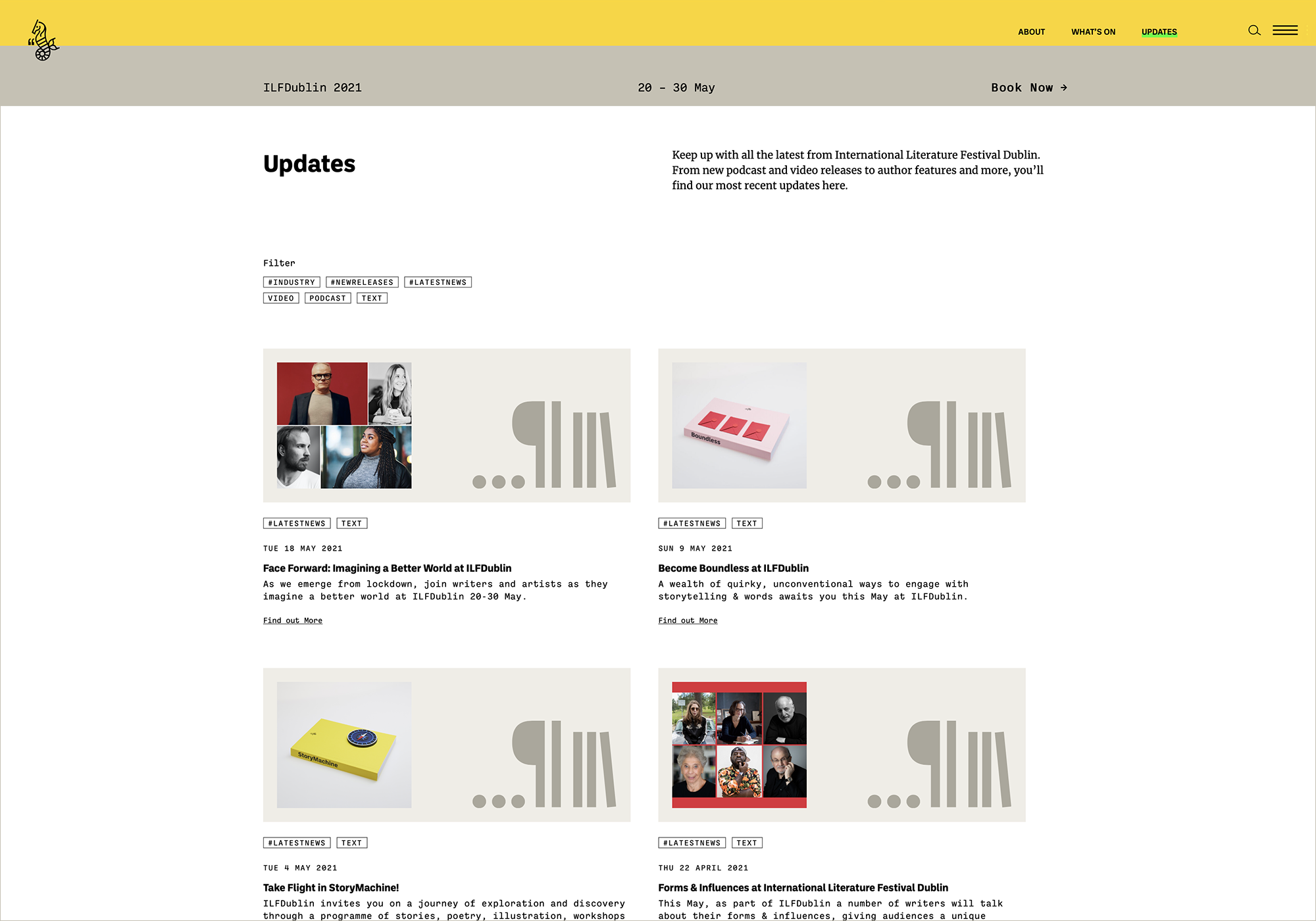International Literature Festival Dublin 2021 Contributed by Max Phillips on Apr 8th, 2022. Artwork published in 2021. Red&Gray. License: All Rights Reserved. Branding and promotion for the 2021 edition of Ireland’s premier literary event, the International Literature Festival Dublin. As in 2020, website and branding are by Red&Gray, and photography is by Ros Kavanagh. Photo: Max Phillips. License: All Rights Reserved. Red&Gray. License: All Rights Reserved. Red&Gray. License: All Rights Reserved. Red&Gray. License: All Rights Reserved. Typefaces More about BallingerGet BallingerMore about Ballinger MonoGet Ballinger MonoMore about NewzaldGet Newzald Formats Web (5683) Topics Event (3266) Literature (3060) Designers/Agencies Red&Grey (2) Tagged withfestivals (229)events (194)Dublin (7)seahorses (3)International Literature Festival Dublin (2)websites (3626)book spines (1639)monospaced (1261)literature festivals (22)type series: proportional+mono (318) Artwork location Ireland (146) Dublin (78) In SetsSignal Type Foundry (Max Phillips) (46)type proj 4 (Mikaela Ortiz) (20) Post a comment Name Email – will not be published Website Your response Submit Comment More Ballinger in use RSA websitec. 2022BBDO DublinContributed by Max Phillips It’s A Long Way To Tipperary by Karl Toomey2020Karl ToomeyContributed by Max Phillips Wove websitec. 2021WoveScott BurnettJohnny KellyContributed by Max Phillips Sponsor More in Literature 41st Granada Book Fair2023PlácidaContributed by Gareth Hague Vai Vem Editorac. 2022Pedro MotaMargarida AntunesCommon FormsContributed by Common Forms Staff Pick Hyper by Agri Ismaïl, Albert Bonniers Förlag2023Studio Daniela JuvallContributed by Daniela Juvall Una mela al giornoc. 2020Daniele SimonelliMarianna RossiContributed by Marianna Rossi More in Web Lumina Travel Coc. 2025Farm and Fir Co.Contributed by Pixesia Studio Armario 332023Estudio NuarMelisa RivasManuela VenturaContributed by Nikolas Type Bio‑Hybrid identity2018BrandcodeContributed by TypeMates Megaplex2024MatchsticContributed by Sean O'Connor More Fonts In Use HGTV Canada identity2012TendrilContributed by Angus Shamal Staff Pick Serpico movie poster, titles, soundtrack album cover1973Diener Hauser BatesEd BenguiatContributed by Florian Hardwig Staff Pick The Mother Journal2015Lorena ManhãesContributed by Love Lagerkvist Staff Pick Whities + Die Orakel poster2018Alex McCulloughContributed by Sunny Schultz Staff Pick