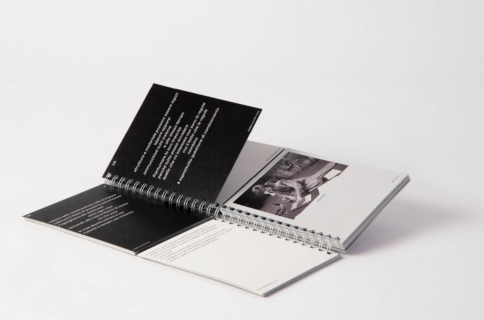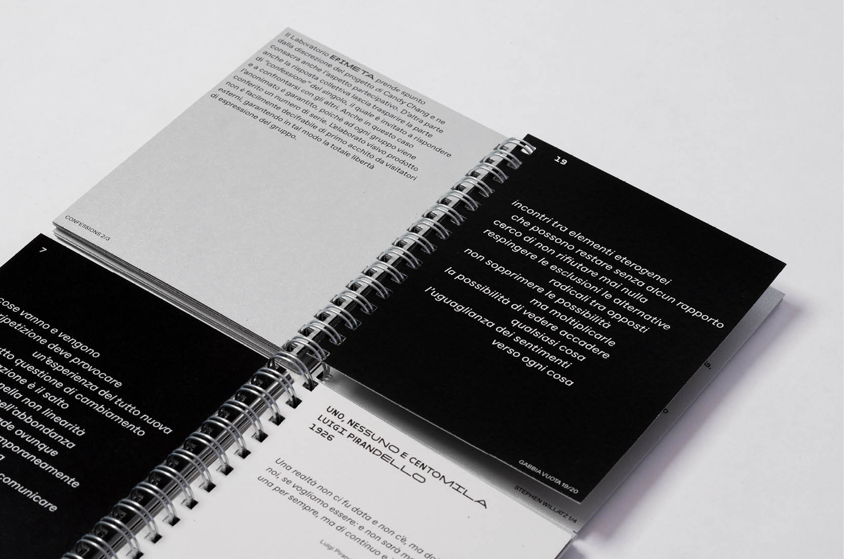 The project was designed by Veronica Paoli with Celeste Quercia & Rachele Bozzato as a student project for Metodologia della comunicazione at ISIA Urbino, under supervision of Marco Tortoioli Ricci. The booklet was displayed at the exhibition Il mestiere di grafico – oggi at Triennale Milano.