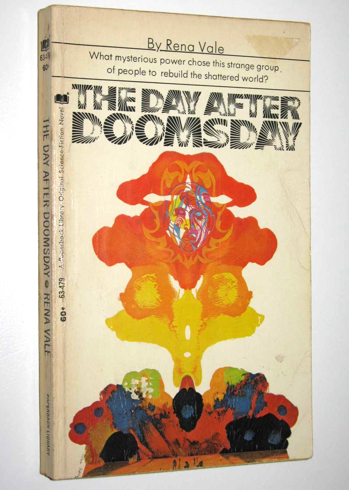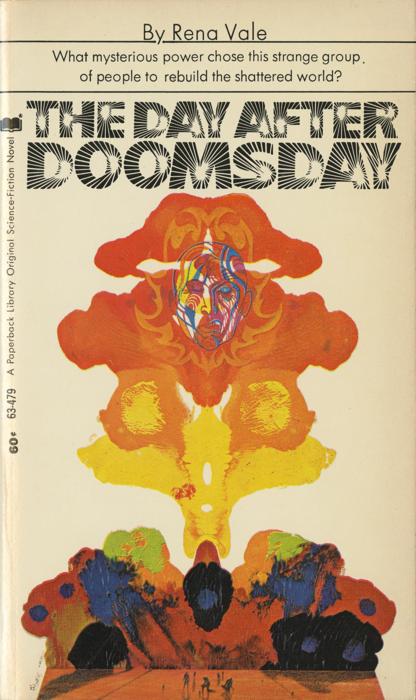 Burst Caps here can be seen on the cover of a science fiction novel by Rena Vale (1898–1983), published by Paperback Library in 1970. No typographer is credited. The cover art with the Rorschach test-like mushroom cloud is by Richard M. Powers.