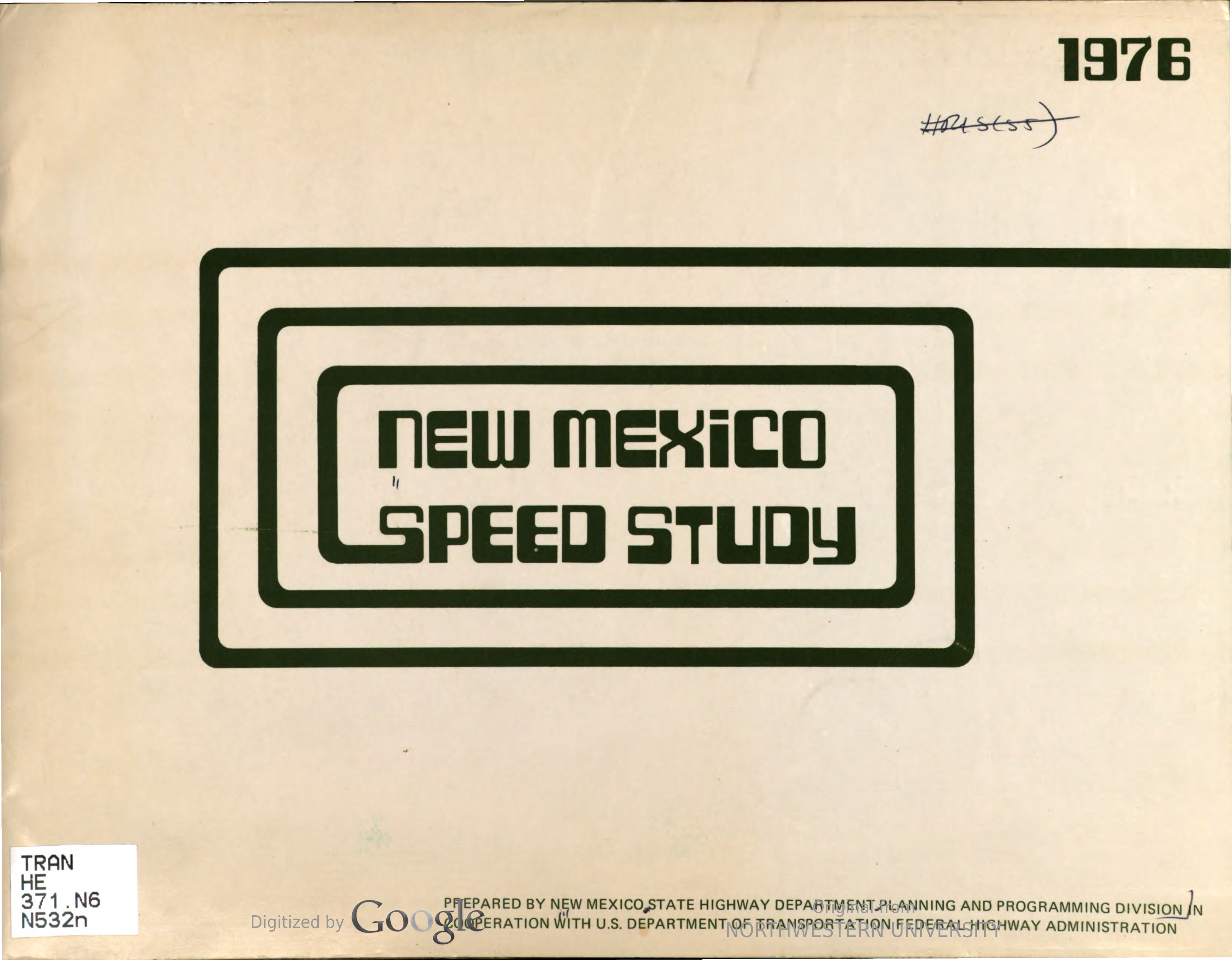 Cover of the New Mexico Speed Study from 1976, prepared by the New Mexico State Highway Department, Planning and Programming Division, in cooperation with the U.S. Department of Transportation, Federal Highway Administration.