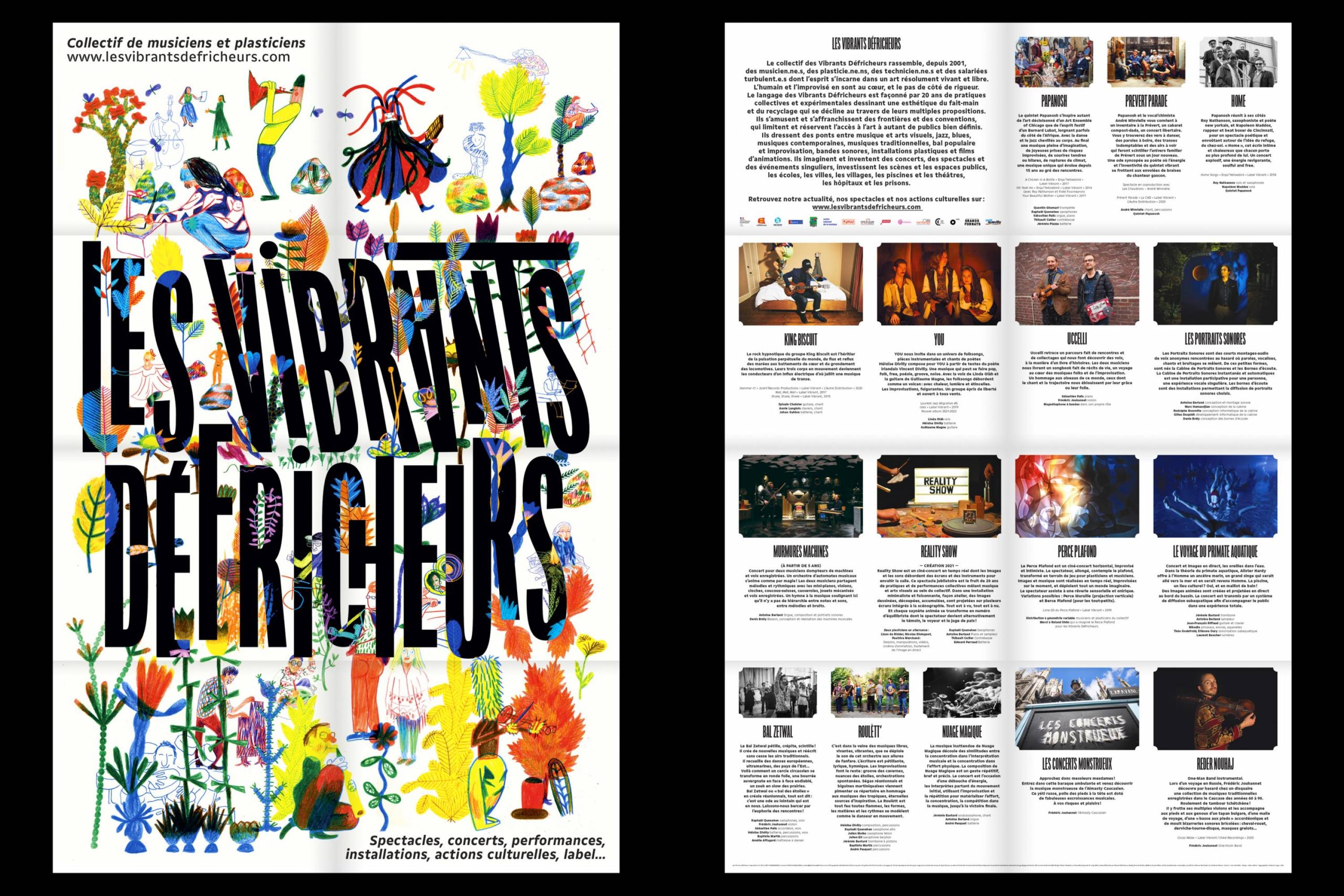 With this in mind, one understands better the complex mission stated by the associations’ adherents, ranging from musicians to performing and visual artists to technicians and volunteers. Cross-over, improvisation and the fusion of artistic disciplines is at the very heart of their work. They aim at reaching out to the most diverse audiences with their events and are committed to their local community, organizing projects at schools and in hospitals. Apart from that, the Vibrants Défricheurs founded their own music label called Label Vibrant.