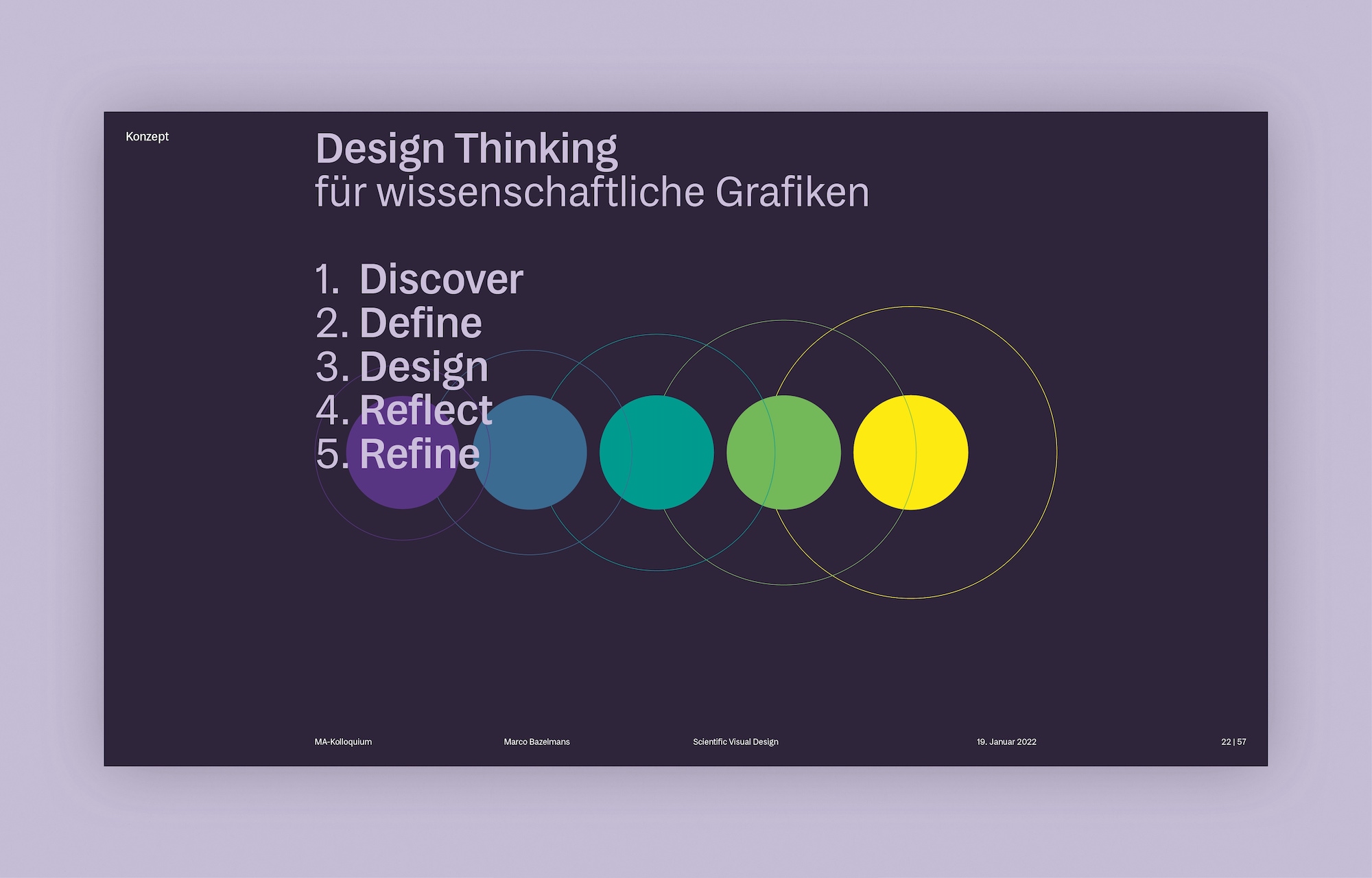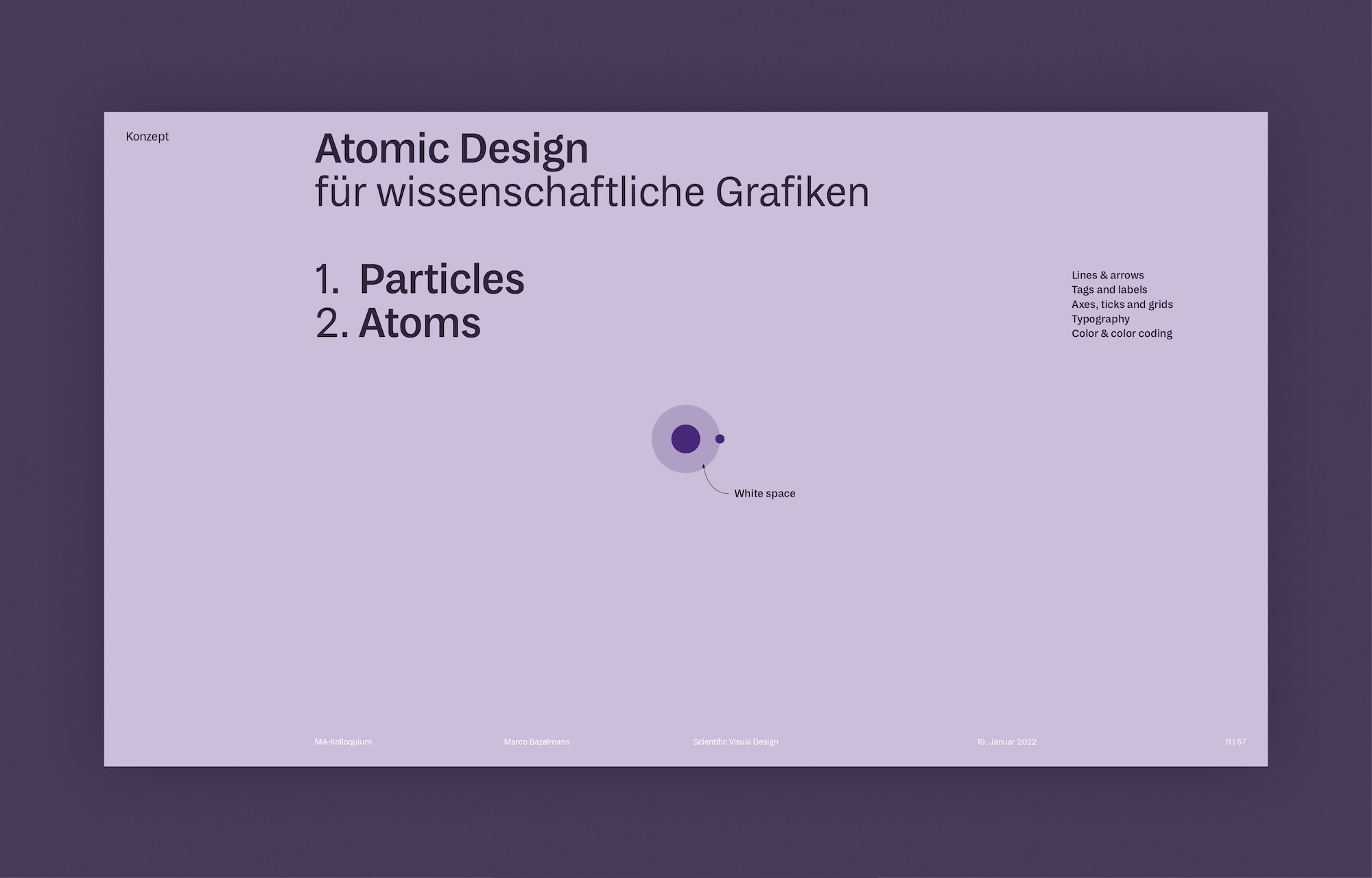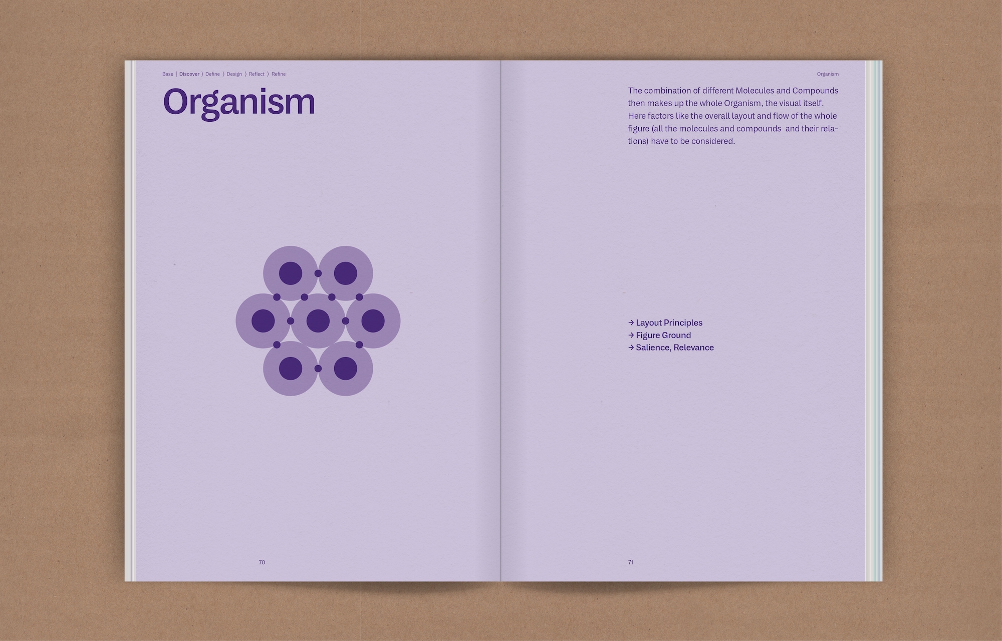 The Scientific Visual Design Handbook and Workbook offer a theoretical as well as a practical introduction to the basics of visual communication for scientific graphics and visualisations. In a concise format, the project aims to help scientists with the creation of their visuals. With Atomic Design for scientific graphics, the first chapter of the Handbook begins with a clear overview of the toolbox of visual components and important design basics. Based on the Atomic Design approach for web design – rethought and adapted for scientific visualisations.