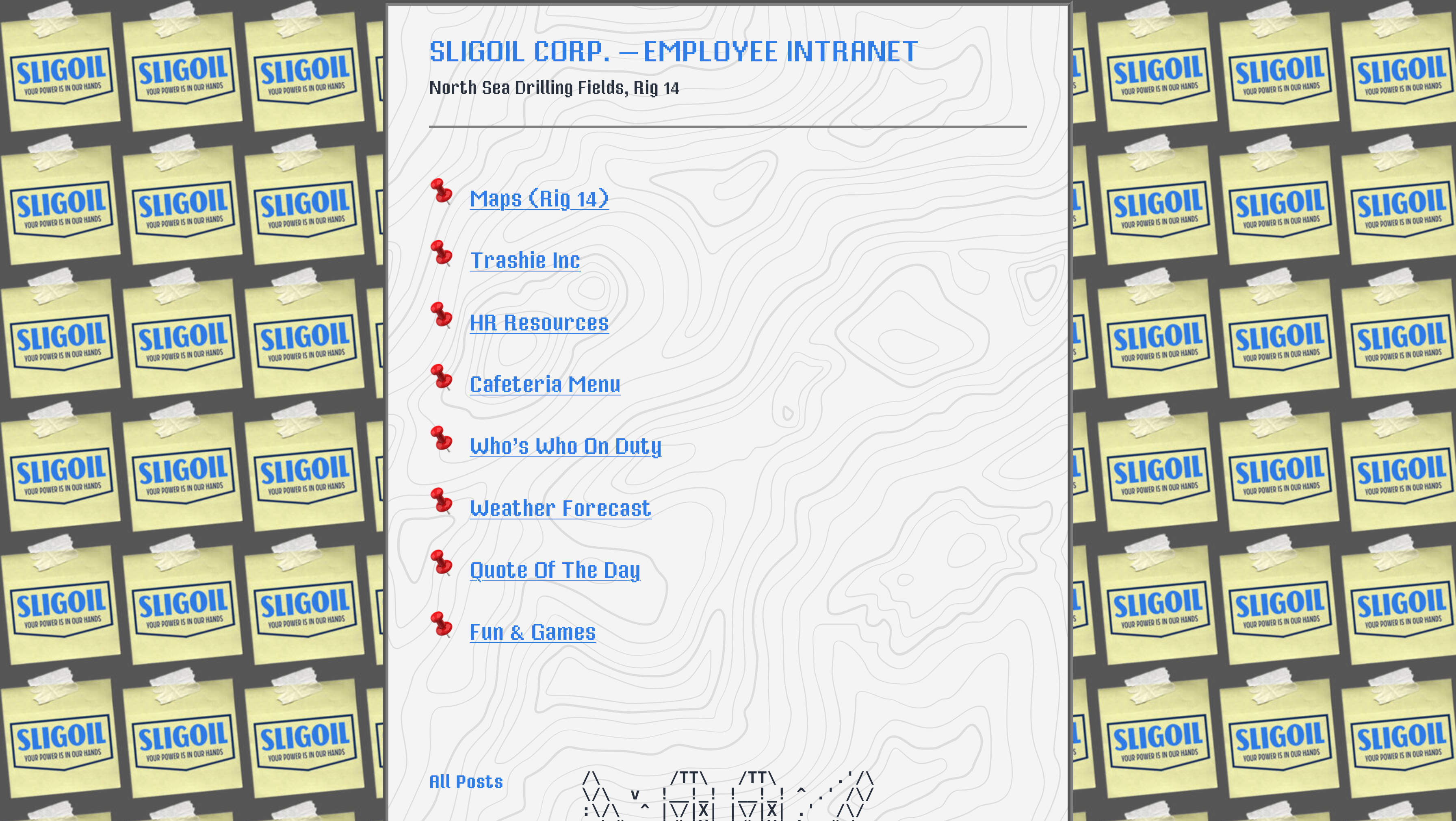 Sligoil is a fictional (evil) company that appears in Unknown Number, an upcoming puzzle game by Godolphin Games based on voice recognition. The Sligoil website is one of the leads gamers need to follow in order to solve some clues. The outdated look of some elements like the glossy buttons and 3D icons convey the feeling that Sligoil is an outdated company.