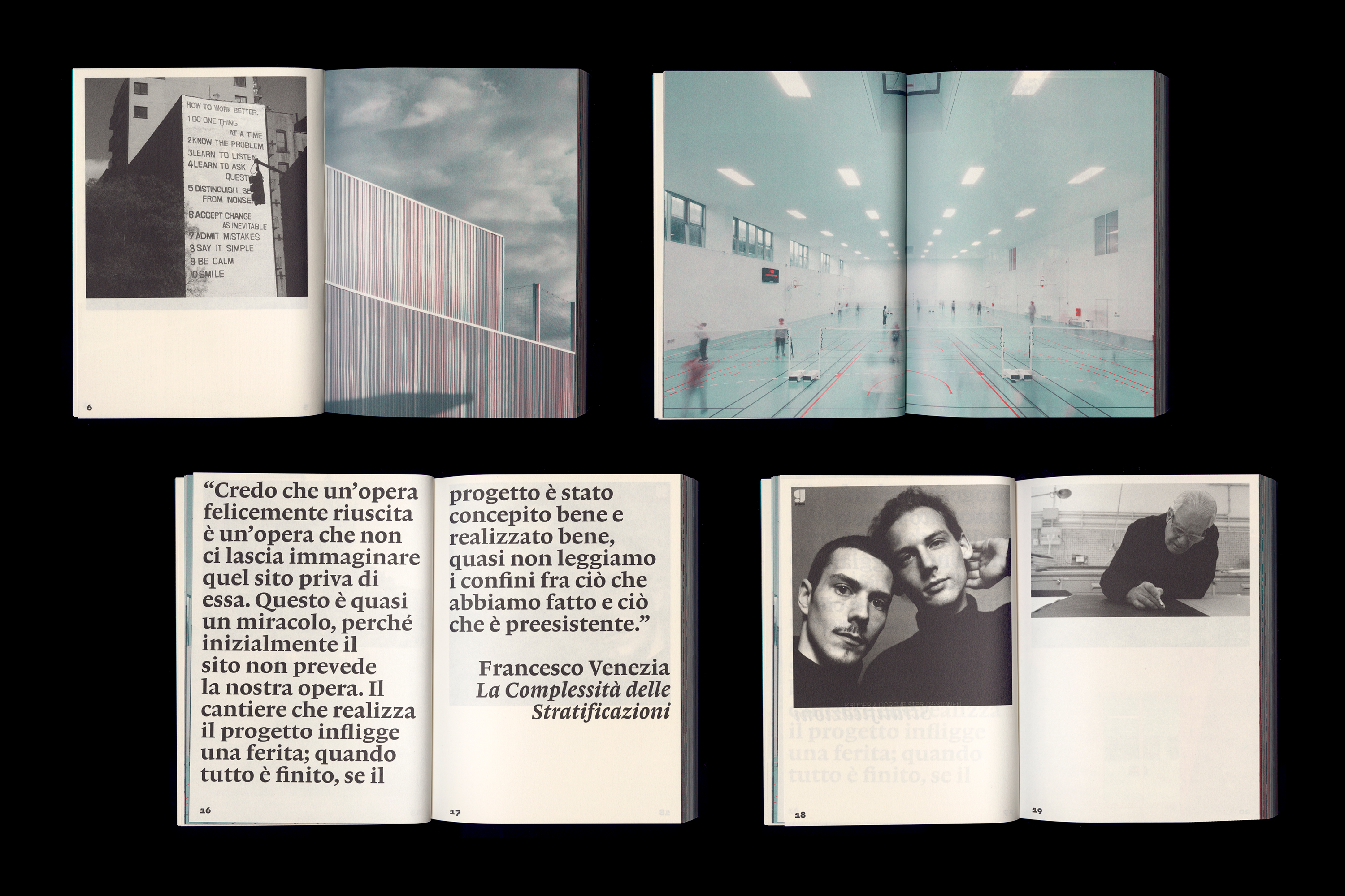 The conception and layout of this multifaceted book were realized by graphic designer Toan Vu-Huu, skillfully combining the different types of content to give them meaning. For the realization of this book, he chose Lexicon for the literary side of the quotations, and BVH Eddi to talk about the current projects or the architect’s quotes.