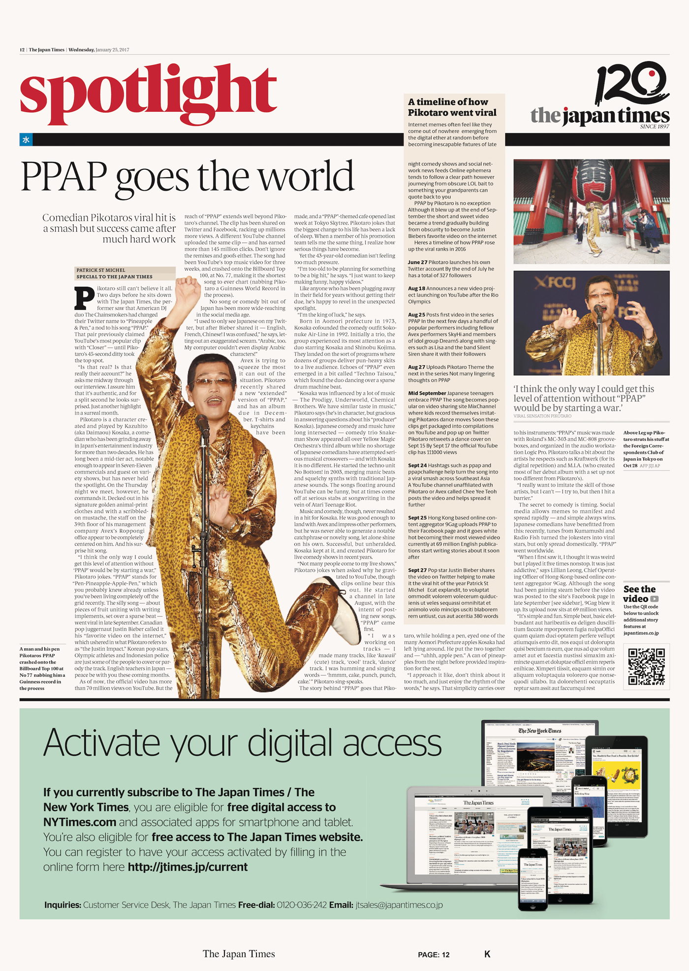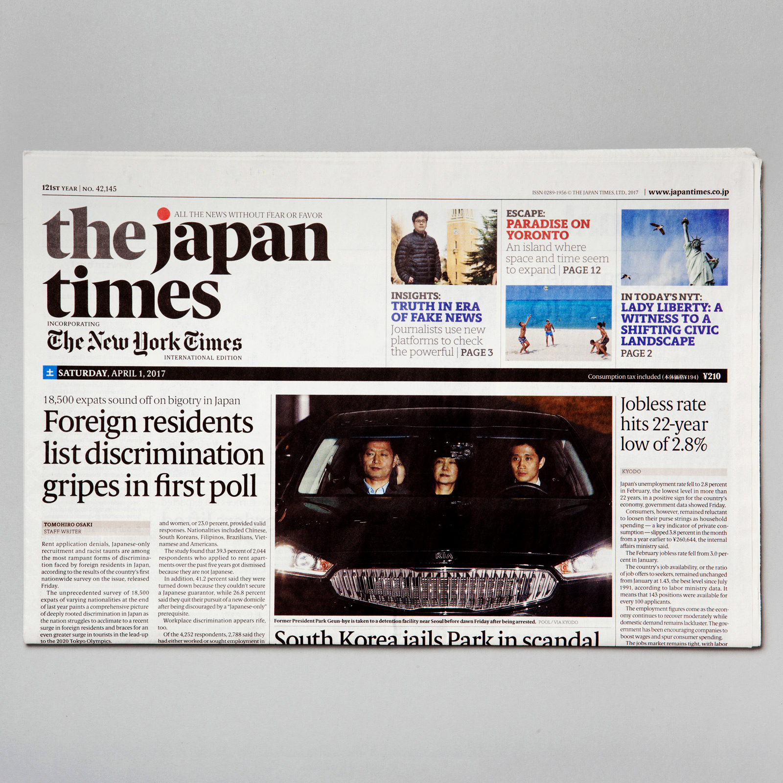 In 2017, on the occasion of the 120th anniversary, The Japan Times launched their first major redesign in 30 years, introducing a new logo in all-lowercase letters, and a new set of typefaces. Art director Andrew Lee commented on the redesign in two articles. From “New-look print issue rings in the next era”:
