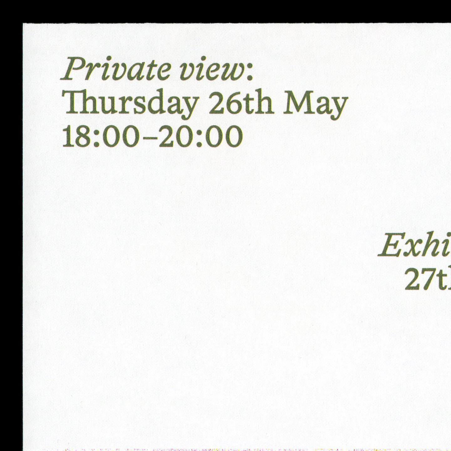 Nurtured Furrows, Arusha Gallery Contributed by HAL Typefaces on Aug 4th, 2022. Artwork published in circa May 2022. Callin Mackintosh. License: All Rights Reserved. Folded invite for Connie Harrison’s solo show Nurtured Furrows at Arusha Gallery, Edinburgh. Designed by Callin Mackintosh, set in HAL Timezone by HAL Typefaces (Hanzer Liccini). Callin Mackintosh. License: All Rights Reserved. Callin Mackintosh. License: All Rights Reserved. Callin Mackintosh. License: All Rights Reserved. Callin Mackintosh. License: All Rights Reserved. Typefaces More about HAL TimezoneGet HAL Timezone Formats Posters/Flyers (5837) Ephemera (1232) Topics Art (4754) Designers/Agencies Callin Mackintosh (4) Tagged withinvitations (237)art galleries (147)paintings (196)time (11)italics (727)green (780)one typeface family (1698)reversed type on an image (1246)folded (236)staircase text blocks (24)Connie Harrisoncolored body text (943) Artwork location United Kingdom (3318) Scotland (48) Edinburgh (27) In SetsHAL Typefaces (HAL Typefaces) (91)Modern Serifs (Serena Ho) (15)TYPE (Dunya Ahmad) (361)loose bolt (Laurin Schuh) (88)Formats (Lucas Bevilaqua) (164)Minimal/Clean (Lucas Bevilaqua) (396)Art World (Lucas Bevilaqua) (649)Misc (Lucas Bevilaqua) (15) Post a comment Name Email – will not be published Website Your response Submit Comment More HAL Timezone in use Otto Dix – Adolf Dietrich. Two Painters on Lake Constancec. 2025Studio Marlon IlgContributed by HAL Typefaces Tender website2021Paul MylecharaneContributed by HAL Typefaces Chains underwater freak me out. zine2025Savio BanholzerContributed by Savio Banholzer Sponsor More in Art Durch die Wüste des Realen2019Sebastian RichterContributed by Sebastian Richter This is Temporary2016Tino NymanContributed by 205TF The Game of Knives2022Lukas EngelhardtJustus GelbergContributed by Yevgeniy Anfalov Coucou magazine2013Büro FaxContributed by Seán Kennedy More in Ephemera Caroline, Drift Train2018Subin ChoiContributed by Blaze Type 88.7 WBFO bumper stickerc. 1993unknownContributed by Ryan Brotherston Adela2020The Colour ClubContributed by WELTKERN® Typefaces Takao Rock2018Onion DesignContributed by Gareth Hague Staff Pick More Fonts In Use Leveski & Gordon Go to the Moon2023The Hot BrainContributed by Eric Gordon Staff Pick Adoniran Barbosa – Onze album art2020Bloco GráficoContributed by Bloco Gráfico Staff Pick Wanted: The Search for the Modernist Murals of E. Mervyn Taylor2018Anna BrownContributed by Stephen Coles Staff Pick School of Visual Arts MFA Design2013The Original Champions of DesignContributed by Webtype Staff Pick