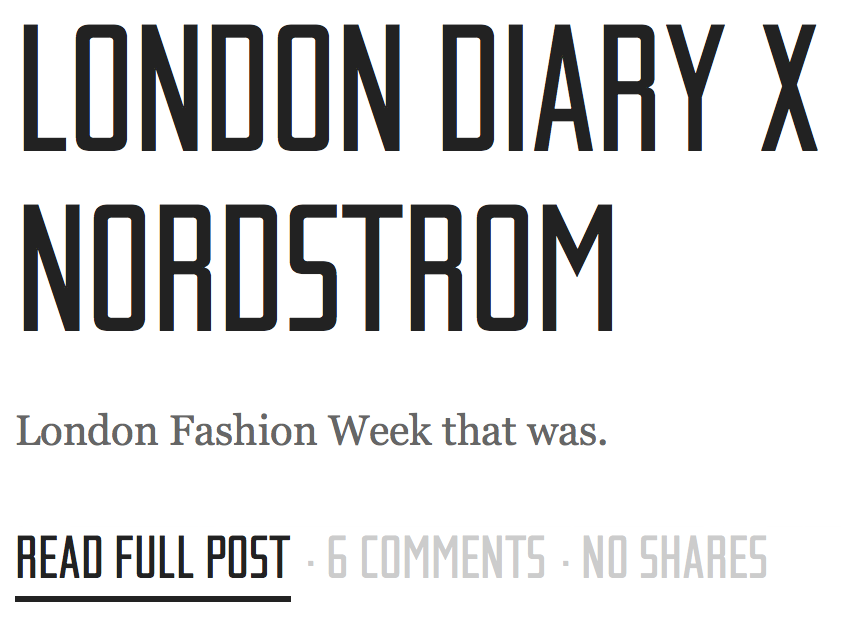 Zanita Morgan’s Fashion Blog Contributed by Ralf H. on Sep 22nd, 2013. Artwork published in 2013. Source: zanita.com.au License: All Rights Reserved. FELLT describes itself as “high quality fashion journalism, uniting the 7 most influential bloggers in Australia”. The blog by contributor Zanita Morgan uses Iwan Reschniev, a narrow constructivist sans-serif from Fonts.info. License: All Rights Reserved. License: All Rights Reserved. License: All Rights Reserved. License: All Rights Reserved. Typefaces More about Iwan ReschnievGet Iwan ReschnievMore about GeorgiaGet Georgia Formats Web (5714) Topics Fashion/Apparel (1574) Tagged withblogs (121)fashion (463)webfonts (449) Artwork location Australia (668) Post a comment Name Email – will not be published Website Your response Submit Comment More Georgia in use Sister Roots visual identity2020Leonardo de la RochaContributed by Leonardo De La Rocha Solar Labsc. 2023Kenshō AgencyNicholas Naughton-RumboSimon VandammeContributed by Kenshō Agency Cal&Co2024Digital ButterContributed by Tammy Adendorff Sponsor More in Fashion/Apparel Filayyyy “Skip thru dat lane” website2022HolographikContributed by Alex Slobzheninov Boutique Georgie, St. GallenunknownPhoto(s) by Florian Hardwig on Flickr. Fabiola tattoo2009Pim HensContributed by Underware MAISON Ë magazine2025A Passion ThingContributed by R-Typography Staff Pick More in Web Hoptek visual identity2022That ThingContributed by Nguyen Gobber Martín La Roche Contreras website2017Astrid SemeContributed by Astrid Seme Staff Pick Poster Journal poster series2021Poster JournalContributed by Jamie Otelsberg (OH no Type Co.) Staff Pick The Shelf2019The Shelf CompanyContributed by Timothée Goguely More Fonts In Use Muma2020CRSLContributed by Bureau Brut Staff Pick Laurie Rosenwald Paintings websitec. 2016Laurie RosenwaldContributed by Stephen Coles Staff Pick The Chicago Neighborhoods2012Steve ShanabruchContributed by Stephen Coles Staff Pick Das Matterhorn ist schön / Alpabzug poster2013Erich BrechbühlContributed by Florian Hardwig Staff Pick