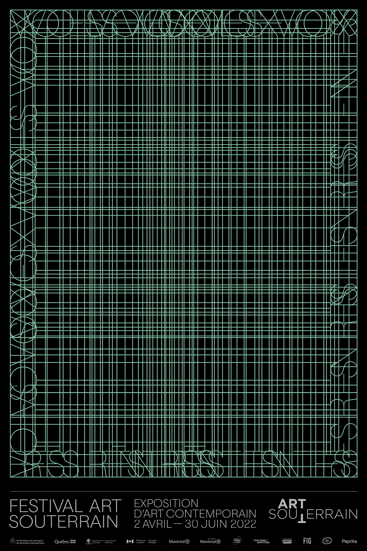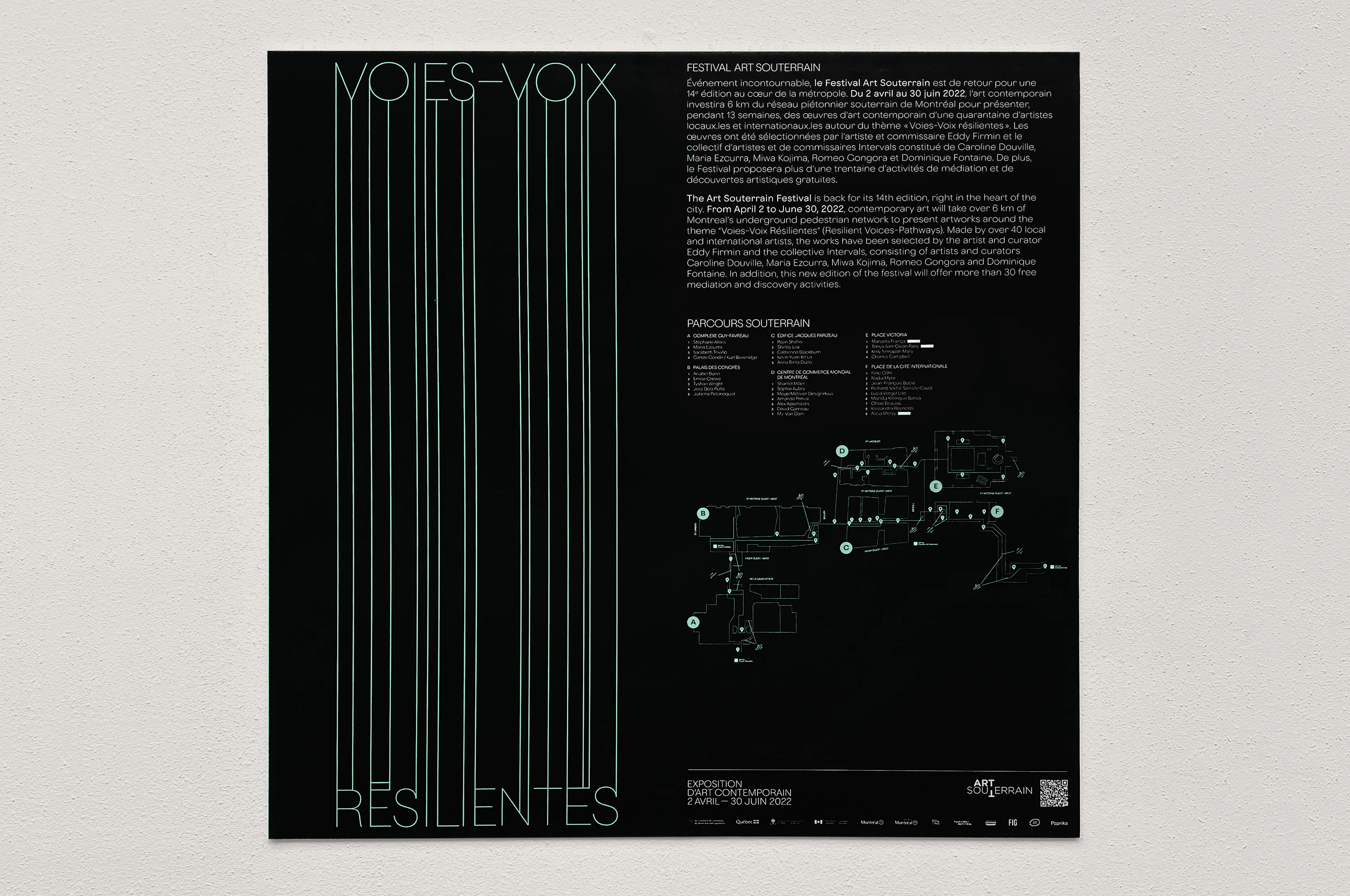 The identity for the 2022 edition, Voies-Voix Résilientes (Resilient Voices-Pathways), was designed by Paprika using Oldschool Grotesk Air for animations and posters, as well as other weights of the family for info texts and signage.
