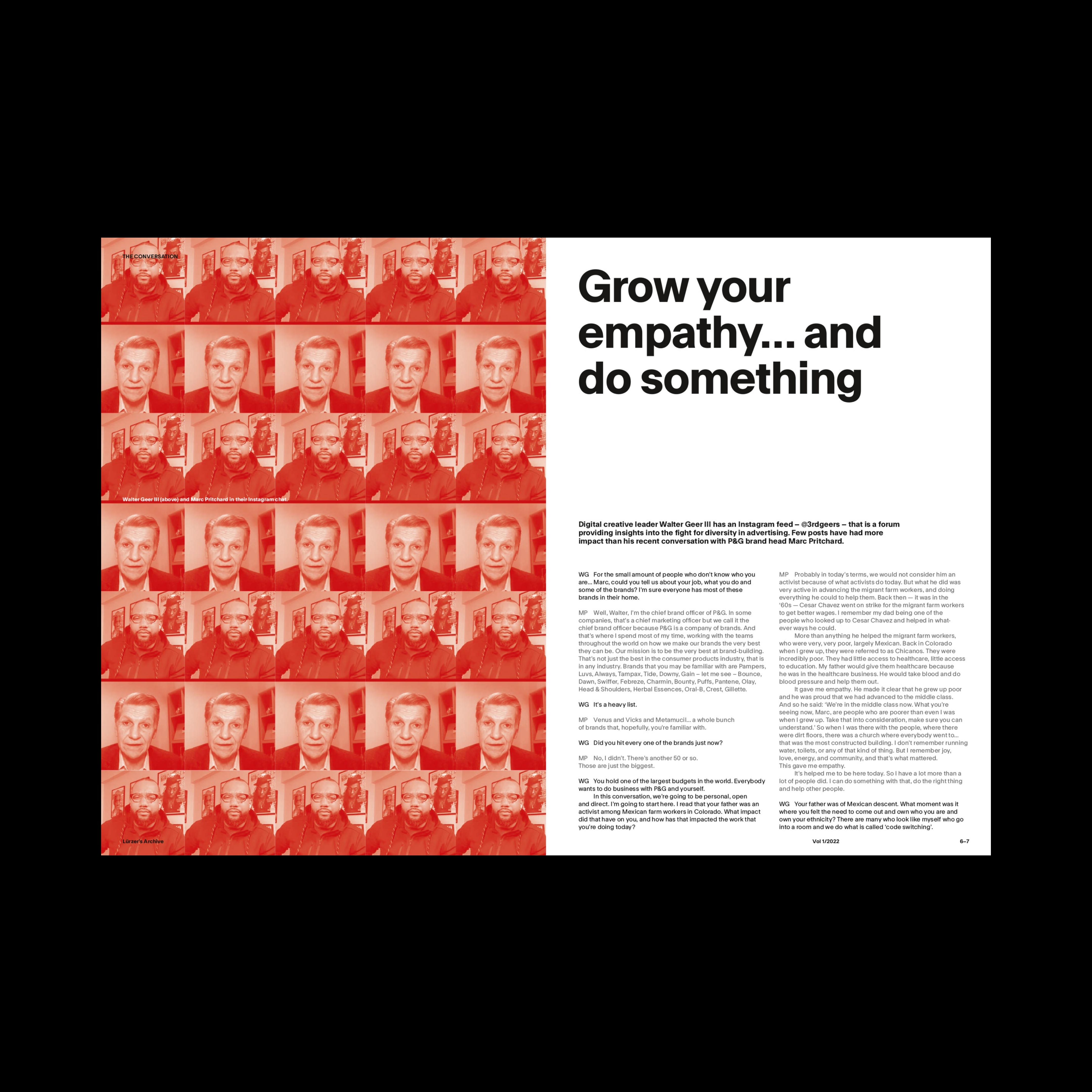 From the cover logo through to The Conversation between Walter Geer and Marc Pritchard, and later to art and technology side-by-side in our Reviews, we have succumbed to… evolution.