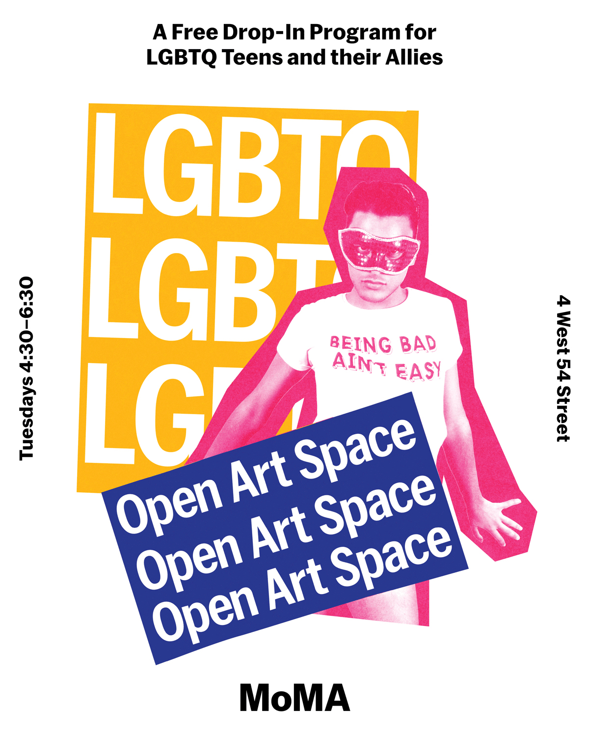 Open Art Space is a series of programs and workshops organized by the MoMA Museum of Modern Art for LGBTQ+ high school students who are interested in thinking about and making art in a creative and welcoming environment.