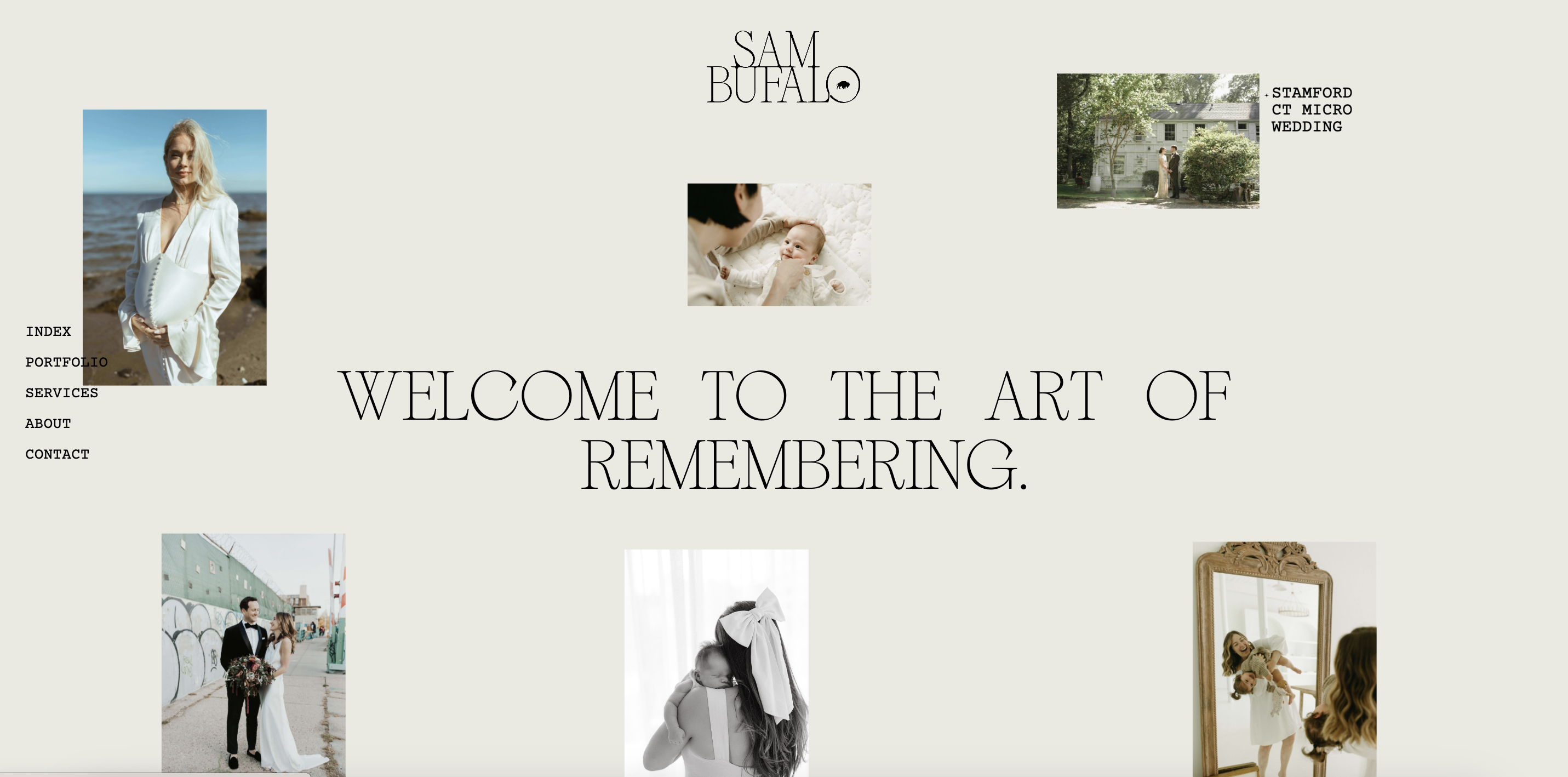 Sam Bufalo is a documentary family and wedding photographer based in Stamford, Connecticut. We designed the brand identity and website for Sam that evokes emotions inspired by moments reminding you of old footage, handheld cameras from the 1970s, messy but real moments.