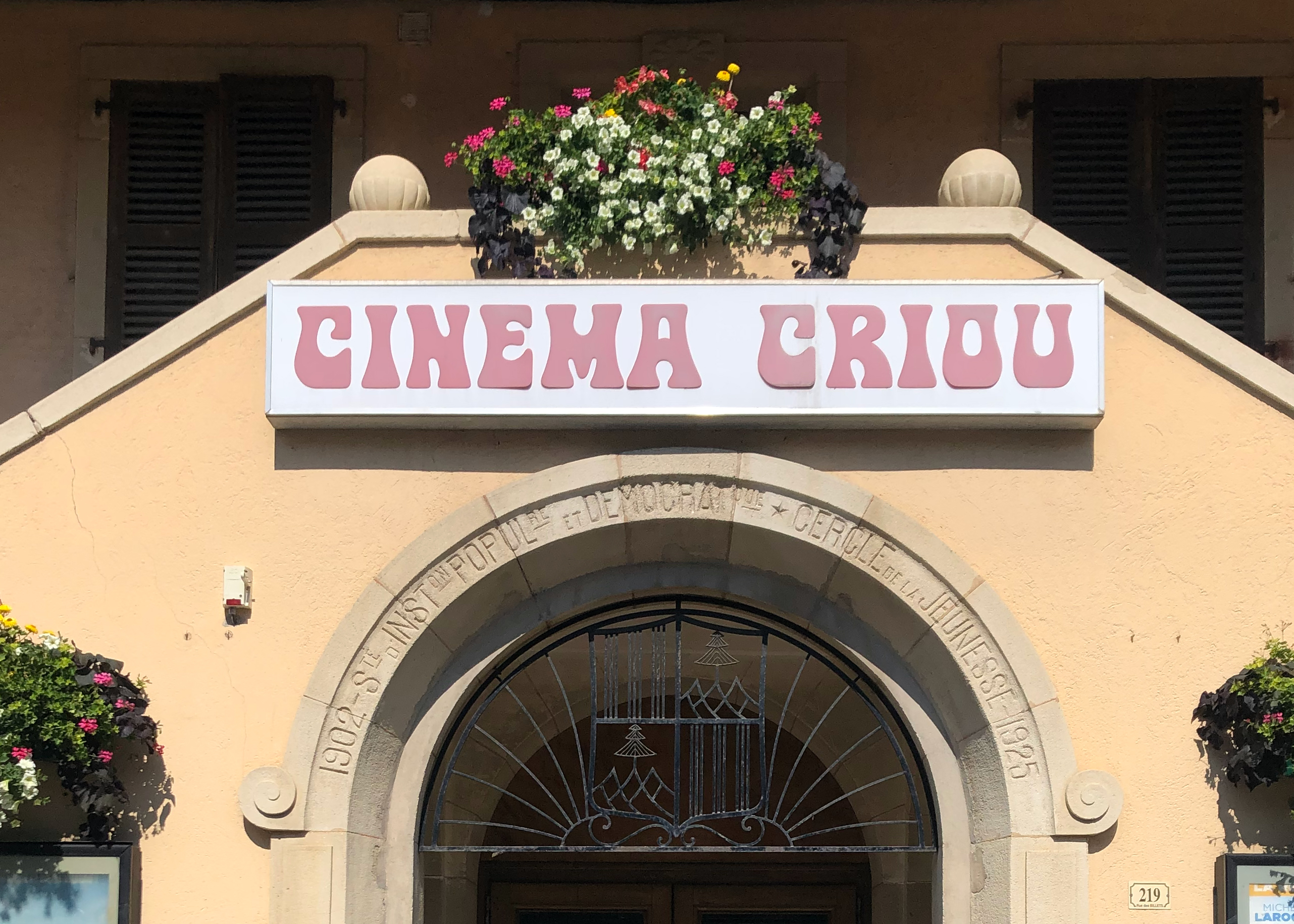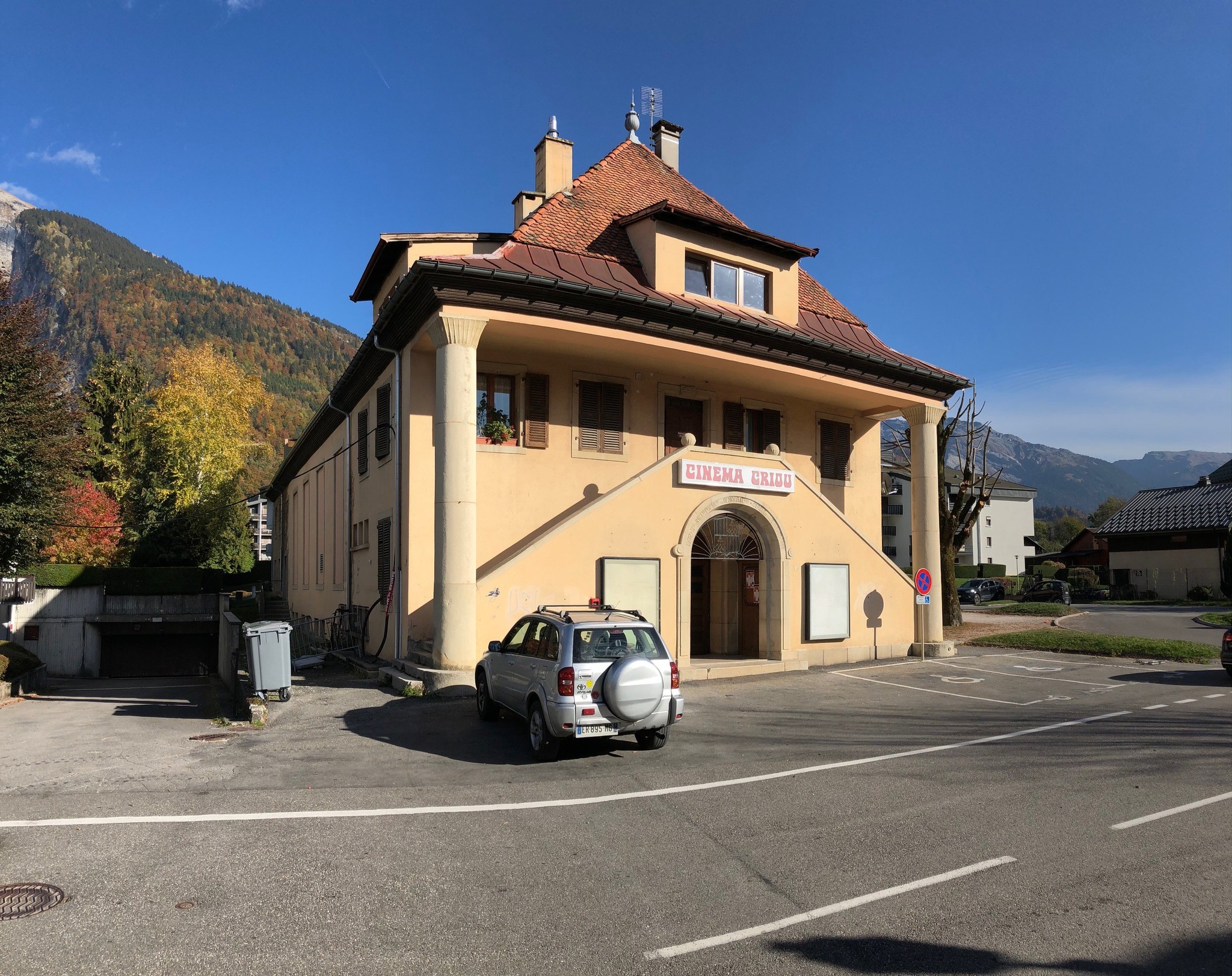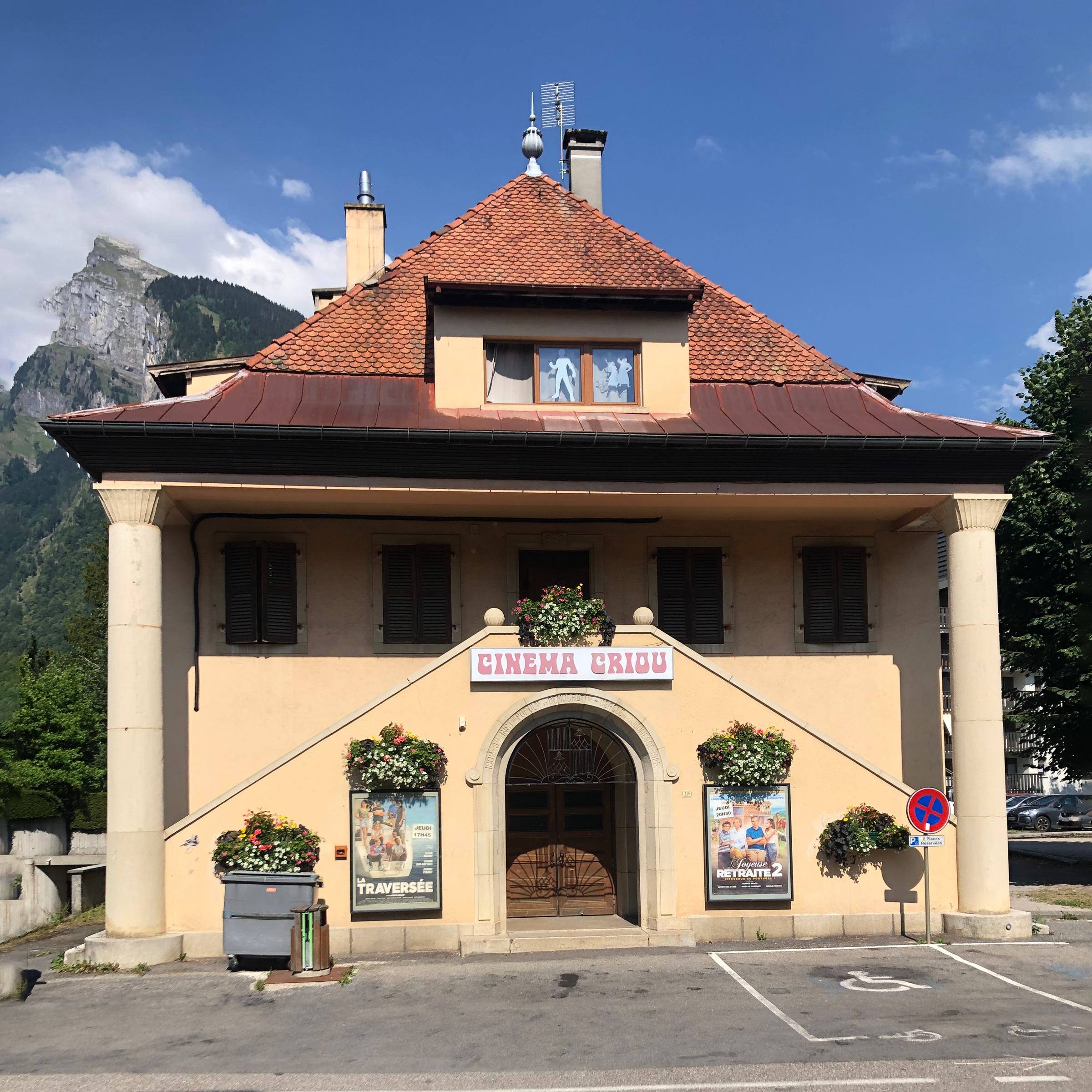 Cinéma Le Criou (1 screen) is the only cinema in Samoëns, a sleepy French provincial town in France’s Haute Savoie. The town is visited by hikers and paragliders in summer, and skiers in winter. The cinema is named after the Aiguille de Criou (the mountain seen behind the cinema in the images) and, judging by the inscription above the entrance, it used to be the home of a democratic people’s institution and a “youth circle” between 1902 and 1925.