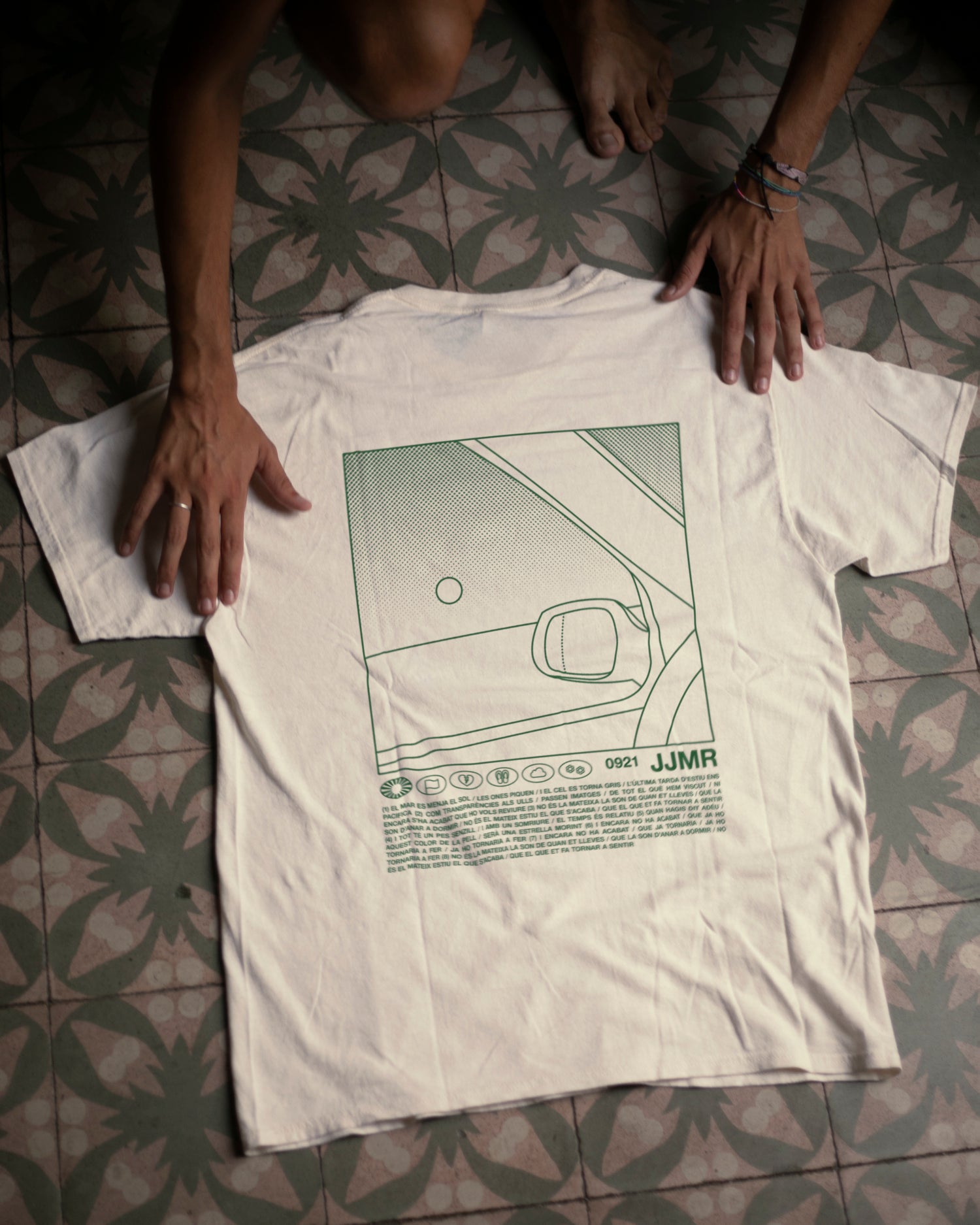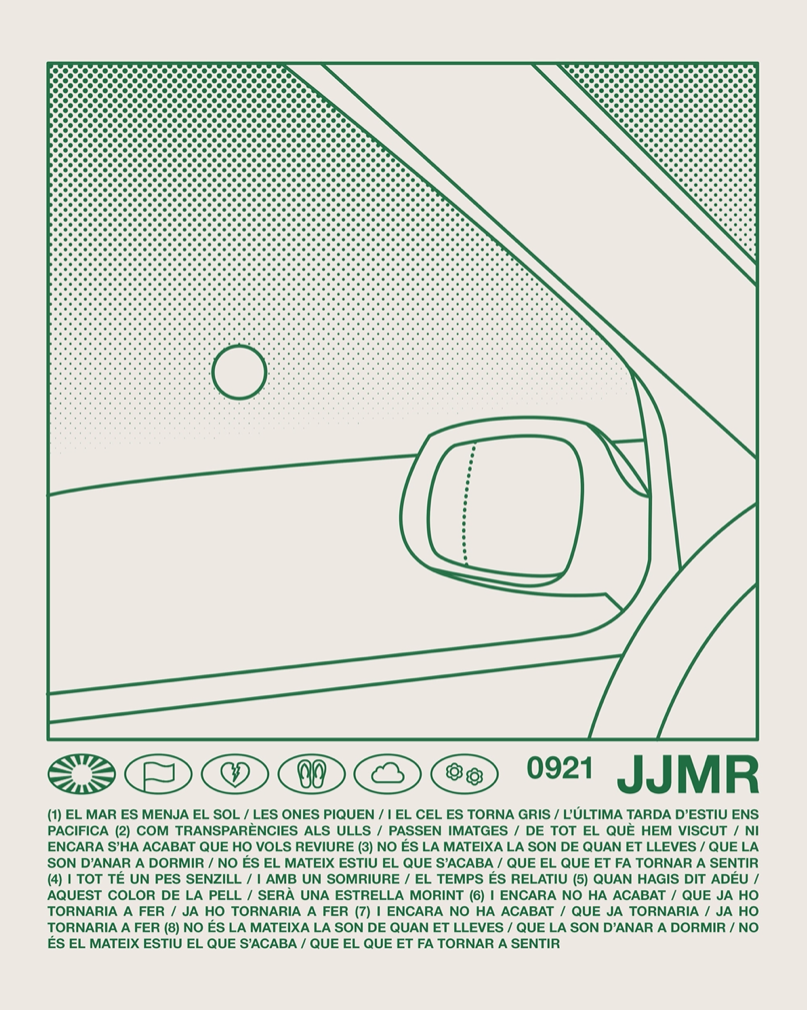 “0921 JJMR” T-shirt Contributed by Ignasi Àvila Padró on Sep 3rd, 2022. Artwork published in September 2021. Elisabet Mateu Matesanz, Ignasi Àvila Padró. License: All Rights Reserved. The “0921 JJMR” T-shirts for the band Jo Jet i Maria Ribot were designed by Elisabet Mateu Matesanz and Ignasi Àvila Padró, and handprinted by Souari Taller in Barcelona. The design shows the complete lyrics of the “la cançó de les postes de sol i les coses que s’acaben” in all-caps Neue Helvetica. This font is also used for the music video title and credits, using a similar cream color palette. Elisabet Mateu Matesanz, Ignasi Àvila Padró. License: All Rights Reserved. Elisabet Mateu Matesanz, Ignasi Àvila Padró. License: All Rights Reserved. Typefaces More about Neue HelveticaGet Neue Helvetica Formats Object/Product (1142) Topics Fashion/Apparel (1549) Music (6366) Designers/Agencies Elisabet Mateu Matesanz (4) Ignasi Àvila Padró (36) Tagged withmerchandise (240)Jo Jet i Maria Ribot (3)T-shirts (631)Catalan / Valencian (language) (158)lyrics (177)all caps (7617)one typeface (1753)green (778) Artwork location Spain (1053) Barcelona (433) In SetsTYPE (Dunya Ahmad) (361)Fashion (Dunya Ahmad) (5)RADIOGIAPPANESE (Leonardo de la Fuente) (2878)PHANTA (Leonardo de la Fuente) (285) 1 Comment on ““0921 JJMR” T-shirt” Joe says: Nov 16th, 2022 7:52 pm Hi both, I hope you’re well & healthy! I love this design, & would like to speak with you regarding a possible commission. Feel free to reach out to me directly. Cheers, Post a comment Name Email – will not be published Website Your response Submit Comment More Neue Helvetica in use Disordine Lusso Recesso Bellezza Tempo2020Cristiano ColaContributed by Cristiano Cola Lala &ce and Low Jack – Baiser Mortel album artc. 2022Virgile FloresContributed by Virgile Flores Andonis Interiors2020Cursor Design StudioContributed by Cursor Design Studio Sponsor More in Fashion/Apparel Matek Clothingc. 2018ABC ETCContributed by ABC-ETC.COM LNDRc. 2018Studio ThomasContributed by Studio Thomas Letter Key Rings by Métier2024MetierContributed by Gareth Hague MACHETE2024Cori CorinneContributed by Cori Corinne More in Object/Product “Greetings Earthlings!” mugc. 2021Carmen AmadorBailey HarringtonContributed by D Jones Hop Rodc. 1969Contributed by David Smith Bella triste, No. 652023Elfi Handina MuranduVivien SorrentinoContributed by Margot Lévêque Typefaces Staff Pick Philips Videopac G7200 Video Game Console1982Contributed by Stephen Coles More Fonts In Use La Bouquet2023Gina ShinContributed by Margot Lévêque Typefaces Staff Pick “Purple Haze All In My Eyes”2018Paul TuortoContributed by Florian Hardwig Staff Pick The Beams brand identityc. 2023OnlyContributed by Only Staff Pick “A Queen In Every Girl” poster for SubTone2010Planet JarrContributed by Jarr Geerligs Staff Pick