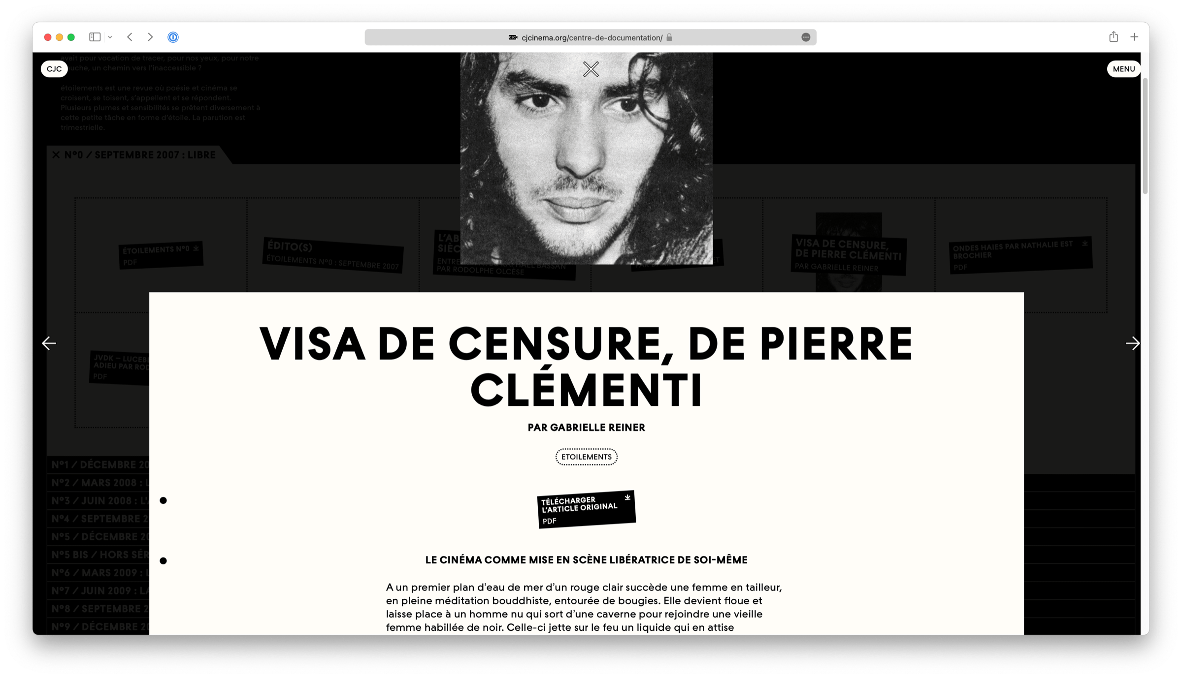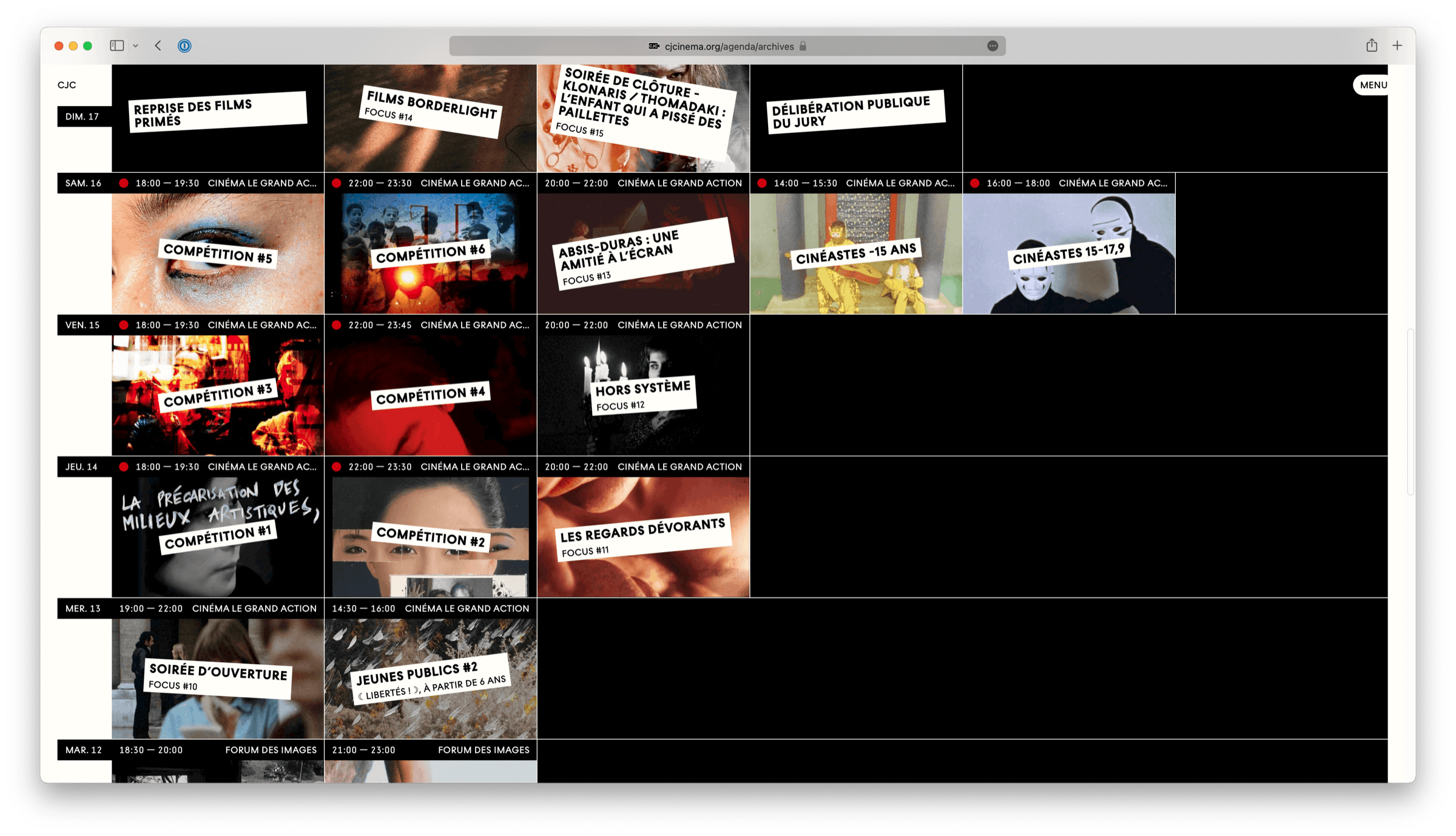 The design of their new website is bold and reminiscent of the handmade zines that the CJC made in the 1970s around experimental cinema. All typography uses TO Record by Tancrède Ottiger, a geometrical typeface working well for both text and bold all caps titles, affirming the project’s identity.