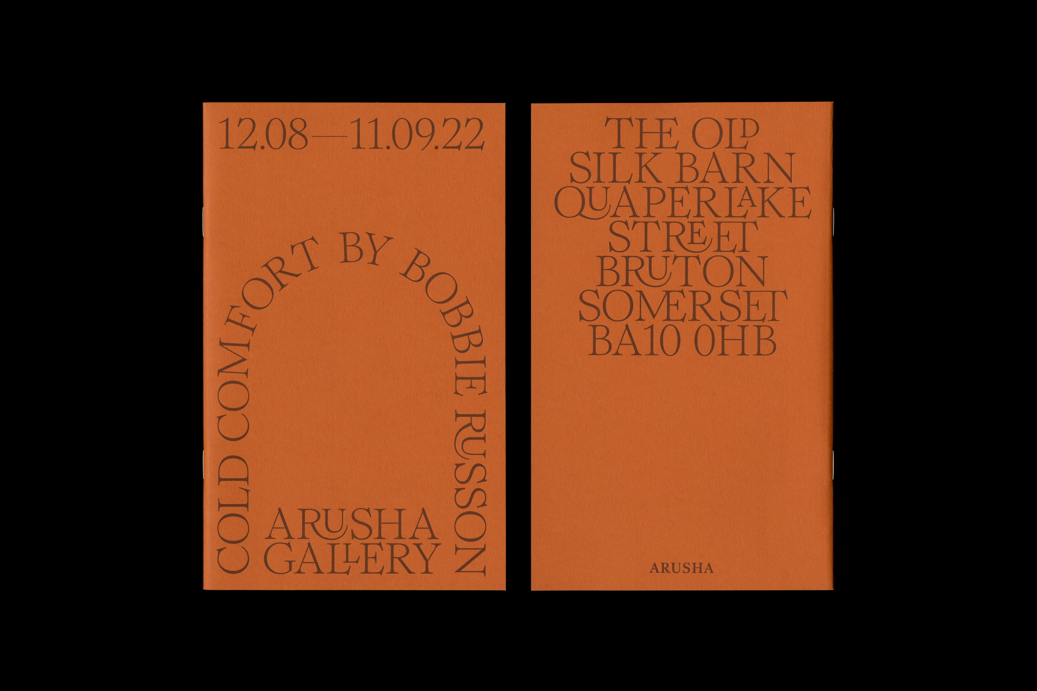 Cold Comfort, Arusha Gallery Contributed by Margot Lévêque Typefaces on Oct 8th, 2022. Artwork published in 2022. License: All Rights Reserved. Exhibition booklet designed by Callin Mackintosh for the Cold Comfort exhibition by Bobbie Russon at Arusha Gallery. The body text and the cover are set in Romie by Margot Lévêque. License: All Rights Reserved. License: All Rights Reserved. License: All Rights Reserved. License: All Rights Reserved. License: All Rights Reserved. Typefaces More about RomieGet Romie Formats Booklets/Pamphlets (2359) Topics Event (3144) Art (4575) Designers/Agencies Callin Mackintosh (4) Tagged withart exhibitions (837)type on a curve (1095)booklets (548)exhibition catalogs (841)book covers (5759)book interiors (3569)colored body text (893)tight linespacing (344)justified text (1025)center-aligned text (1859)numerals (1058)saddle stitch binding (55)Bobbie Russon (1)discretionary ligatures (355)nested glyphs (170)all caps (7408)Arusha Gallery (1) Artwork location United Kingdom (3237) London (1791) In SetsType Designs by Women (Fonts In Use Staff) (1828)editorial (miguel anønimo) (137)inspiration (Tural Alisoy) (13)editorialx (Leonardo de la Fuente) (443)Book Design (Lucas Bevilaqua) (1370)Art World (Lucas Bevilaqua) (649)1 Font (Lucas Bevilaqua) (285)Type Only (Lucas Bevilaqua) (176)Art Catalogues (Lucas Bevilaqua) (193)antique mood (Michele Belvedere) (26)Boutique (Lina Bo) (16) Post a comment Name Email – will not be published Website Your response Submit Comment More Romie in use Pub Kitchen by Tom Kerridge2023Bloomsbury PublishingGreg HeinimannContributed by Margot Lévêque Typefaces Olivia Palermo X Scalpers2023Wozere StudioContributed by Margot Lévêque Typefaces Staff Pick A Soul That Roams Another World2023Tina De SouterContributed by Margot Lévêque Typefaces Sponsor More in Event New Frontiers exhibition poster and flyers2023Lynn RubergPaul DaubenspeckContributed by Michael Clasen Macklemore Gemini album and tour2017Sam BledsoeContributed by Gareth Hague The Wizard of Oz theater posters2024Stas TuchinskyContributed by Matan Iontef Staff Pick 5ème Rallye de Printemps1974Isabelle RochefortY. LevasseurPhoto(s) by Étienne Pouvreau on Flickr. More in Booklets/Pamphlets Organize sustainably – now! illustrated guide for organizersc. 2020UngestaltContributed by ungestalt Valiz folder voorjaar/zomer 20252025Xiaoyuan GaoContributed by Xiaoyuan Gao Ode to Typography / Oda a la tipografía chapbook2021Zach HivelyCasa UrracaContributed by Kontour Staff Pick Silver Silence Golden Speech2014Philipp HerrmannContributed by Out of the Dark More Fonts In Use Voulez-vous CHA-CHA?: French Cha-cha 1960–19642019Virginie MorgandContributed by Pauline Nuñez Staff Pick Yearbook of Type 32018Slanted PublishersJulia KahlLars HarmsenContributed by Revolver Type Foundry Staff Pick Nightmares on Wax – Shout Out! To Freedom… album art2021Félicité LandrivonContributed by Eliott Grunewald Staff Pick Bloodland by Alan Glynn2012Contributed by Stephen Coles Staff Pick