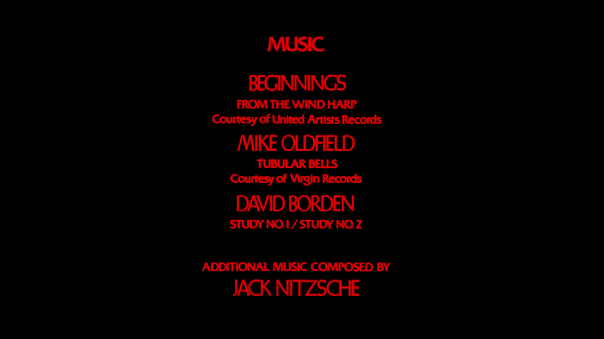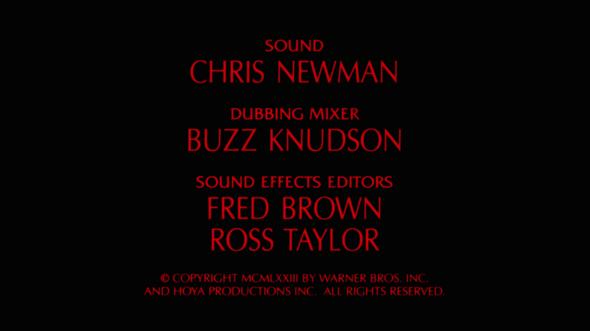 The Exorcist’s titles are fairly minimal, composed with static red type on a black background, but there were still technical, artistic, political, and even legal considerations behind the minute typographic decisions. An interview with Perri at The Art of the Title goes into many details about the production considerations.