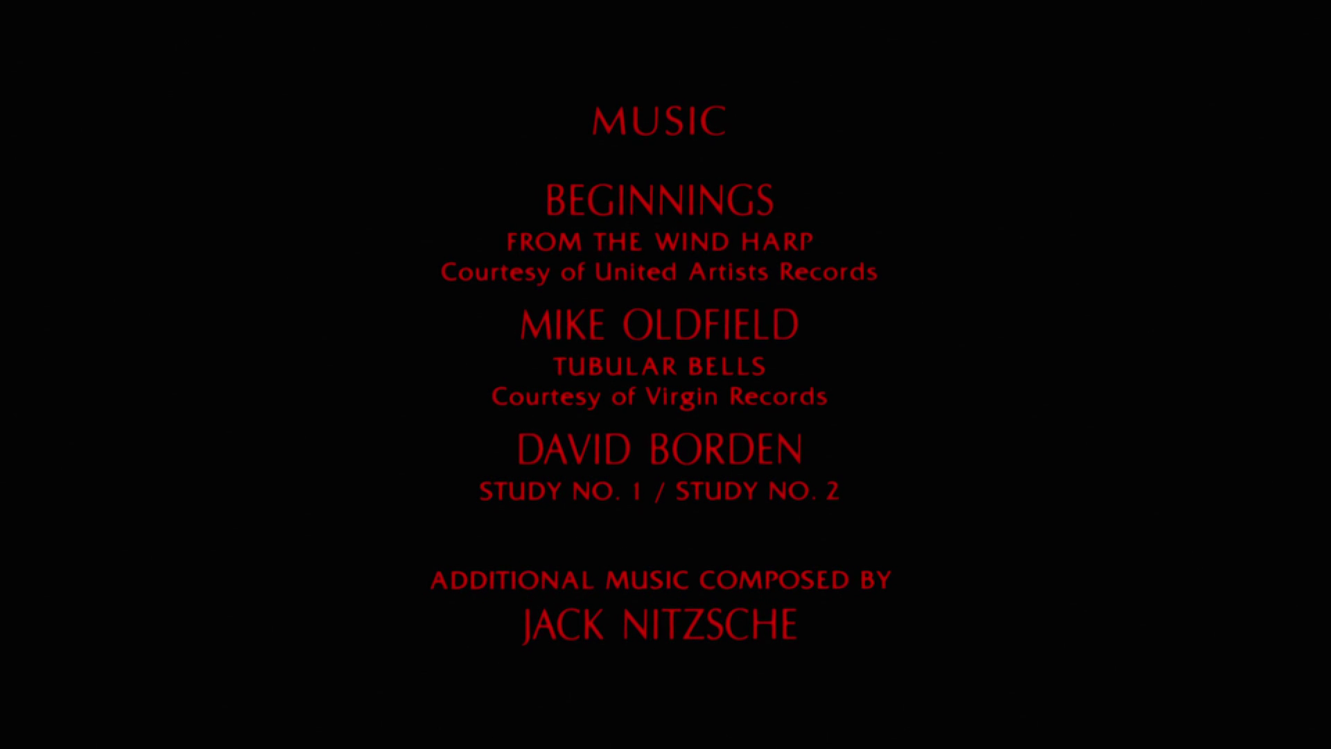 An extended “director’s cut” of The Exorcist was released in 2000 with a handful of new scenes not included in the original theatrical release. That newer version of the film retains the use of Weiss Initials for the introductory titling as well as the intertitles, but for some reason the main title and other credits at the end of the film replace Weiss Initials with Optima. It’s a curious replacement, especially because the layouts seem to be nearly identical to corresponding credit screens in the original.