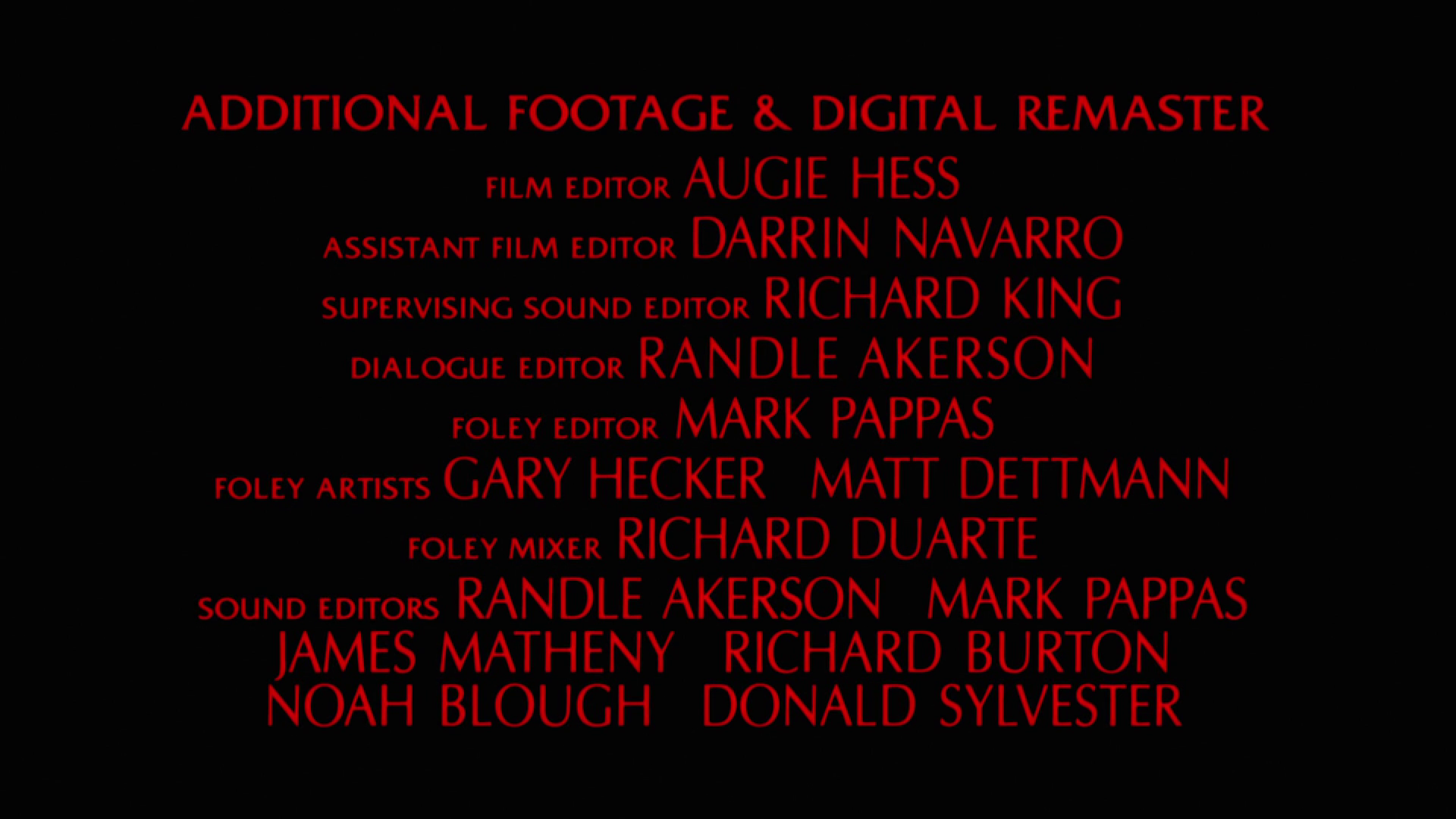 The replacement may have been related to practical availability though. Since the new edition of the film required additional screens of credits for digital remastering etc, those screens would have required new typesetting. But in 2000 there doesn’t seem to have been a properly authorized and/or high-quality version of Weiss Initials that was easily available for digital typesetting. So it’s possible that instead of having mis-matched type for the old and new credits, or having the new credits typeset with letterpress type, everything was reset for consistency using the digital fonts that were available. (One of the new credits of the extended cut for “additional visual effects” is given to Pacific Title, a producer of film title sequences that may have handled the new typesetting.)