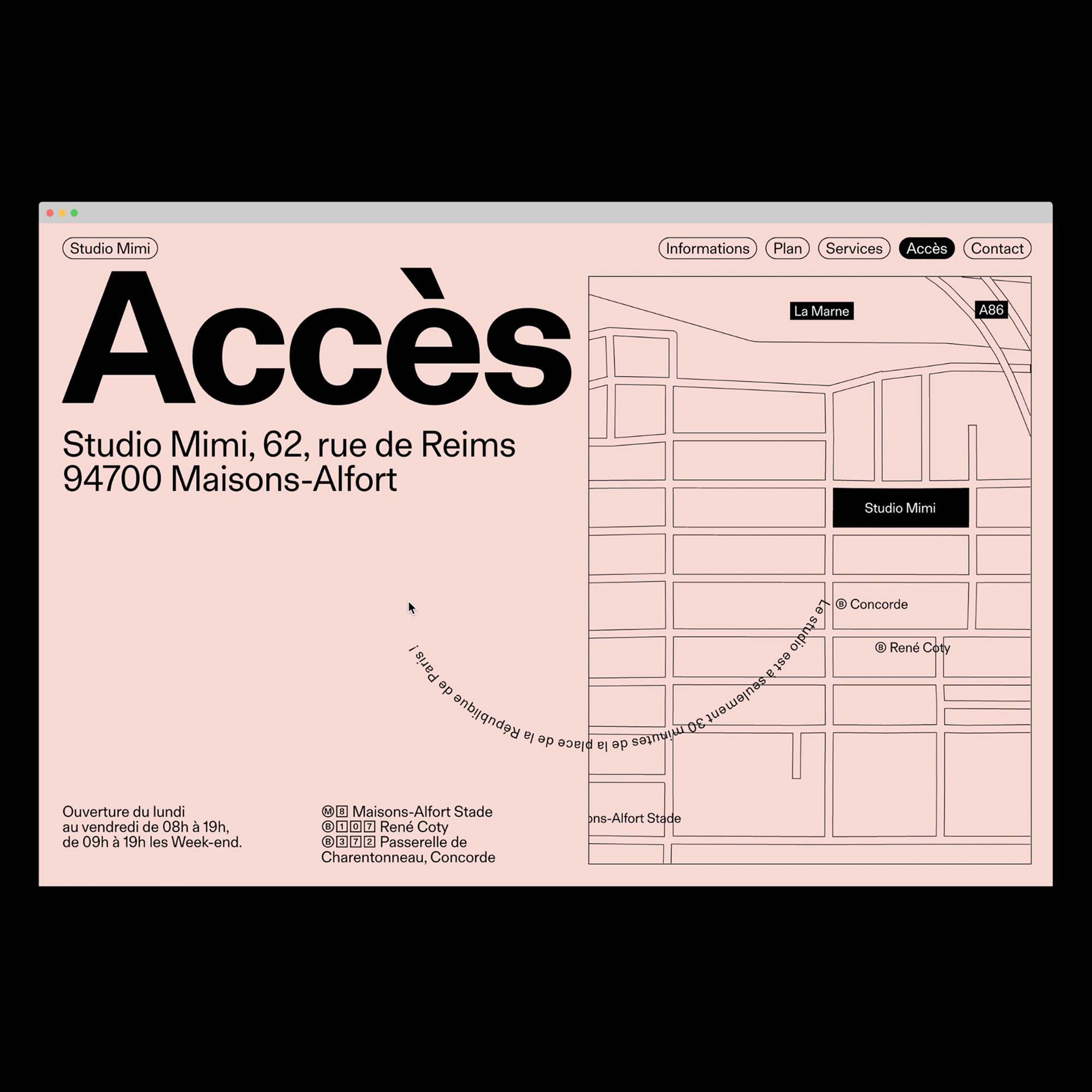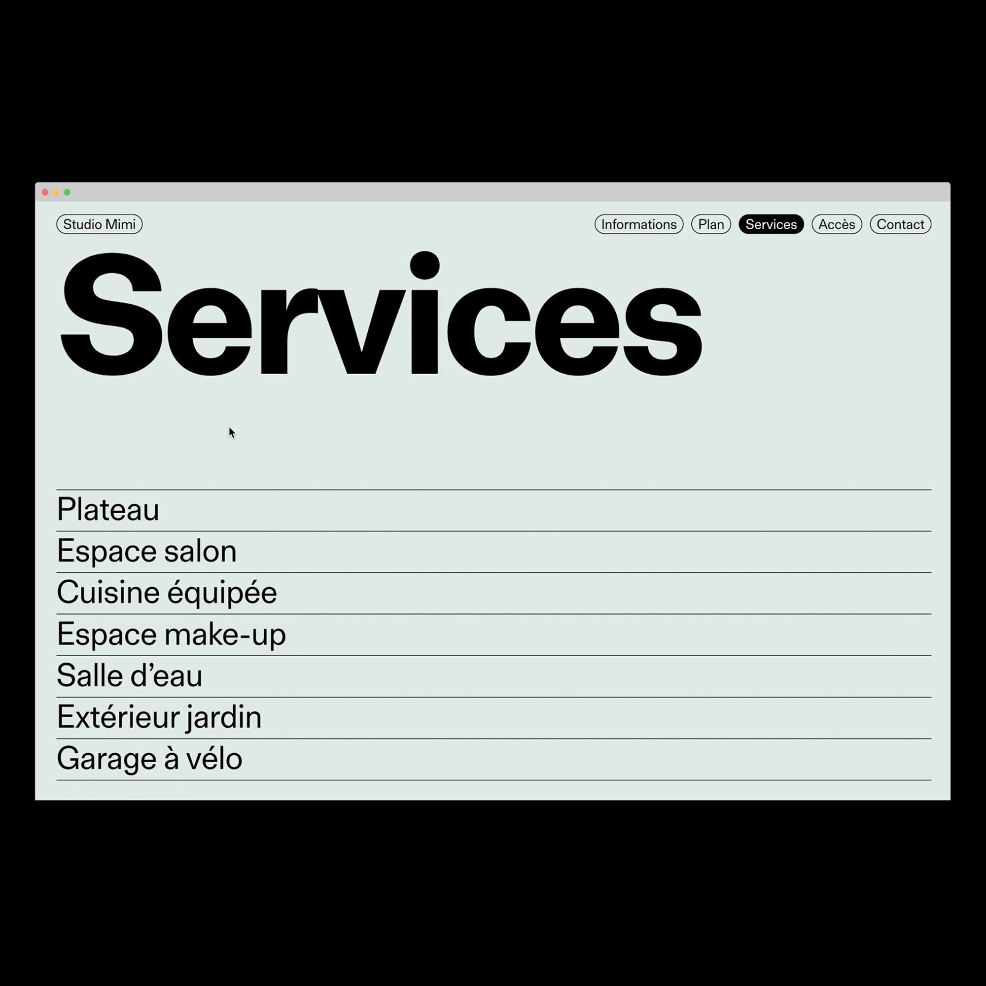 Studio Mimi identity and website Contributed by République Studio on Oct 31st, 2022. Artwork published in 2022. Source: www.republique.studio License: All Rights Reserved. Visual identity and website for Studio Mimi, a new photo studio based in Maisons-Alfort, France. The only typeface is FT Aktual, used in two weights. Their portfolio website is a one page scroll with little surprises on each menu and faded colors. Source: www.republique.studio License: All Rights Reserved. Source: www.republique.studio License: All Rights Reserved. Source: www.republique.studio License: All Rights Reserved. Source: www.republique.studio License: All Rights Reserved. Source: www.republique.studio License: All Rights Reserved. Typefaces More about FT AktualGet FT Aktual Formats Web (5619) Branding/Identity (8446) Topics Services (1556) Art (4686) Designers/Agencies République Studio (37) Tagged withphotographers (187)identities (2353)portfolios (772)websites (3562)single page websites (196)pastels (219)French (language) (2538)menus (UI) (564)maps (435)business cards (1536)logos (4993)piles of glyphs (156)type in a cartouche (214)lists (306)borders and rules (1126)type on a curve (1126)early uses (2239) Artwork location France (2841) Paris (1318) Maisons-Alfort In SetsIdentidad (Juan Ortega) (233)san serif (Maria Shimizu) (9)mirage (Ina) (15)webon (Leonardo de la Fuente) (10)business cards (Philippe Lepilleur) (38)logo (Philippe Lepilleur) (43) Post a comment Name Email – will not be published Website Your response Submit Comment More in Services The Bloom website2021Jess MaeContributed by Erik Sachse Hotel Europejski website2022Contributed by Jan Maack Olgam Life2024MadeByShapeContributed by MadeByShape Sponsor More in Web TAAALKS 2020 website2020Gabriela BakaMoby DiggContributed by Gabriela Baka Neutra VDL Studio & Residences2022Mouthwash StudioContributed by Ben Mingo Staff Pick Ellen Jonsson website2021Ellen JonssonGiulia BoggioContributed by Giulia Boggio Groundies logo and websitec. 2025unknownContributed by Johannes Pejas (Kimera) More Fonts In Use Benji band poster2011Dafi KühneContributed by Indra Kupferschmid Staff Pick The Color Purple by Alice Walker (Harcourt Brace Jovanovich first edition)1982Judith Kazdym LeedsContributed by Patrick Concannon Staff Pick Black Myth: Wukong video gamec. 2024Hanyi FontsContributed by Hanyi Fonts Staff Pick Three’s Company TV intro1977unknownContributed by Jayce Wheeled Staff Pick Treasures of Indigenous Peoples exhibition catalogue2020Shoji TsumuraContributed by Gareth Hague Staff Pick Footnotes, issue B2017Mathieu ChristeLa PoliceContributed by Mathieu Christe Staff Pick Anéat visual identity2019Atelier MüesliContributed by 205TF Staff Pick Balık Çocuk by Lucía Puenzo2012Geray GençerContributed by Florian Hardwig Staff Pick